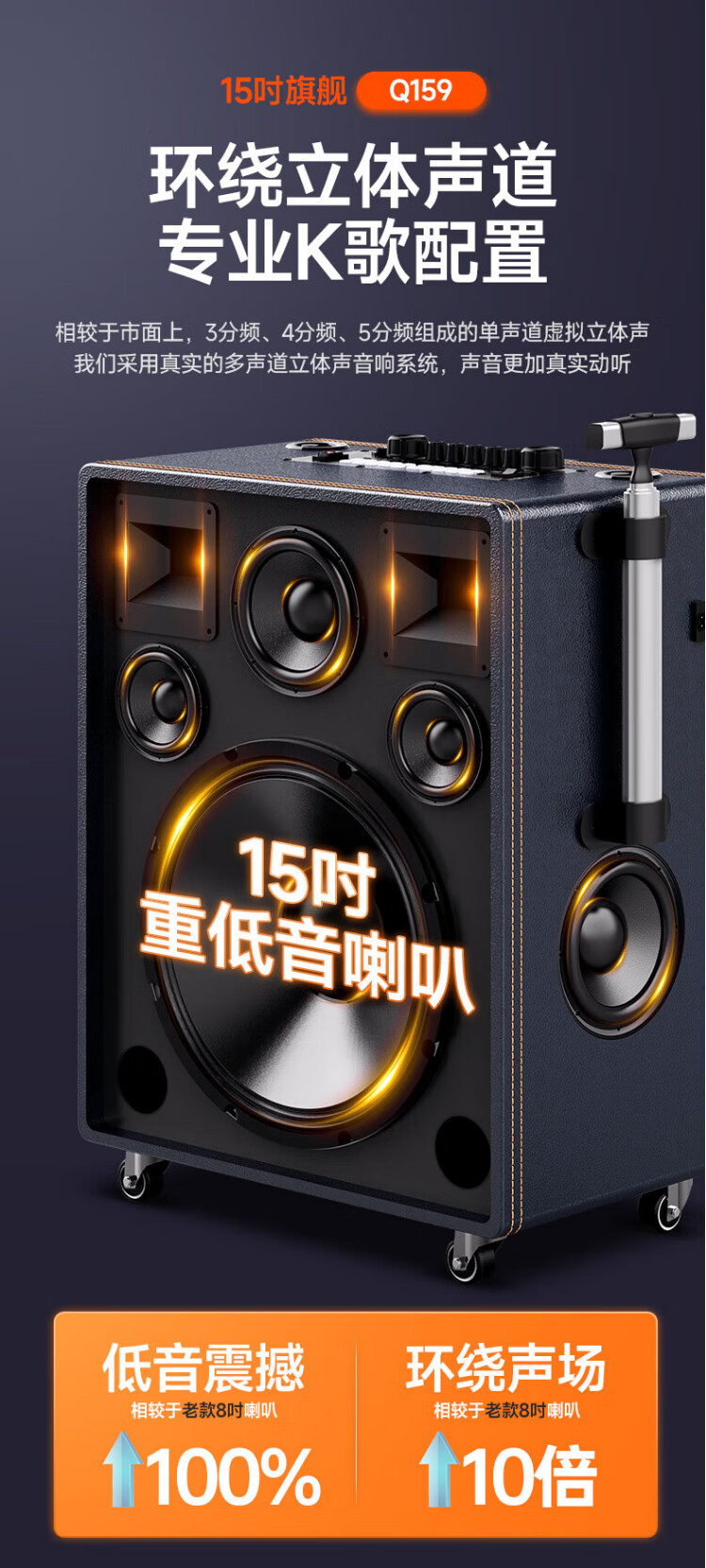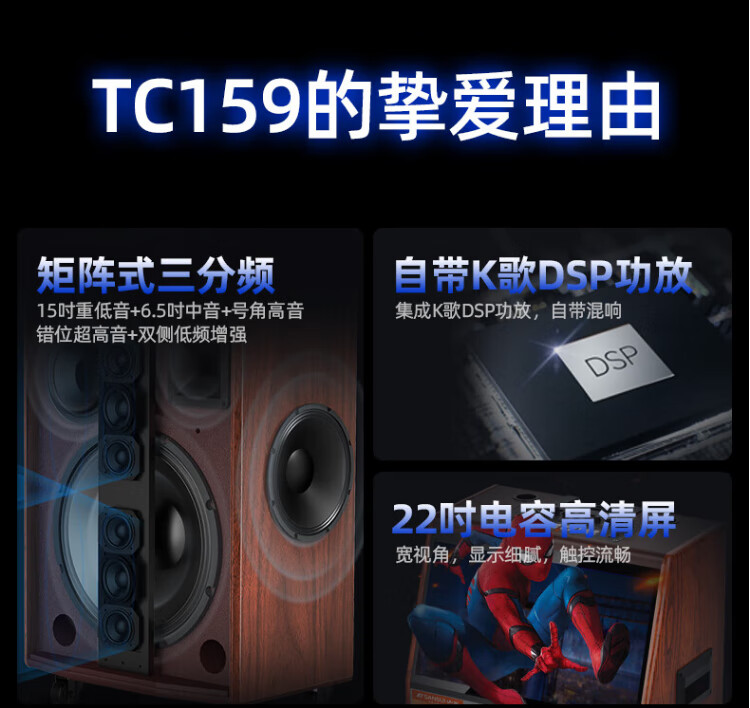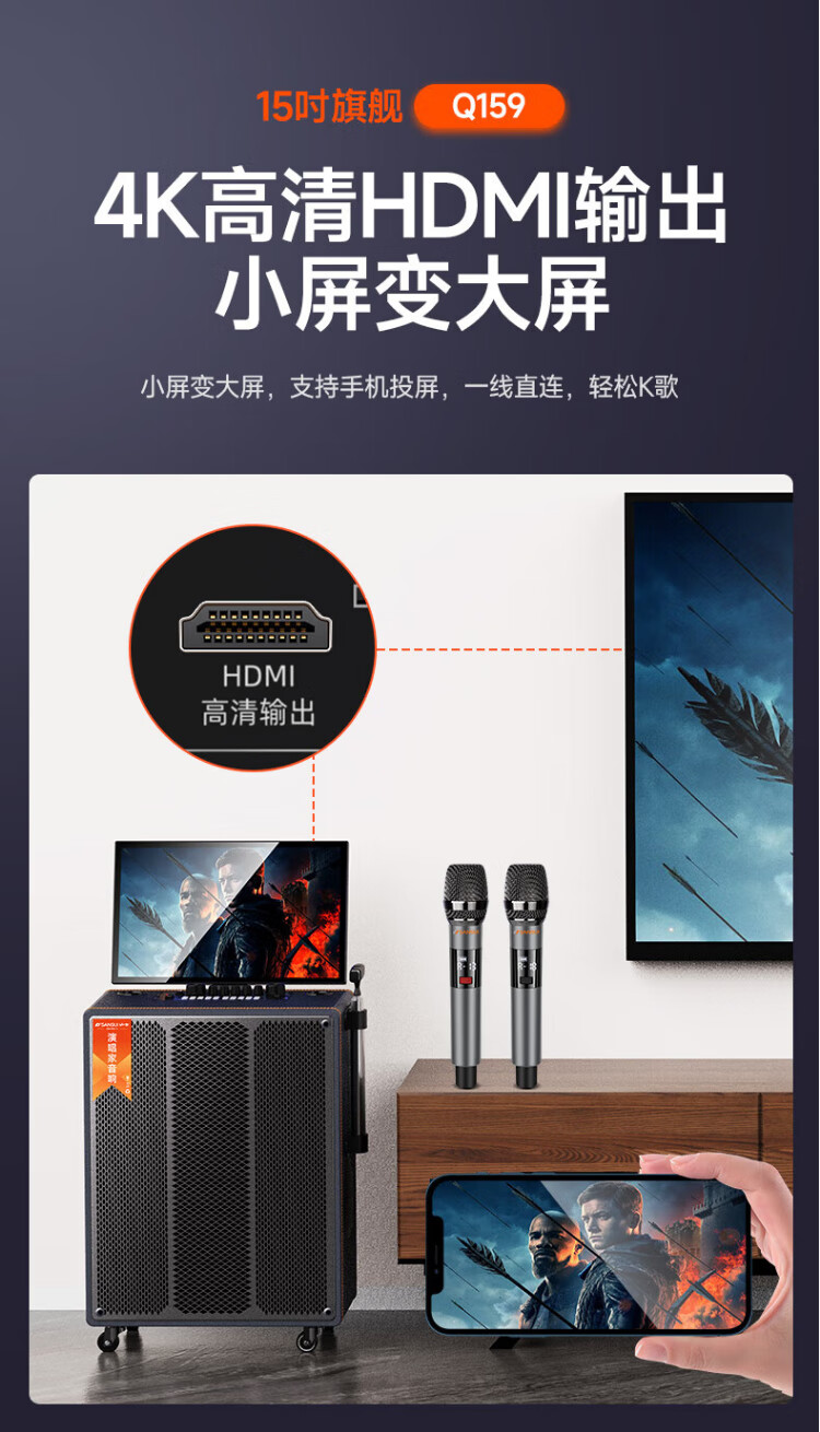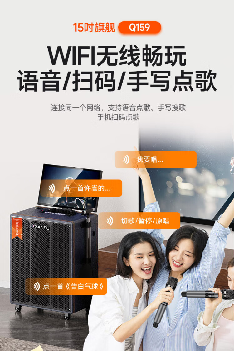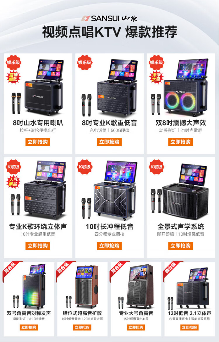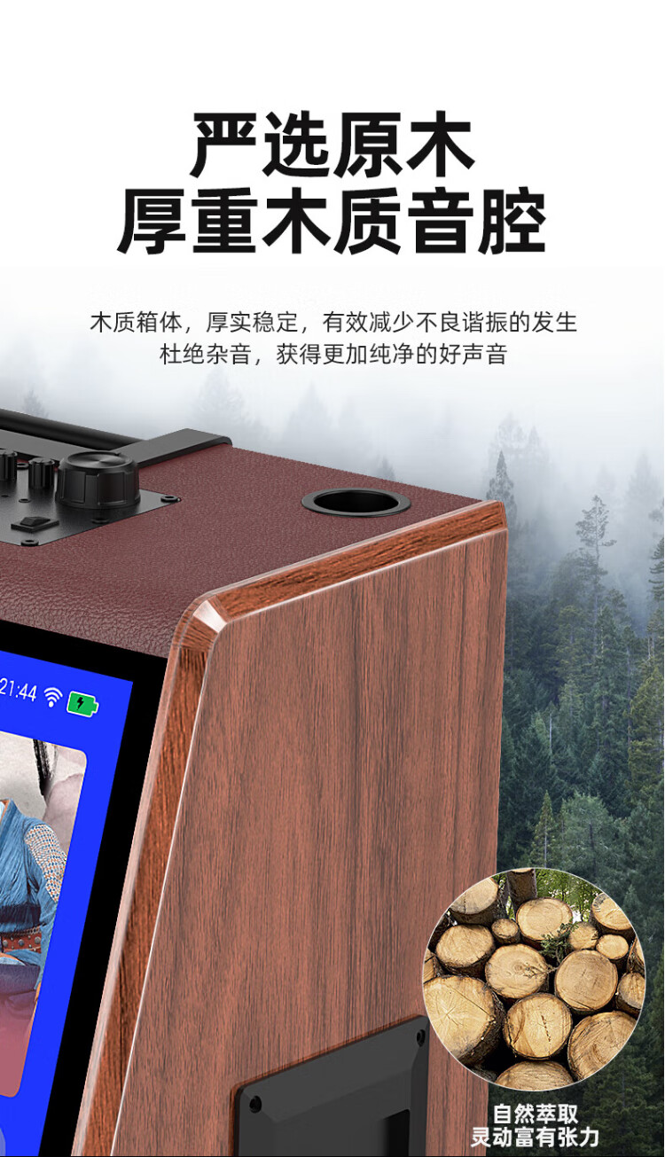 SANSUI square dance audio with display screen outdoor audio karaoke special stage-level trolley speaker high-power karaoke sound card all-in-one home KTV audio set 22-inch screen + 15-inch bass + dual 8-inch midrange + 1T
