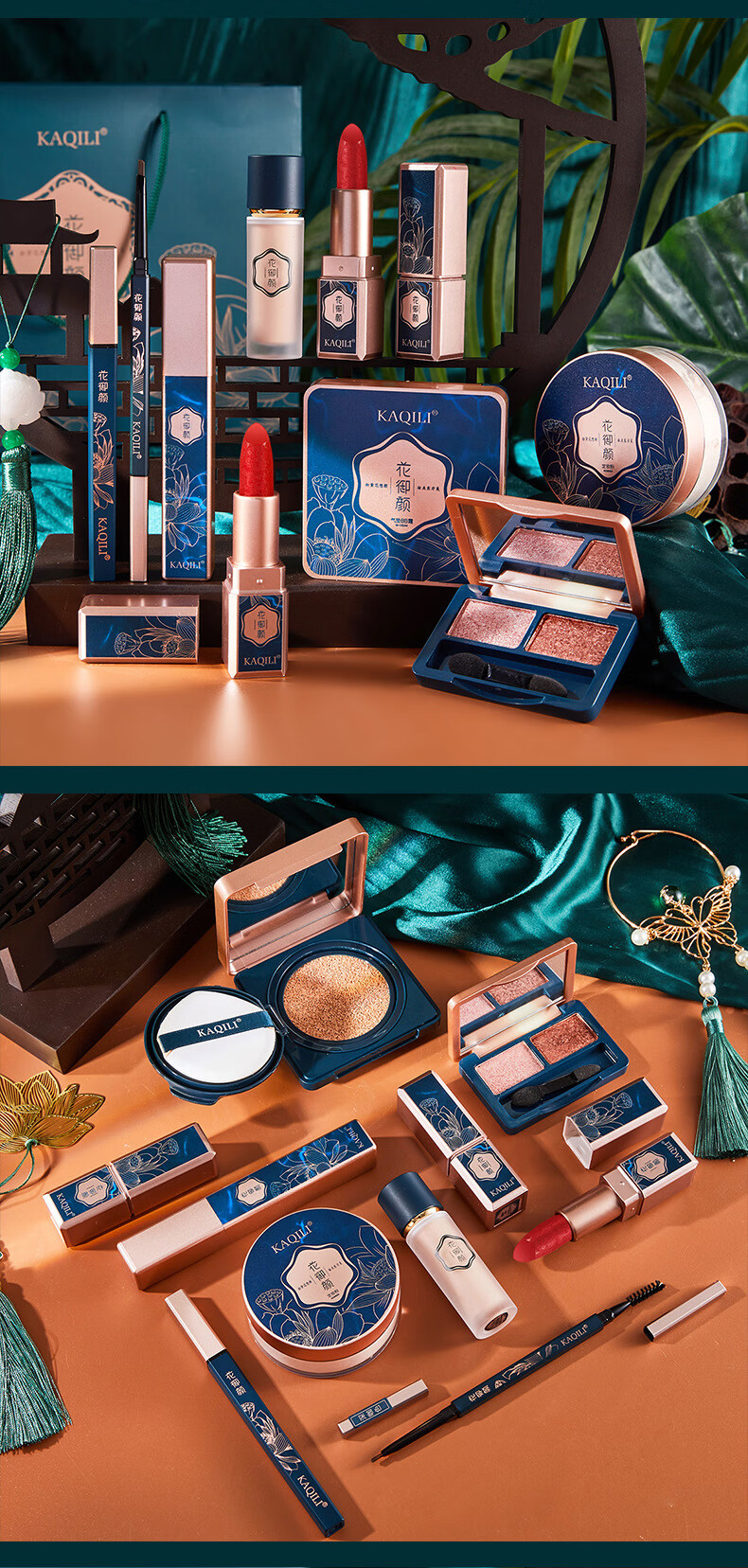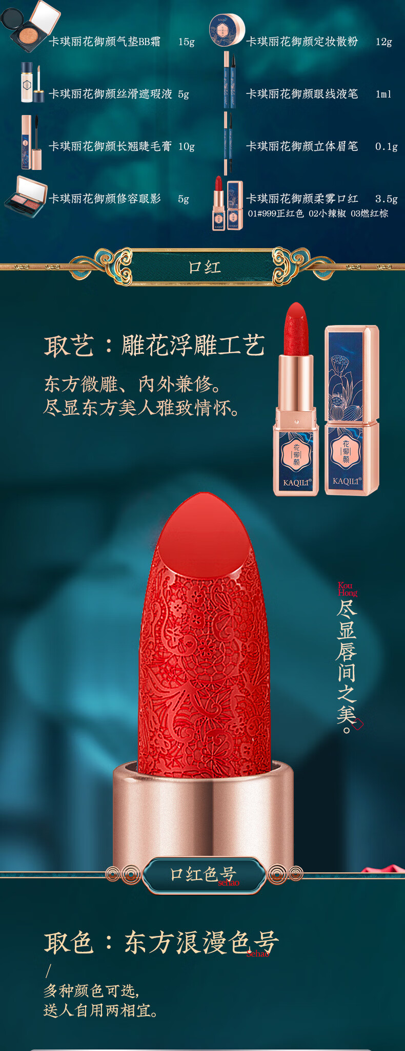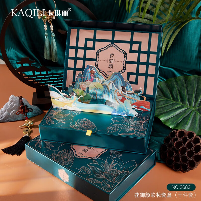 KaQiLi Flower Beauty Makeup Set 10-piece Chinese Valentine's Day Cosmetics Carved Lipstick Set Gift Box Christmas Gift KaQiLi Flower Beauty Makeup Set Gift Bag