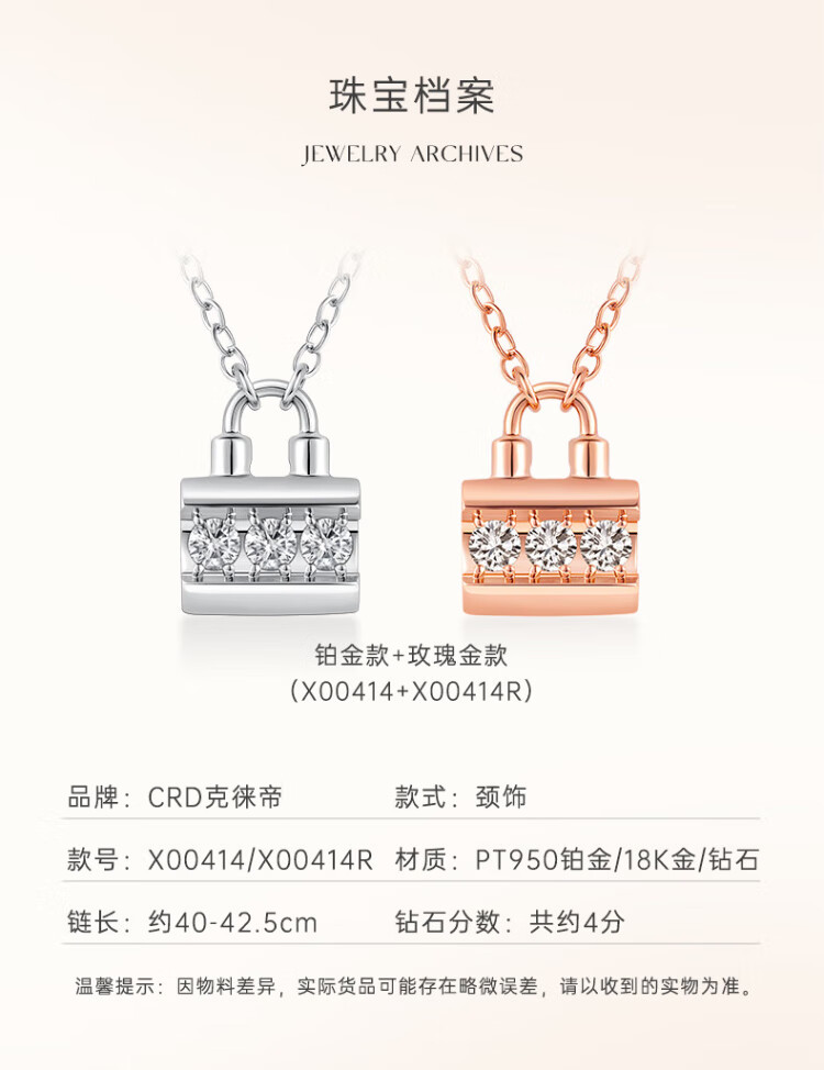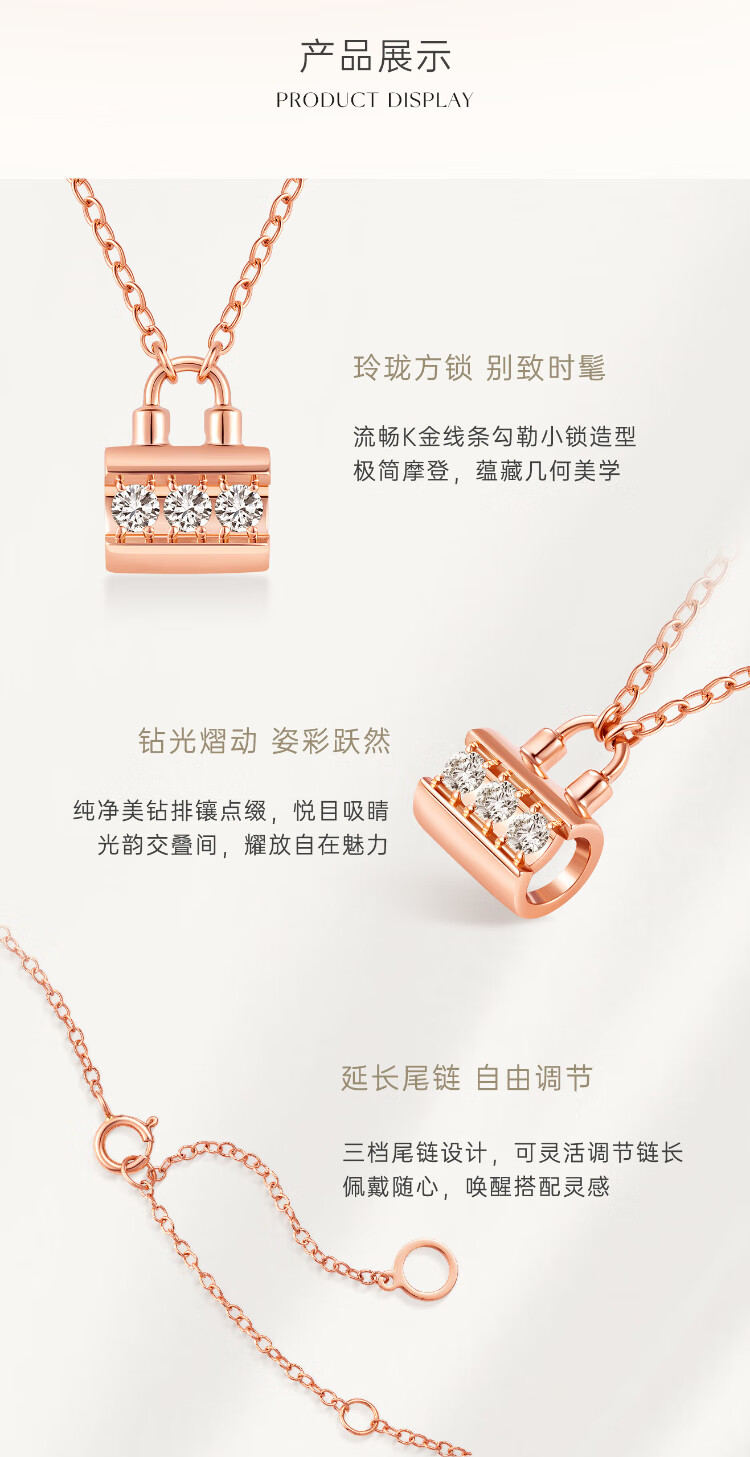 CRD Ke Laidi Spot Sparkling 18K Gold MINI Lock Diamond Pendant Necklace Women's Small Lock Color Gold Gift X00414R 18K Rose Gold Total About 4 Minutes