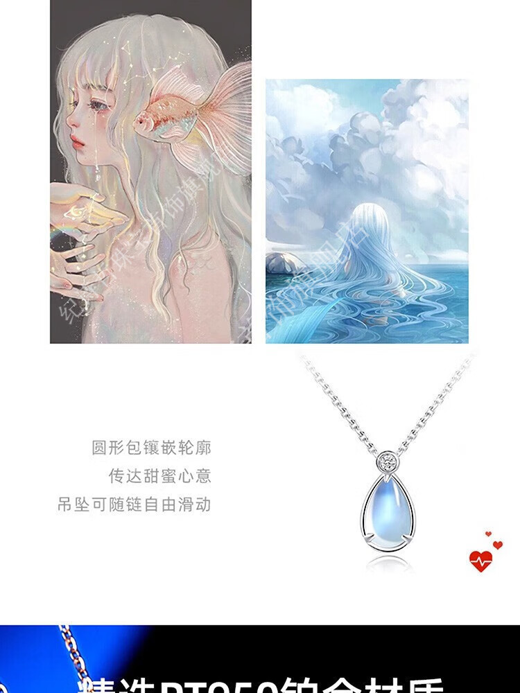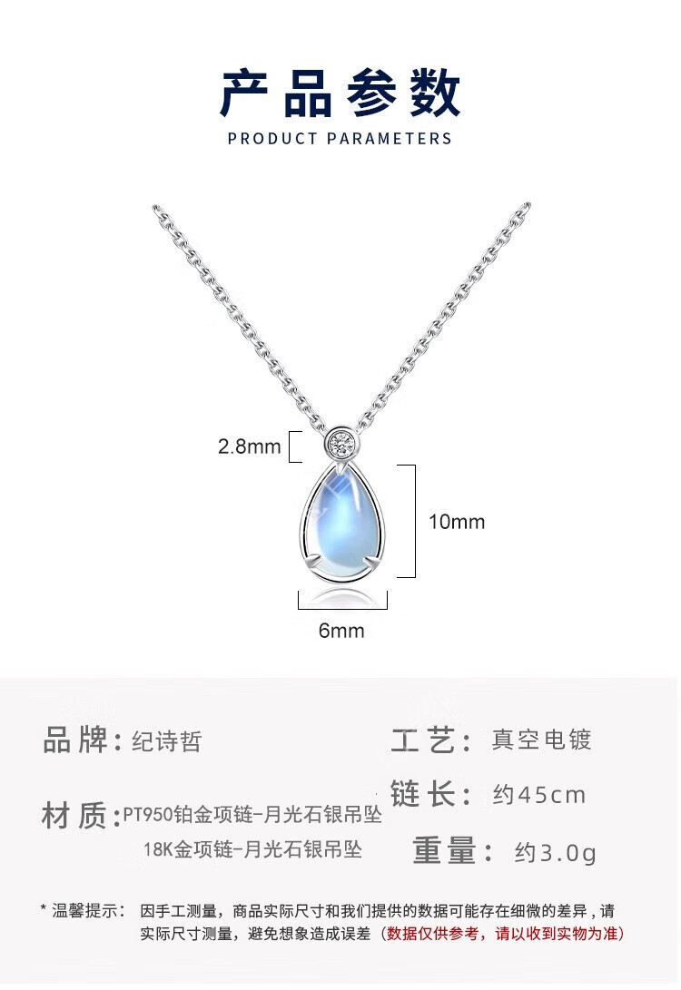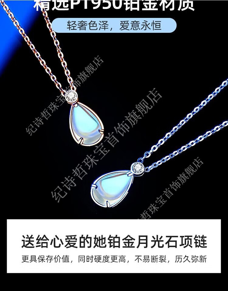 GIEVSZHE Moonstone Platinum Necklace New Women's Moissanite PT950 Platinum Valentine's Day Gift for Girlfriend and Wife PT950 Platinum Necklace + Moonstone Pendant Comes with a free diamond bracelet