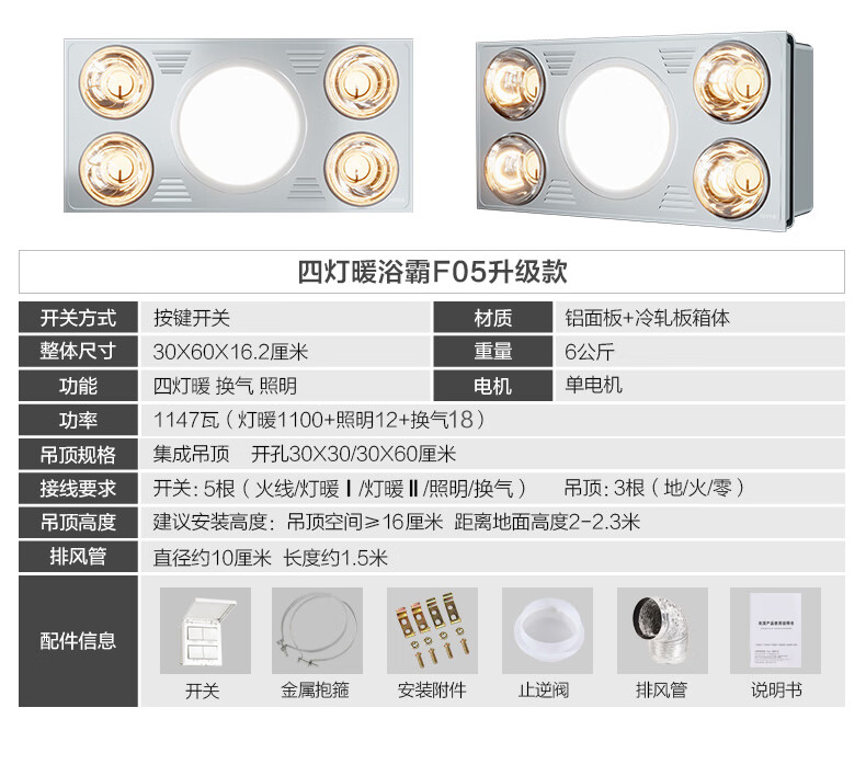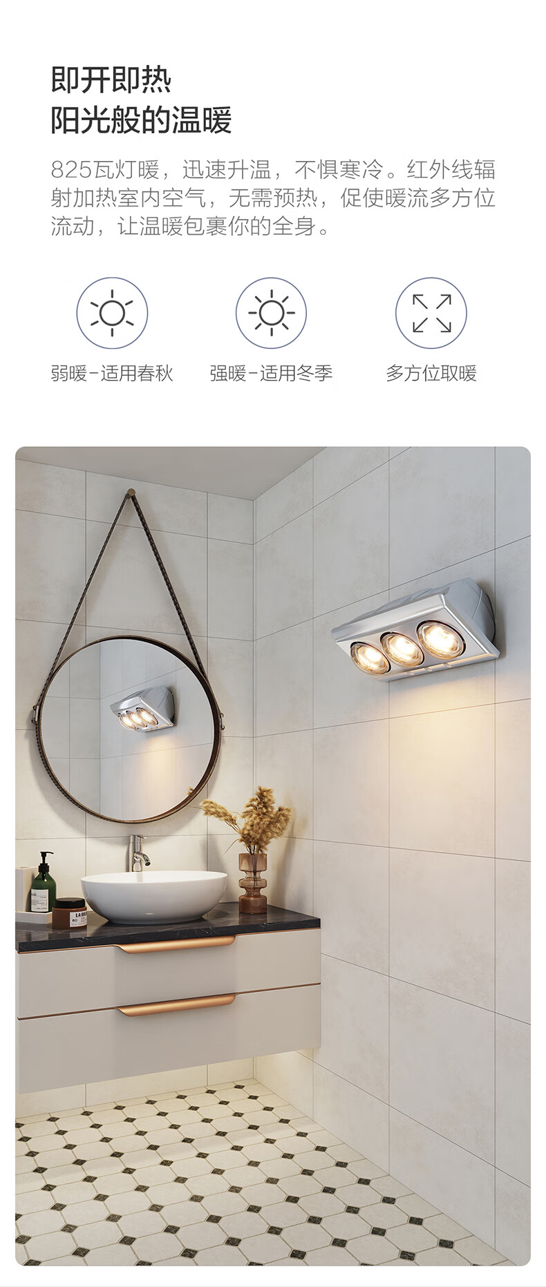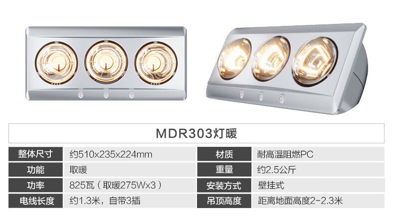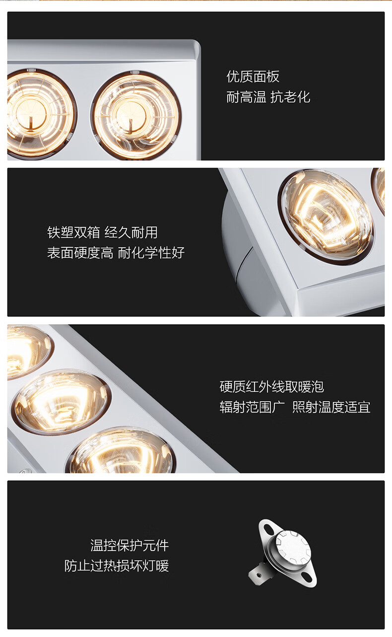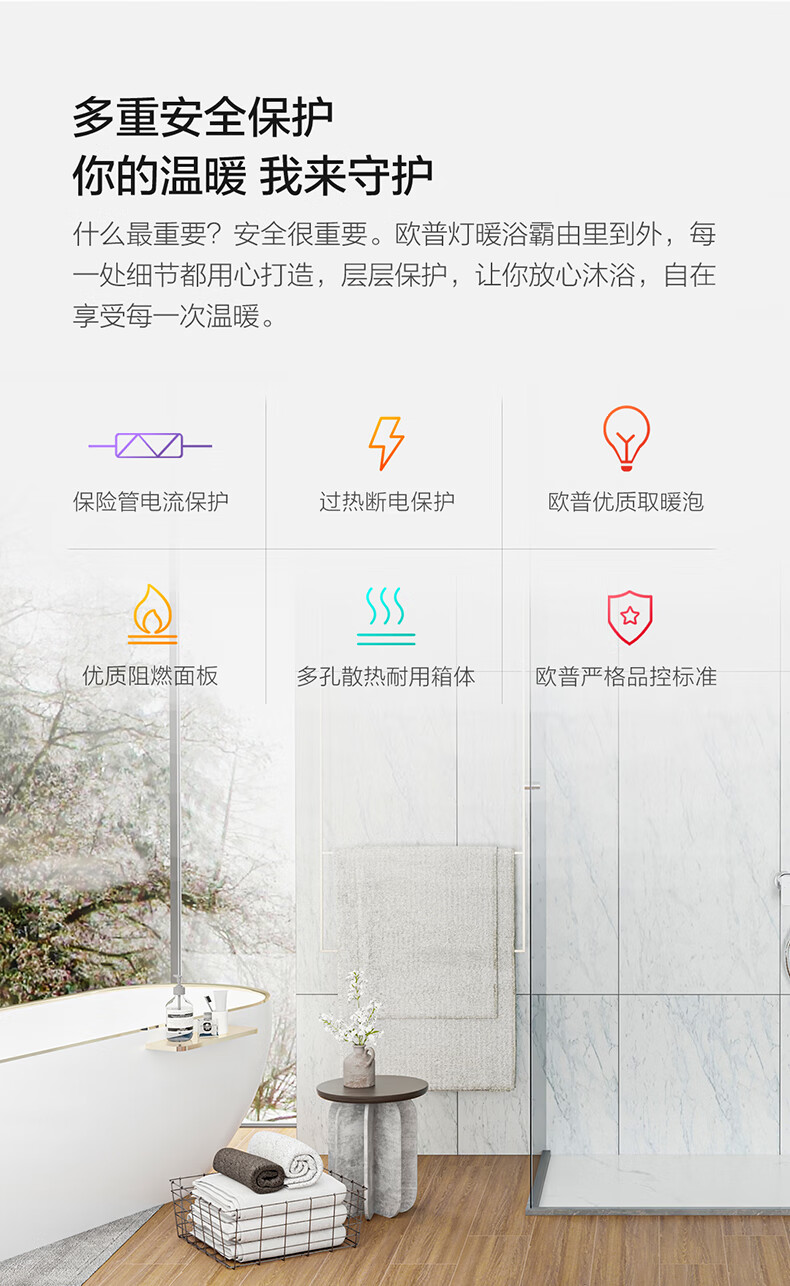OPPLE Light Warming Bath Heater Integrated Suspended Ceiling Ordinary Suspended Ceiling Wall Mounting for Convenient Bathroom Heating Wall-mounted 3-Lamp Warming Leakage Protection Plug-Safe and Quick Heating