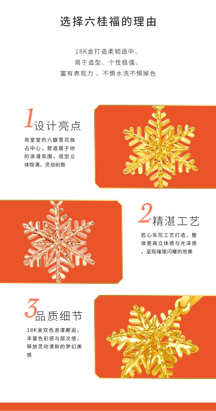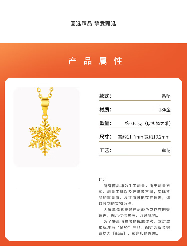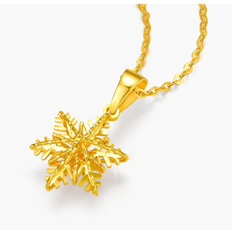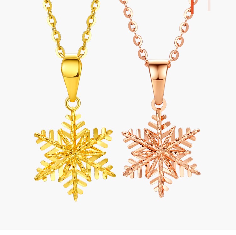 Liuguifu Jewelry 18k gold pendant for women with color gold rose gold romantic snowflake necklace Christmas gift for women Christmas gift K yellow + about 0.85 g + brand gift box