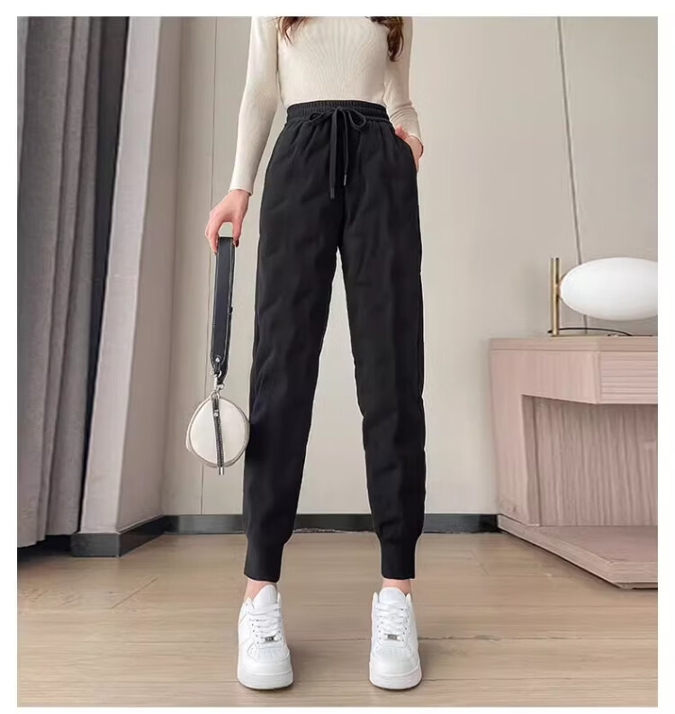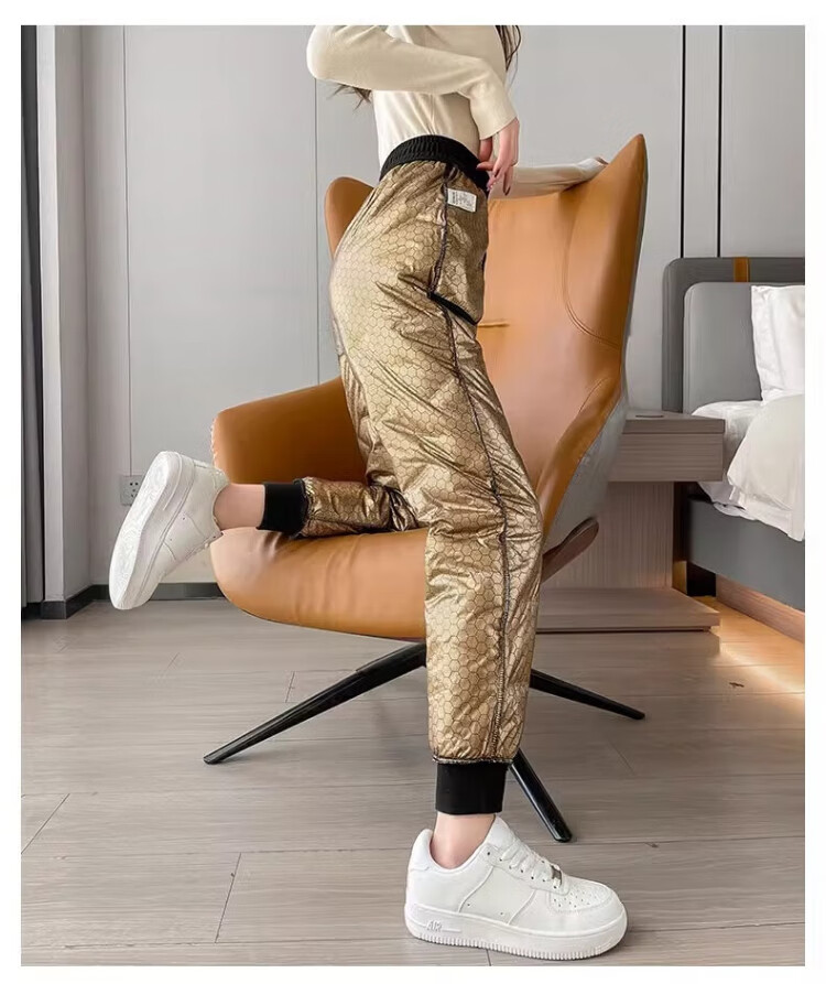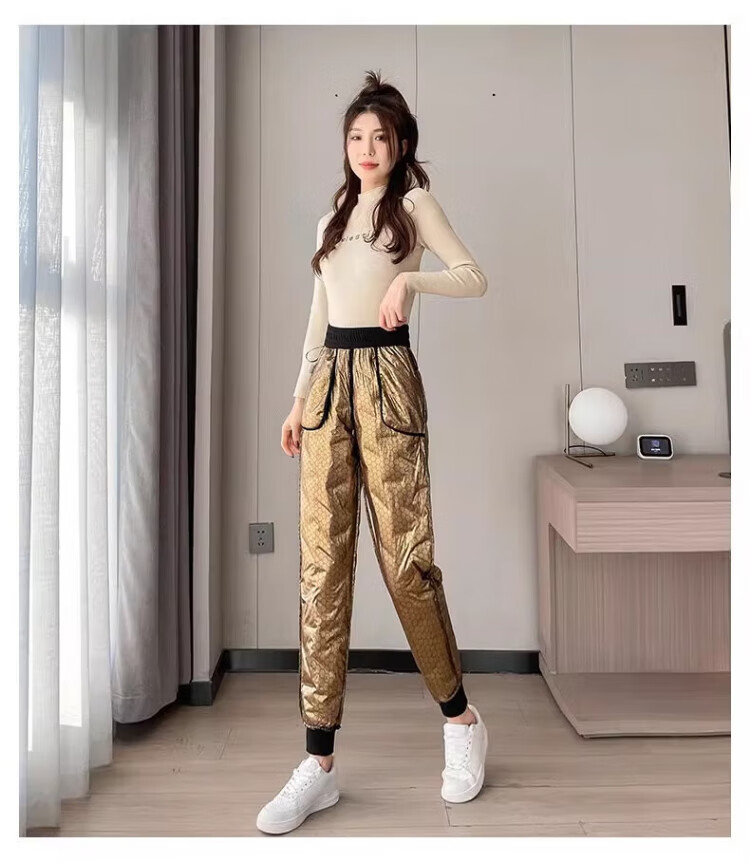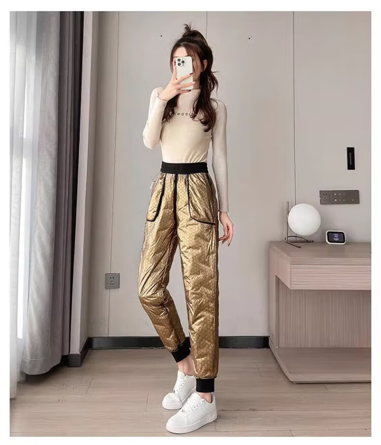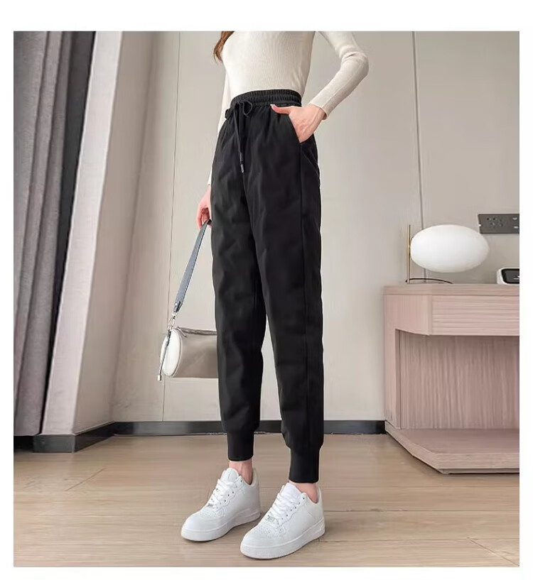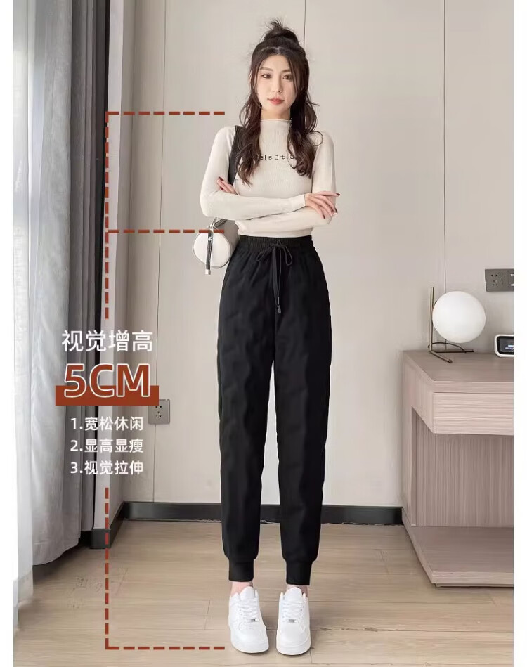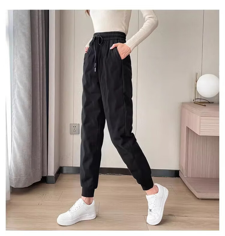 Yu Zhaolin White Duck Down Pants Women's Winter Loose High Waisted Casual Harem Pants Thickened Slimming Plus Velvet Warm Pants Upgraded Black Gold 90 White Duck Down Cold Resistant-40 XL Recommended 120-140 Jin Jin equals 0.5 kg