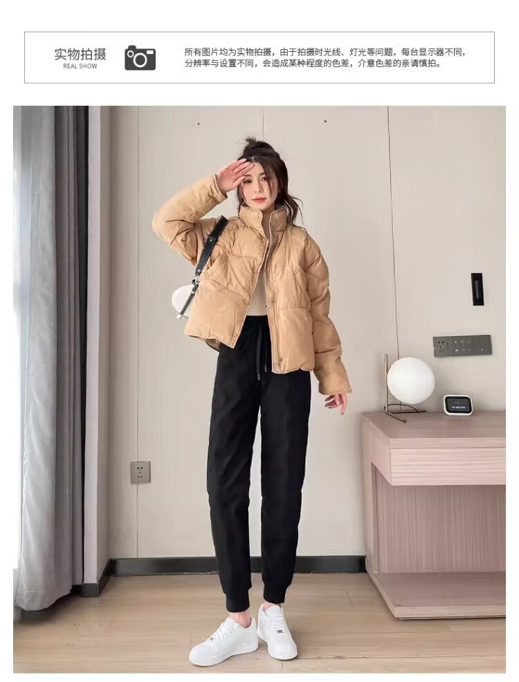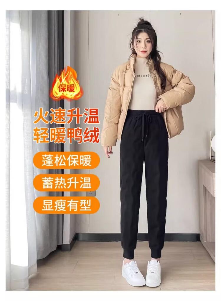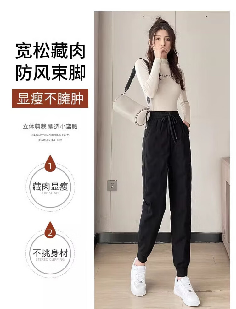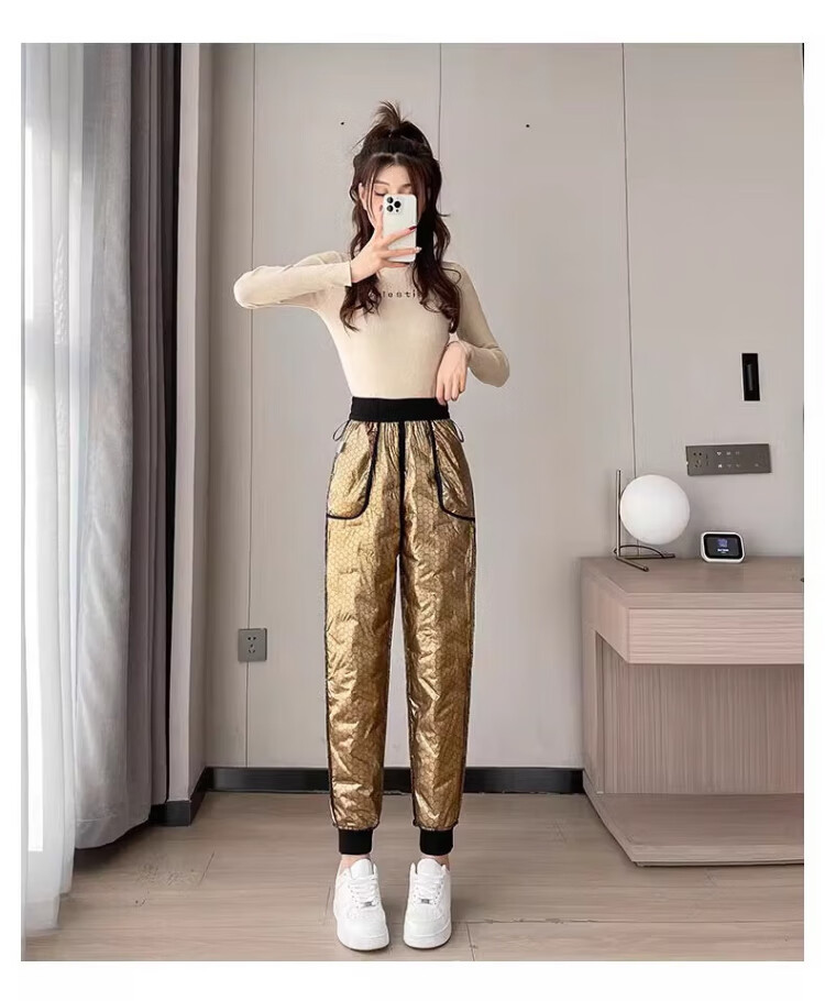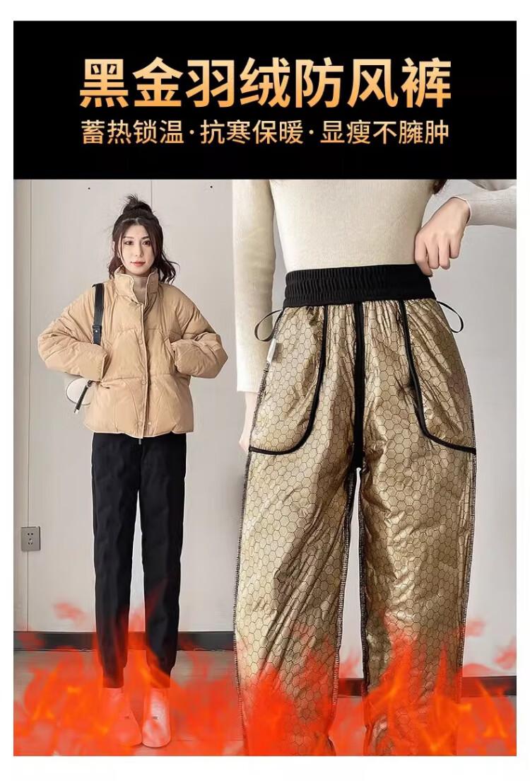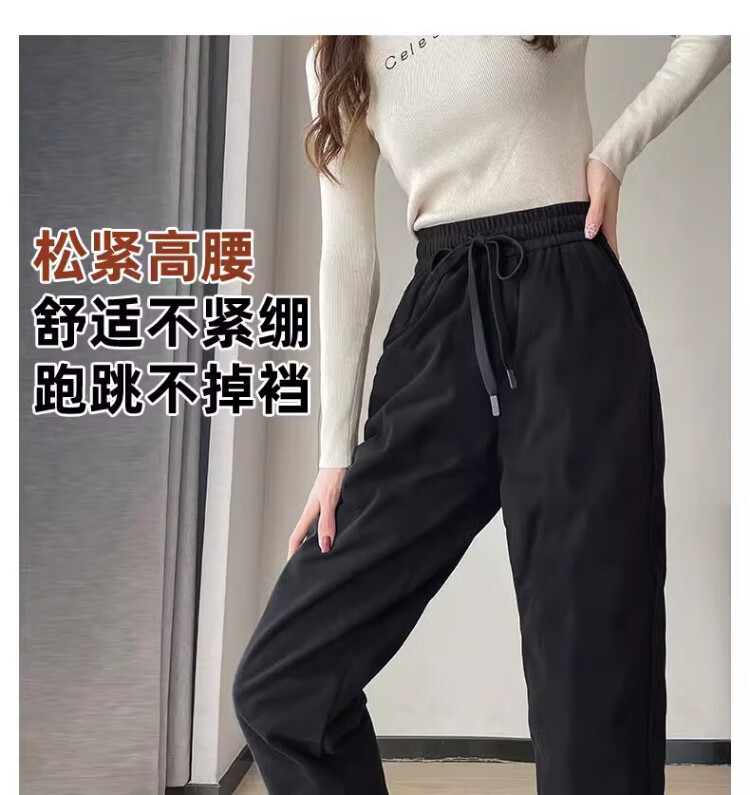 Yu Zhaolin White Duck Down Pants Women's Winter Loose High Waisted Casual Harem Pants Thickened Slimming Plus Velvet Warm Pants Upgraded Black Gold 90 White Duck Down Cold Resistant-40 XL Recommended 120-140 Jin Jin equals 0.5 kg