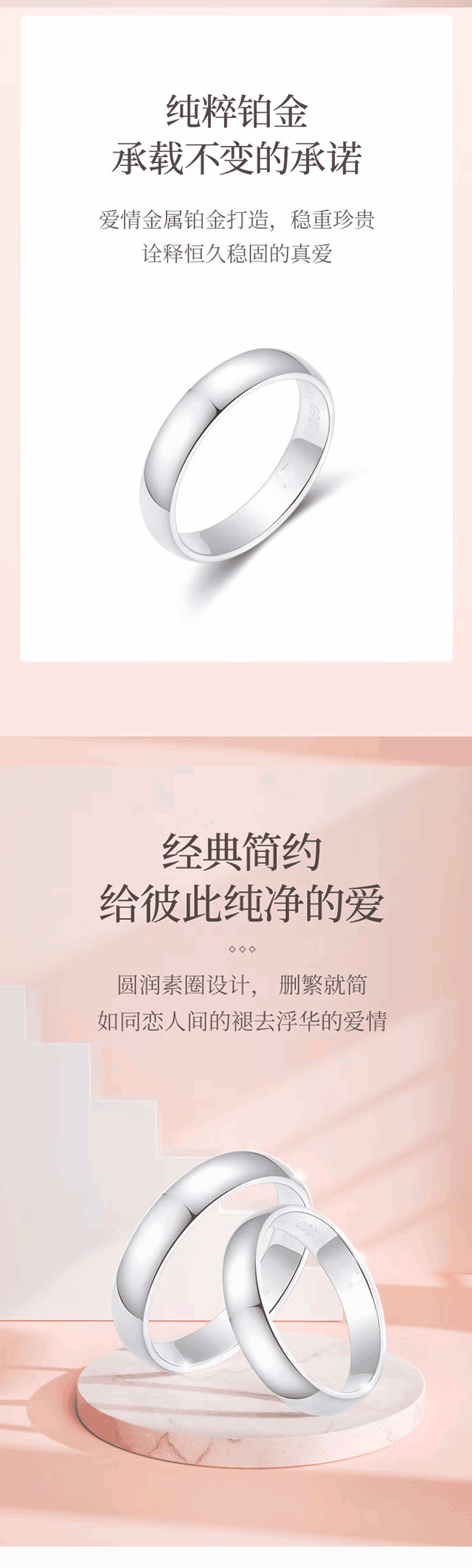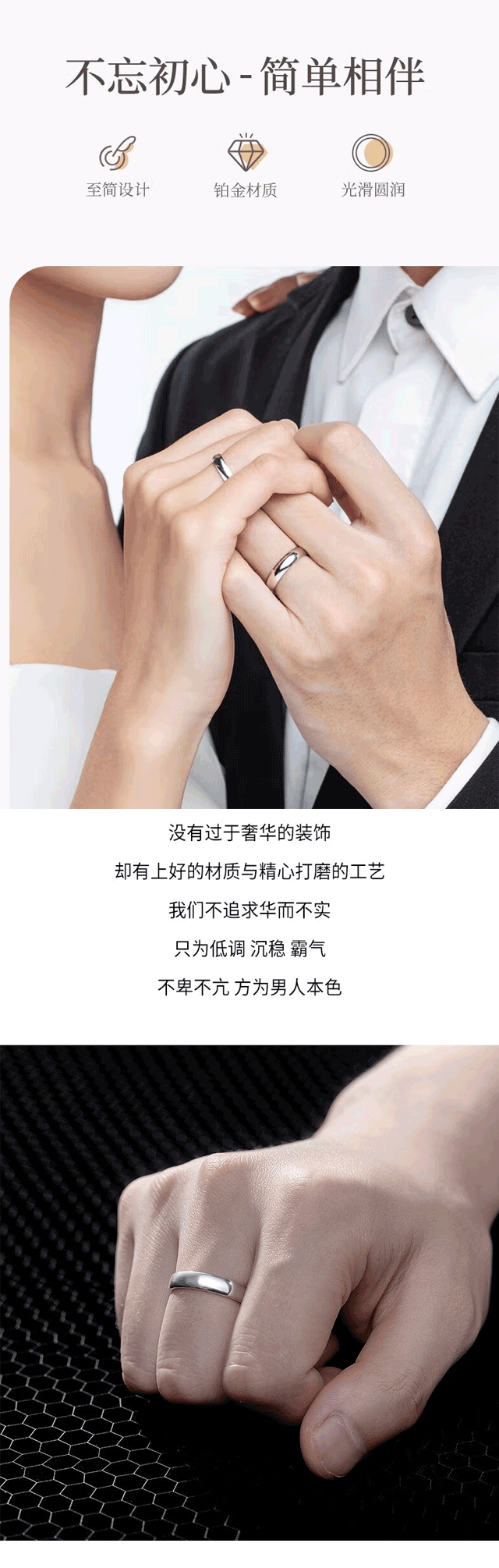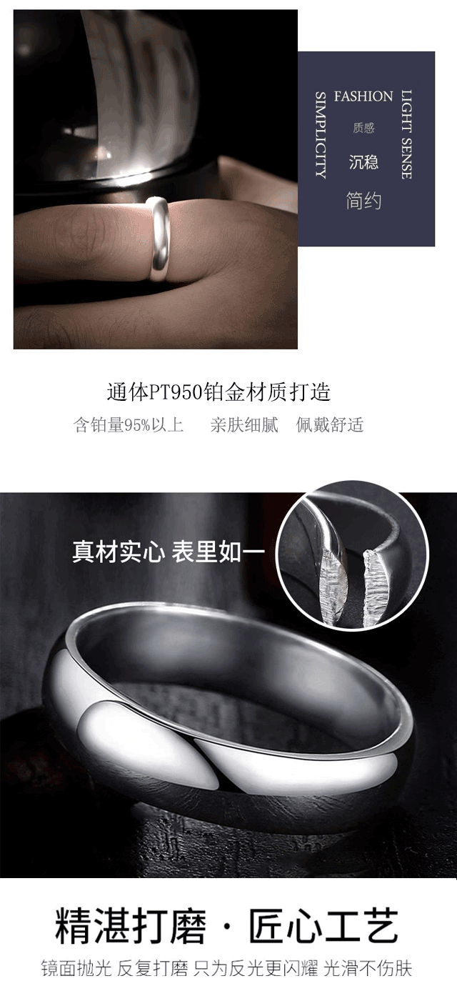 Jibaolou Pt950 platinum couple ring for men and women, platinum pair of rings, glossy ring, closed ring, wedding ring, No. 9-3.5g