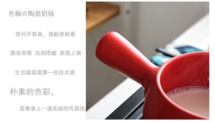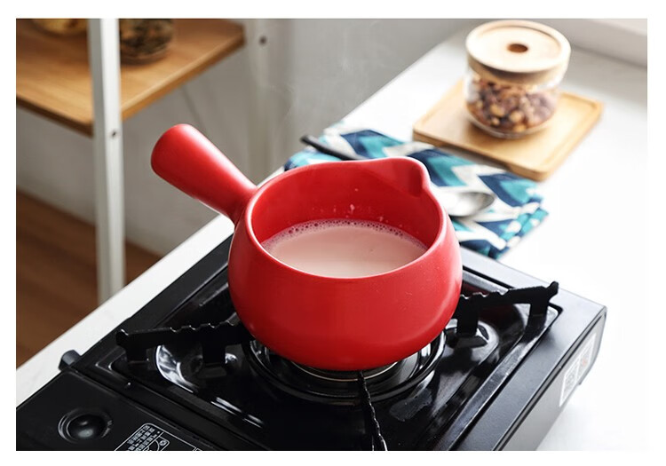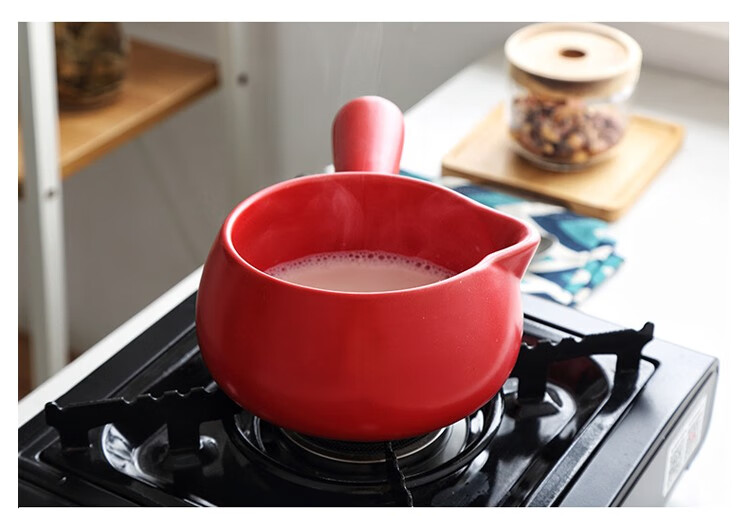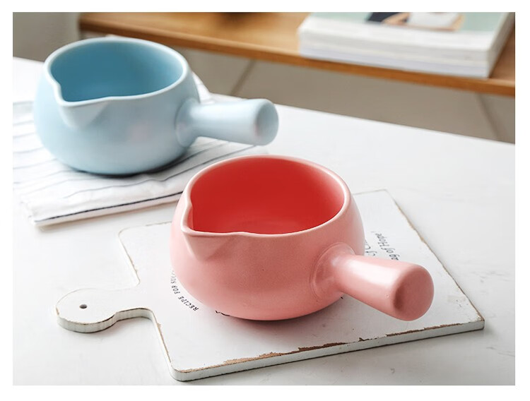 DuoMeiRan uncoated small milk pot casserole warm milk household gas soup single-handle ceramic pot baby food supplement pot pink 1000ML small milk pot