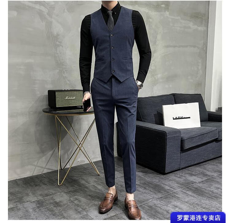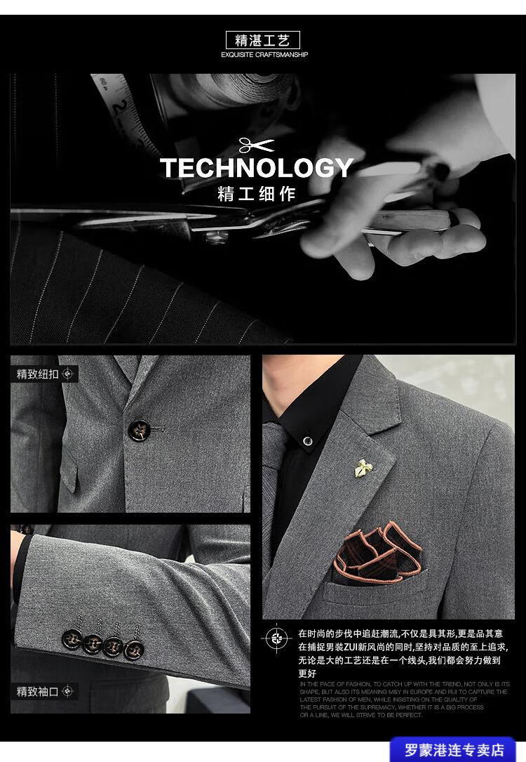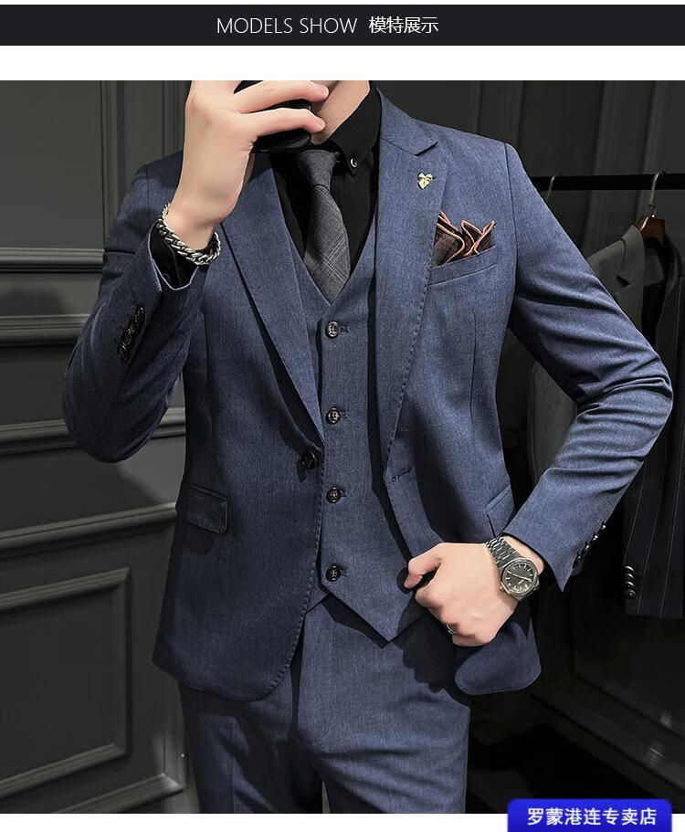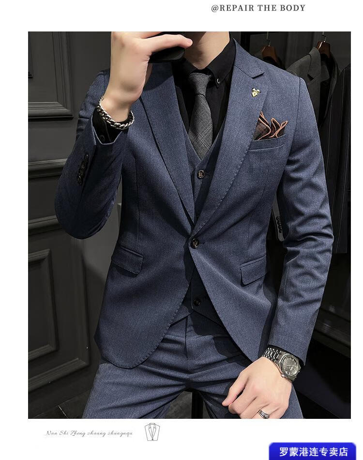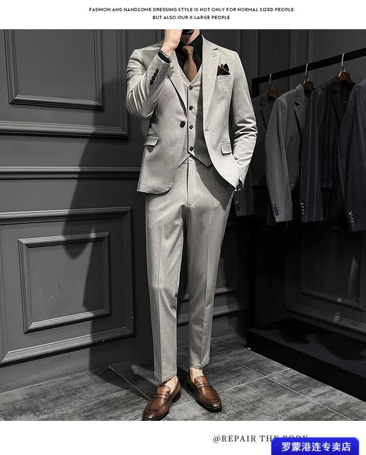 ROMON Groom's Suit Men's Three-piece Complete Set Korean Style Slim Temperament Business Casual Formal Wedding Groomsmen Dress SJT9931 Black 2XL