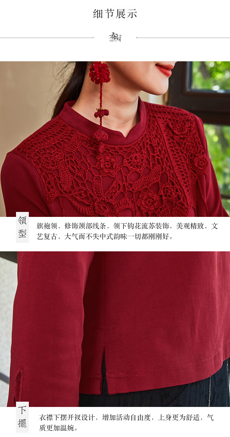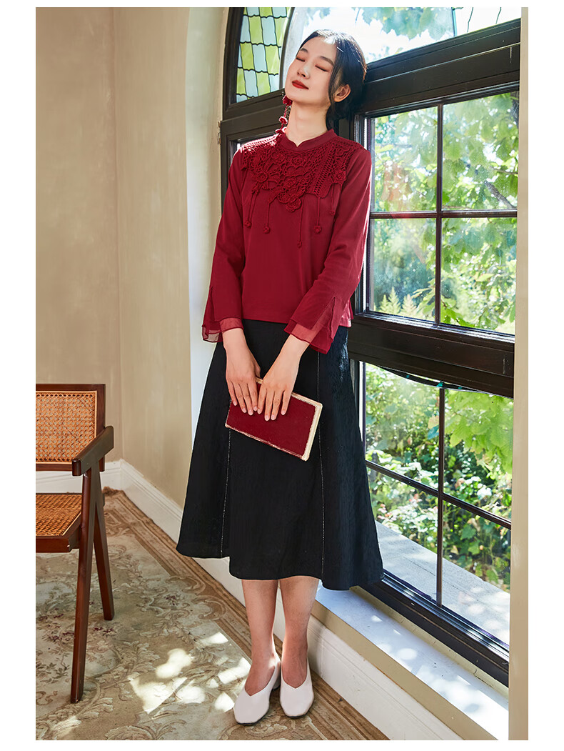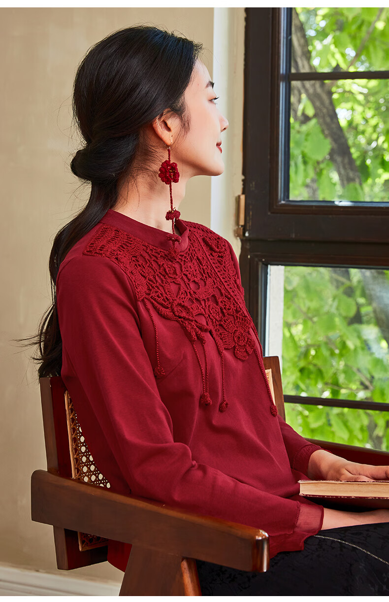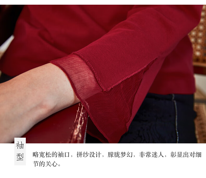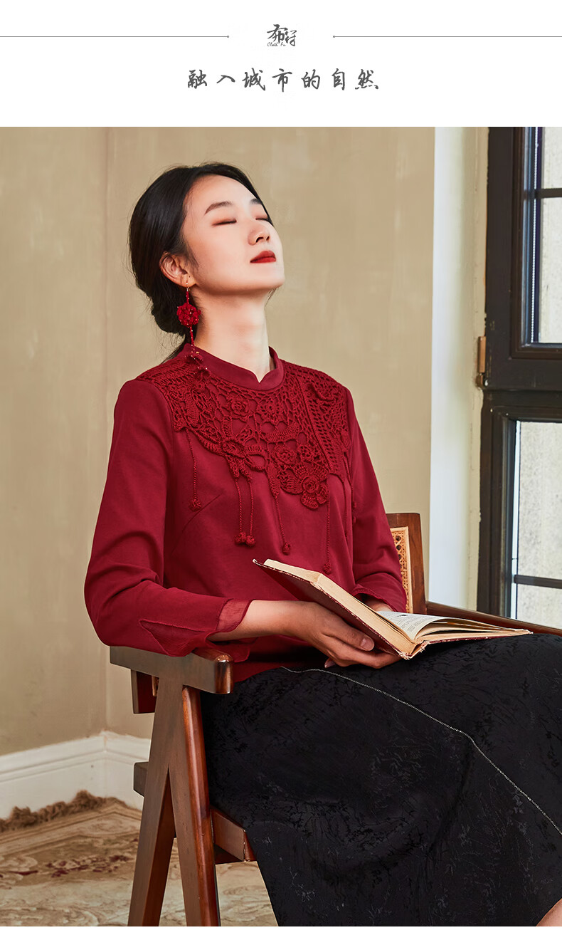 Bufu Bufu autumn new Chinese style long-sleeved red improved cheongsam top for women oriental simple luxury style Zhuying XL