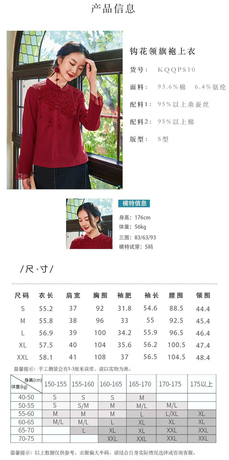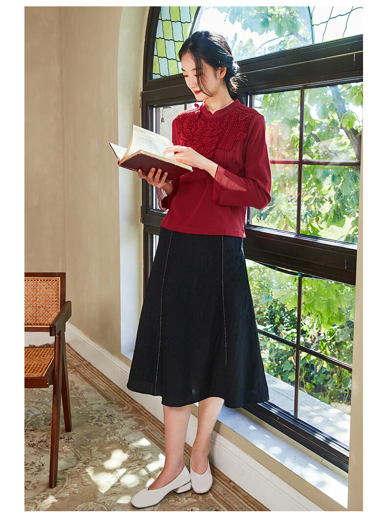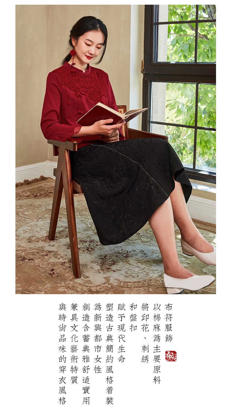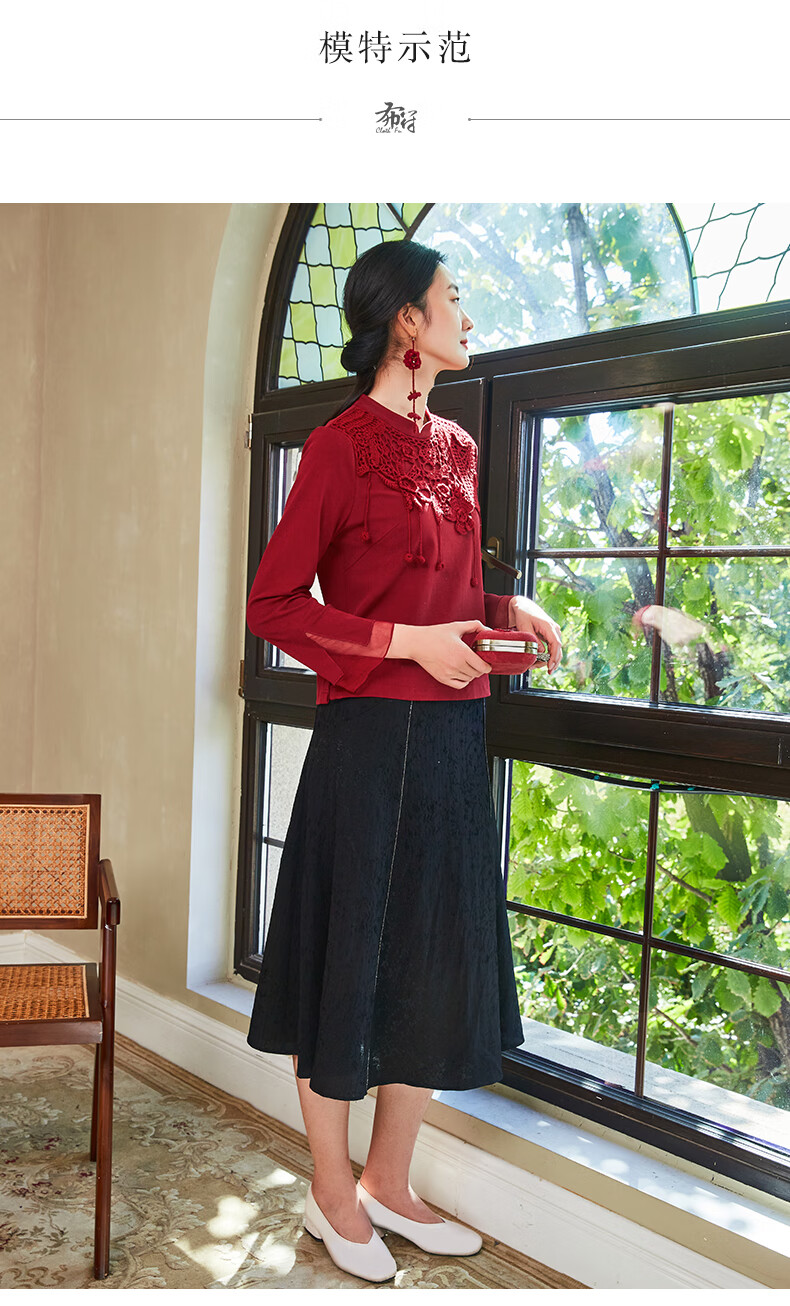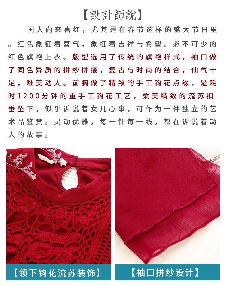 Bufu Bufu autumn new Chinese style long-sleeved red improved cheongsam top for women oriental simple luxury style Zhuying XL