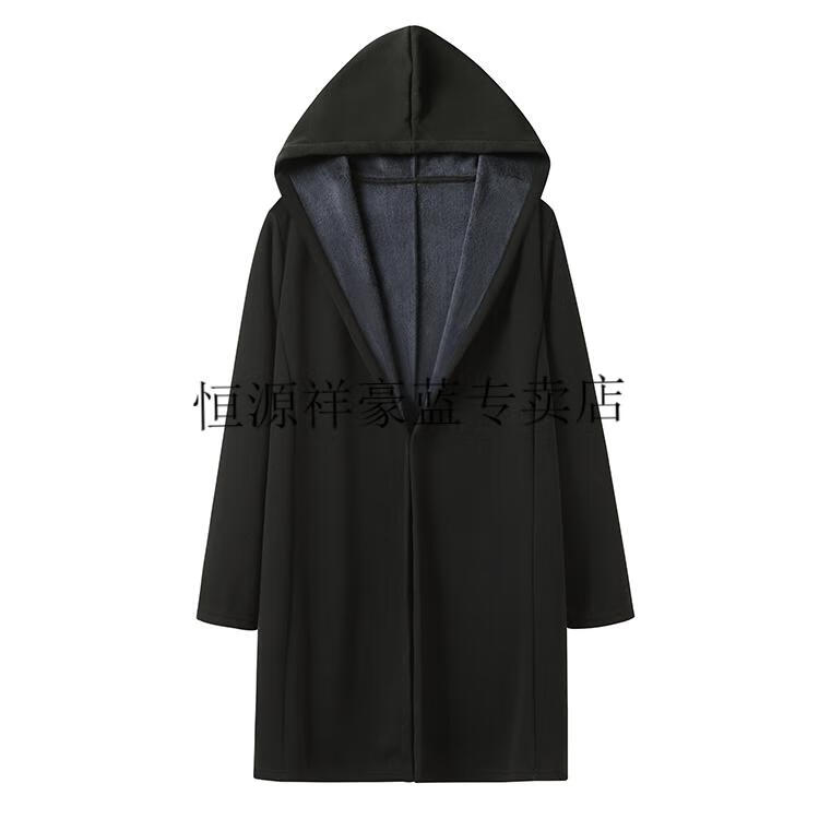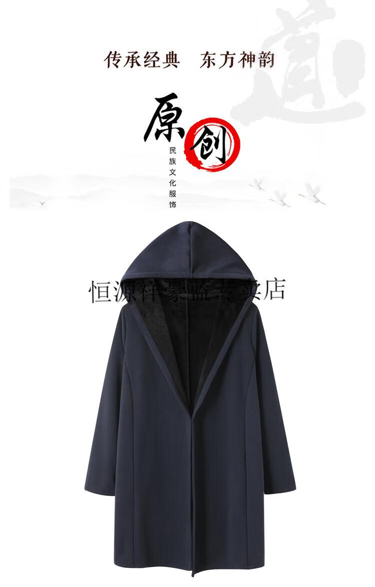 Hengyuanxiang Chinese style ancient costume hooded cloak cloak spring autumn winter loose cardigan jacket men's velvet thickened mid-length style black L 130-150Jin Jin equals 0.5 kg