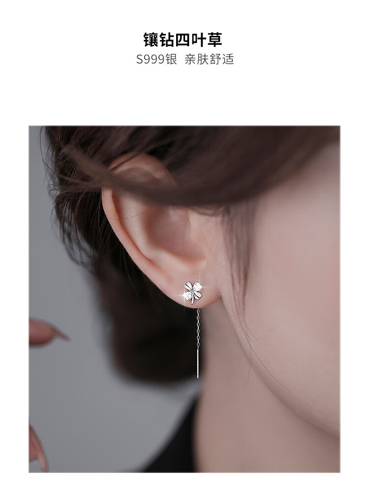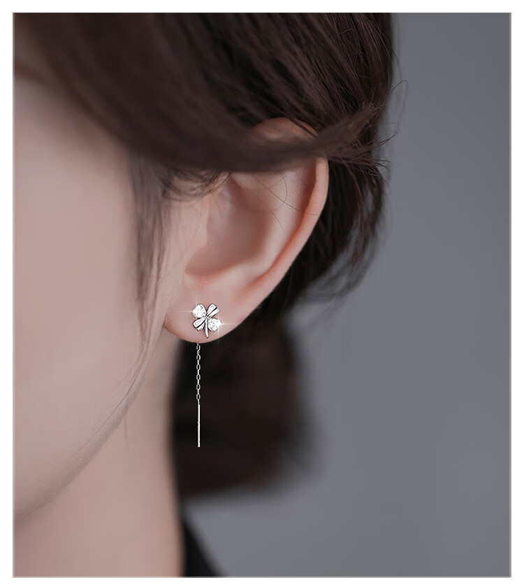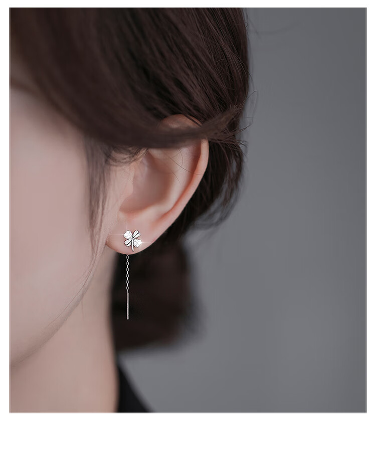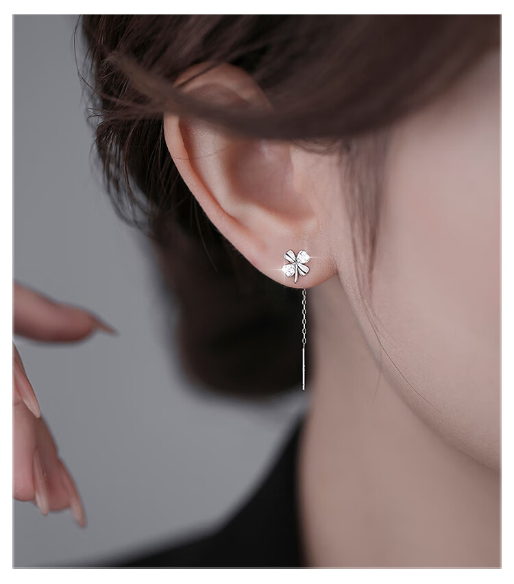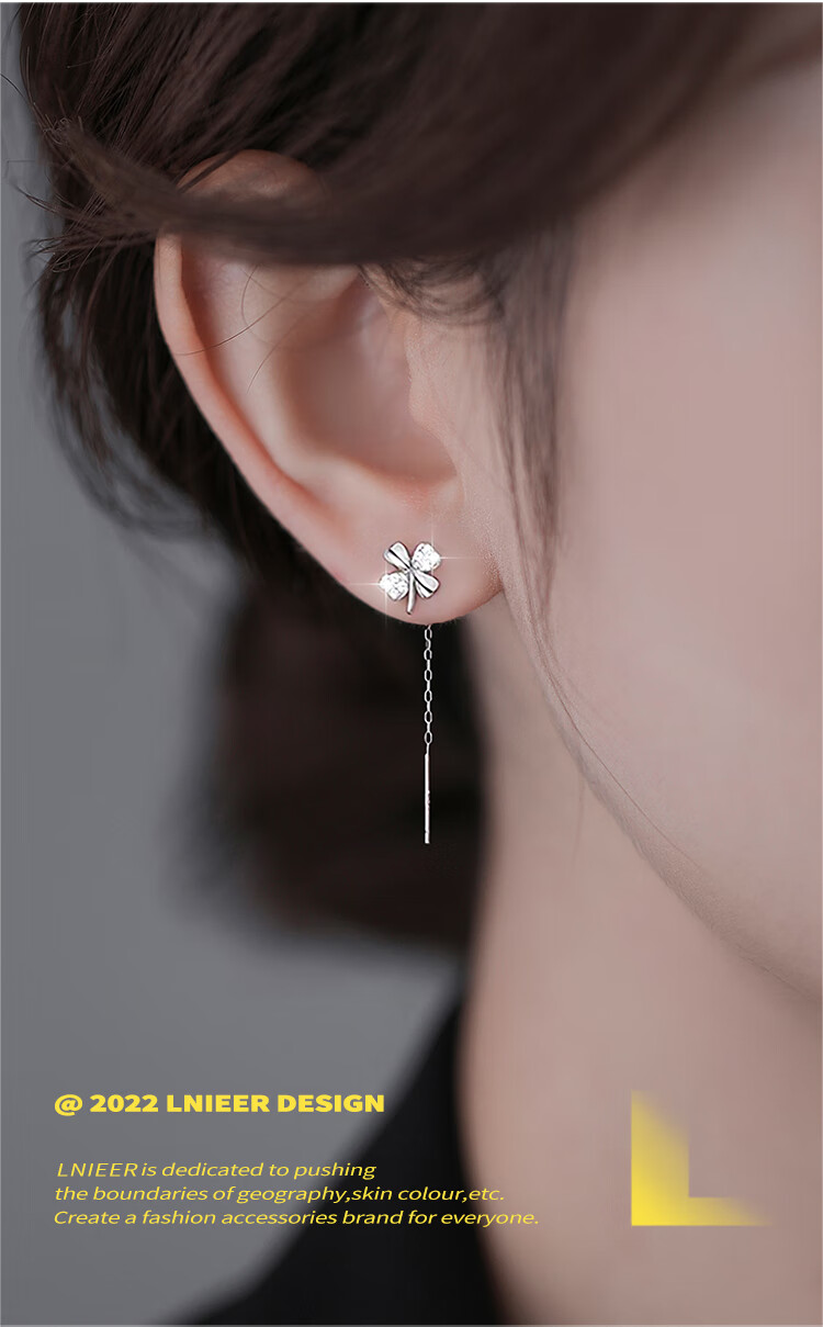Lnieer 999 Pure Silver Four-leaf Clover Ear Wire Women's Light Luxury Niche Design Sensational Earrings 2025 New Silver Earrings Earrings 999 Pure Silver Four-Leaf Clover Ear Wire