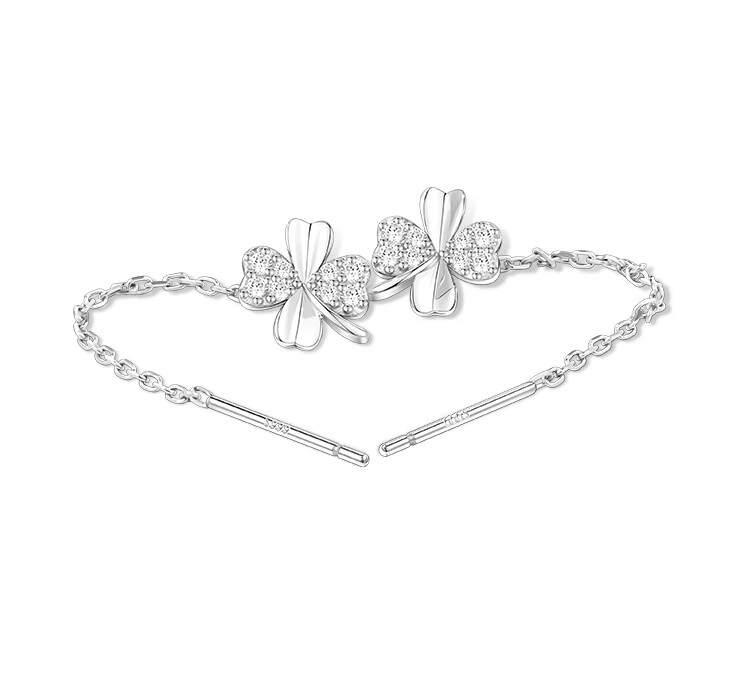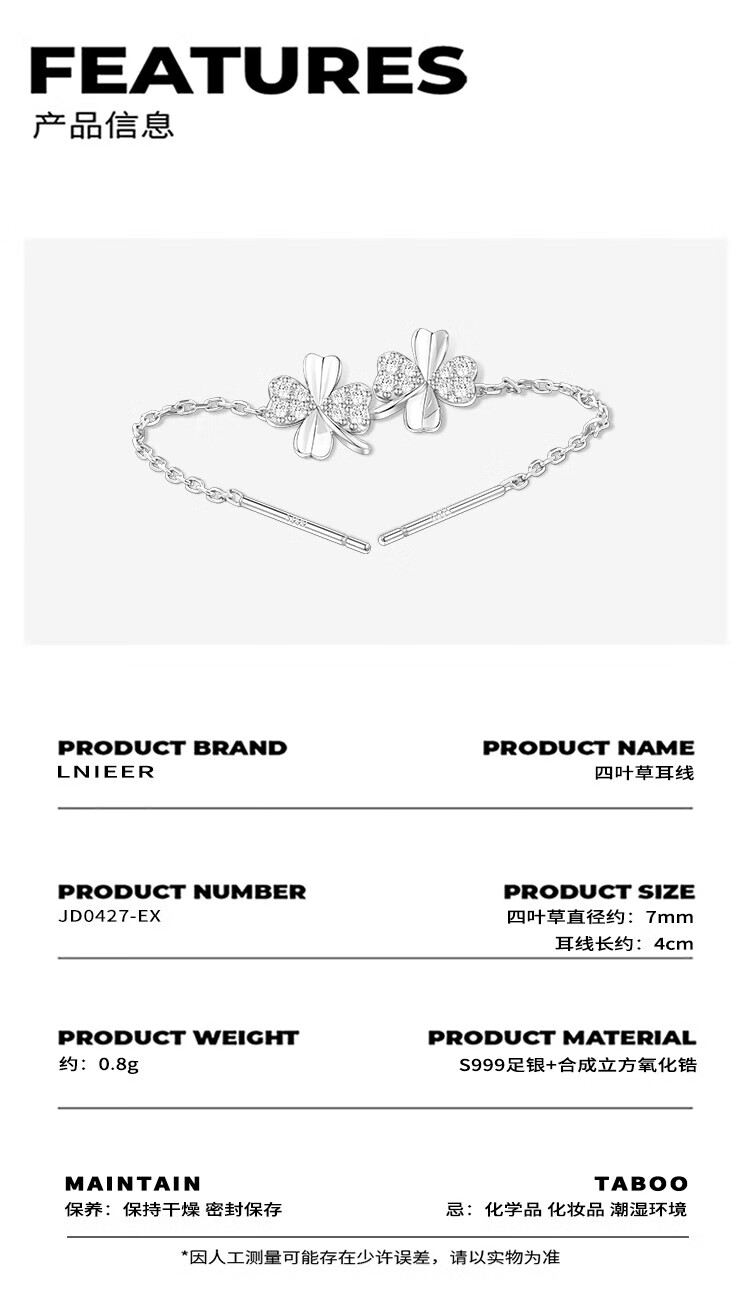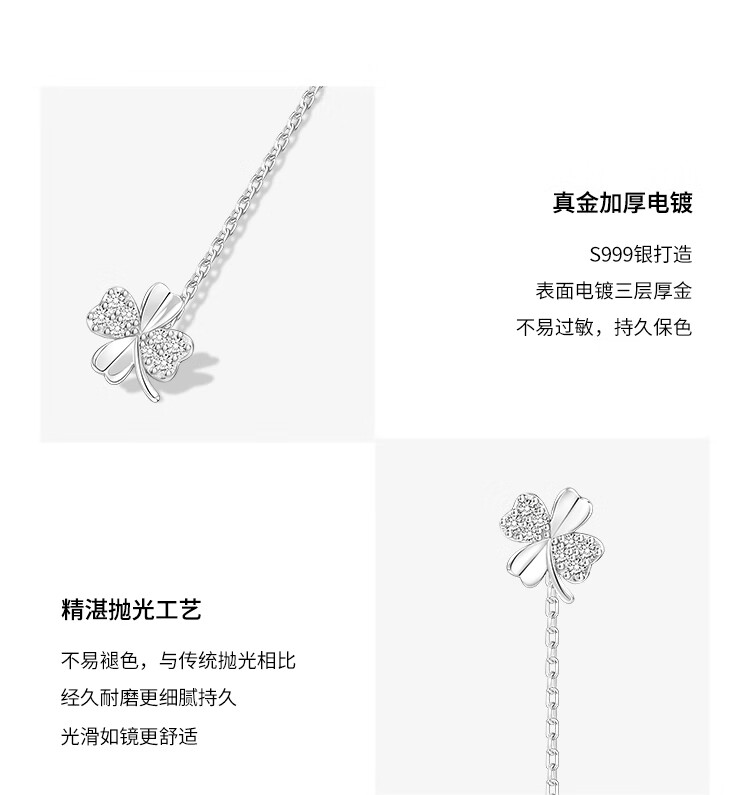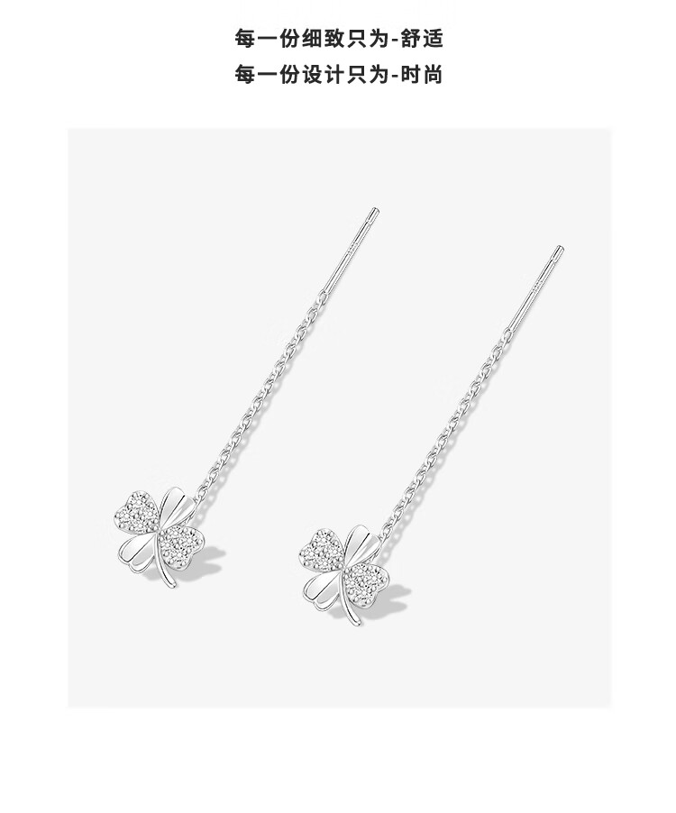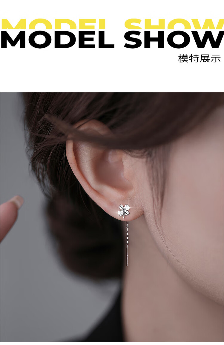Lnieer 999 Pure Silver Four-leaf Clover Ear Wire Women's Light Luxury Niche Design Sensational Earrings 2025 New Silver Earrings Earrings 999 Pure Silver Four-Leaf Clover Ear Wire