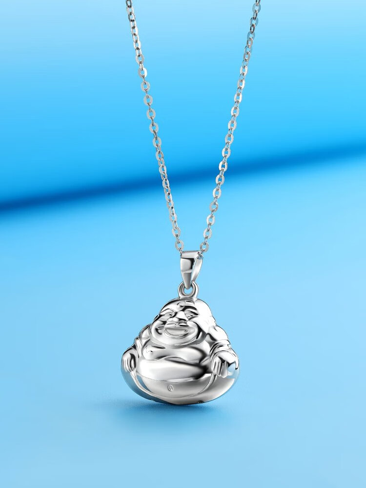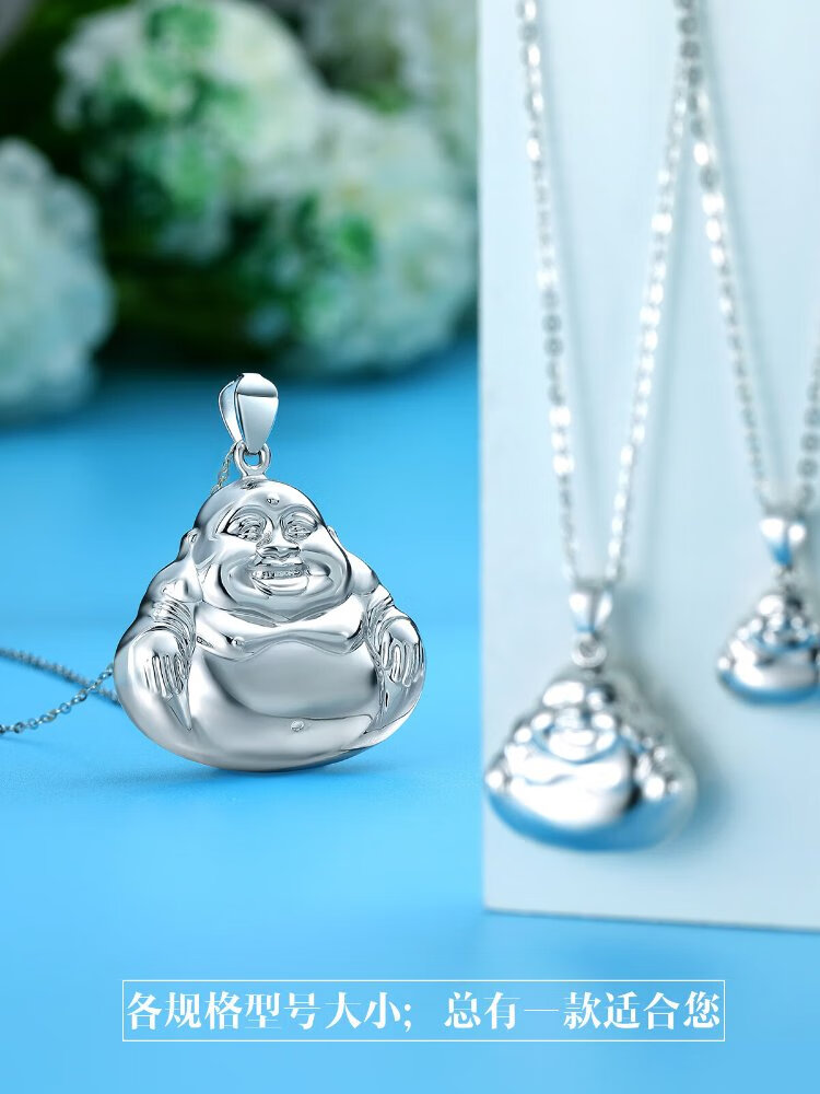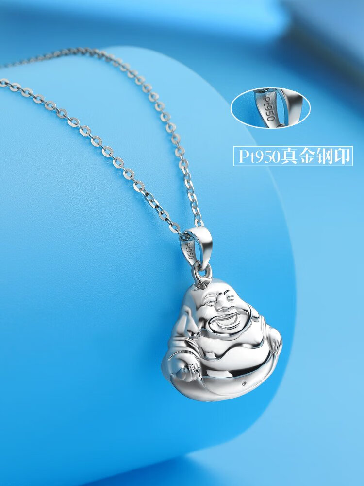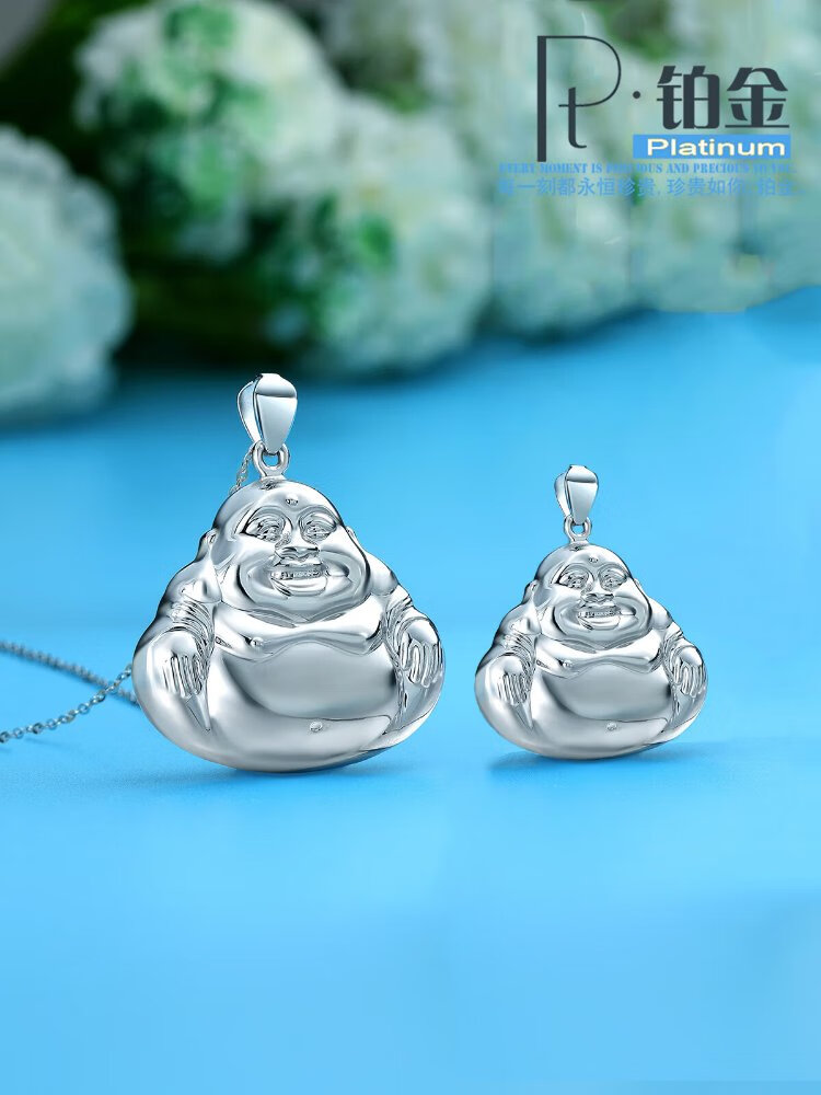 Heye Jewelry Pt950 platinum Buddha pendant, real gold for women, platinum three-dimensional double-sided smiling face Maitreya Buddha and Bodhisattva, women's single pendant, platinum Pt950, gold weight 4.51 grams, width 18mm, height including buckle 23mm