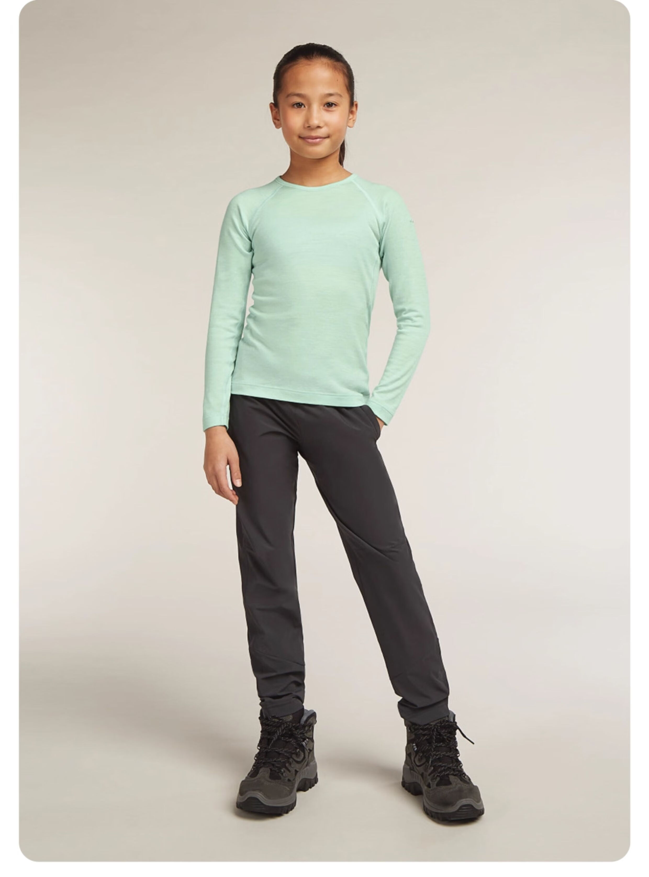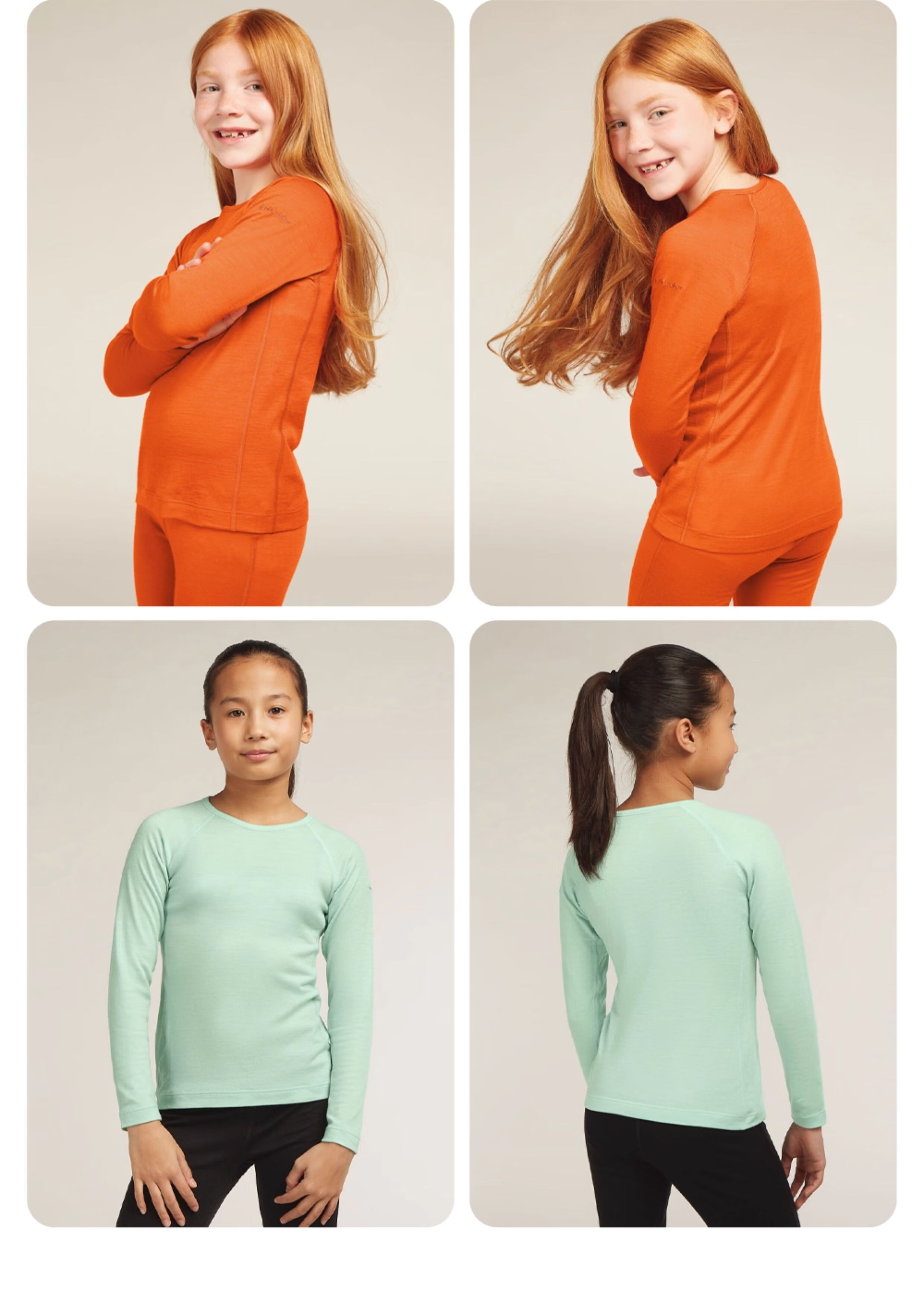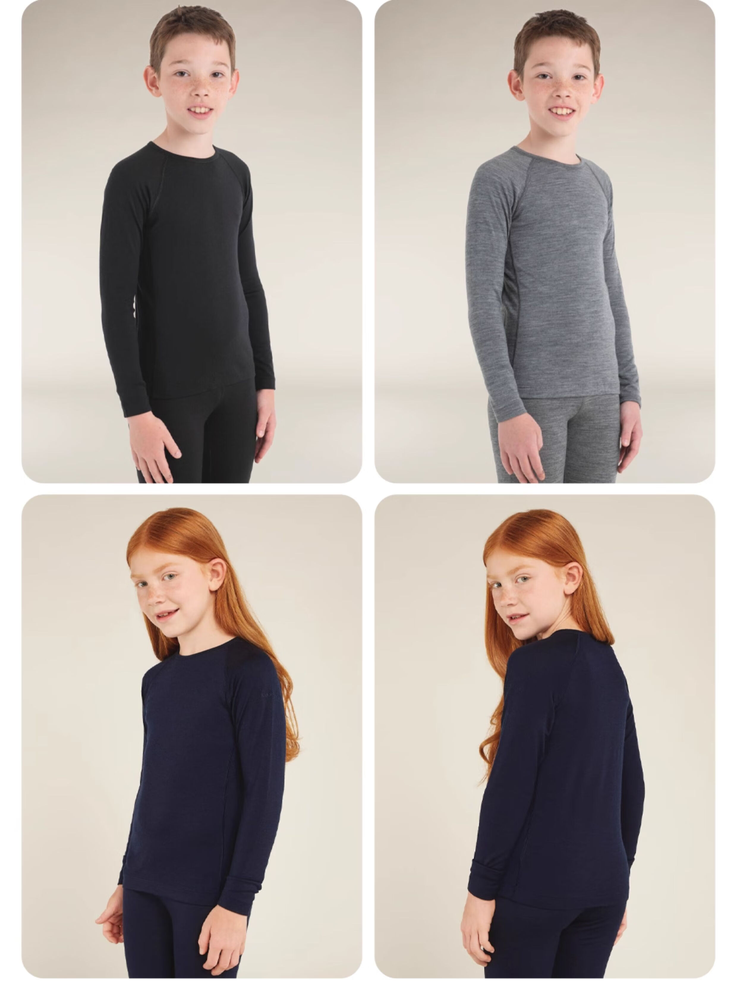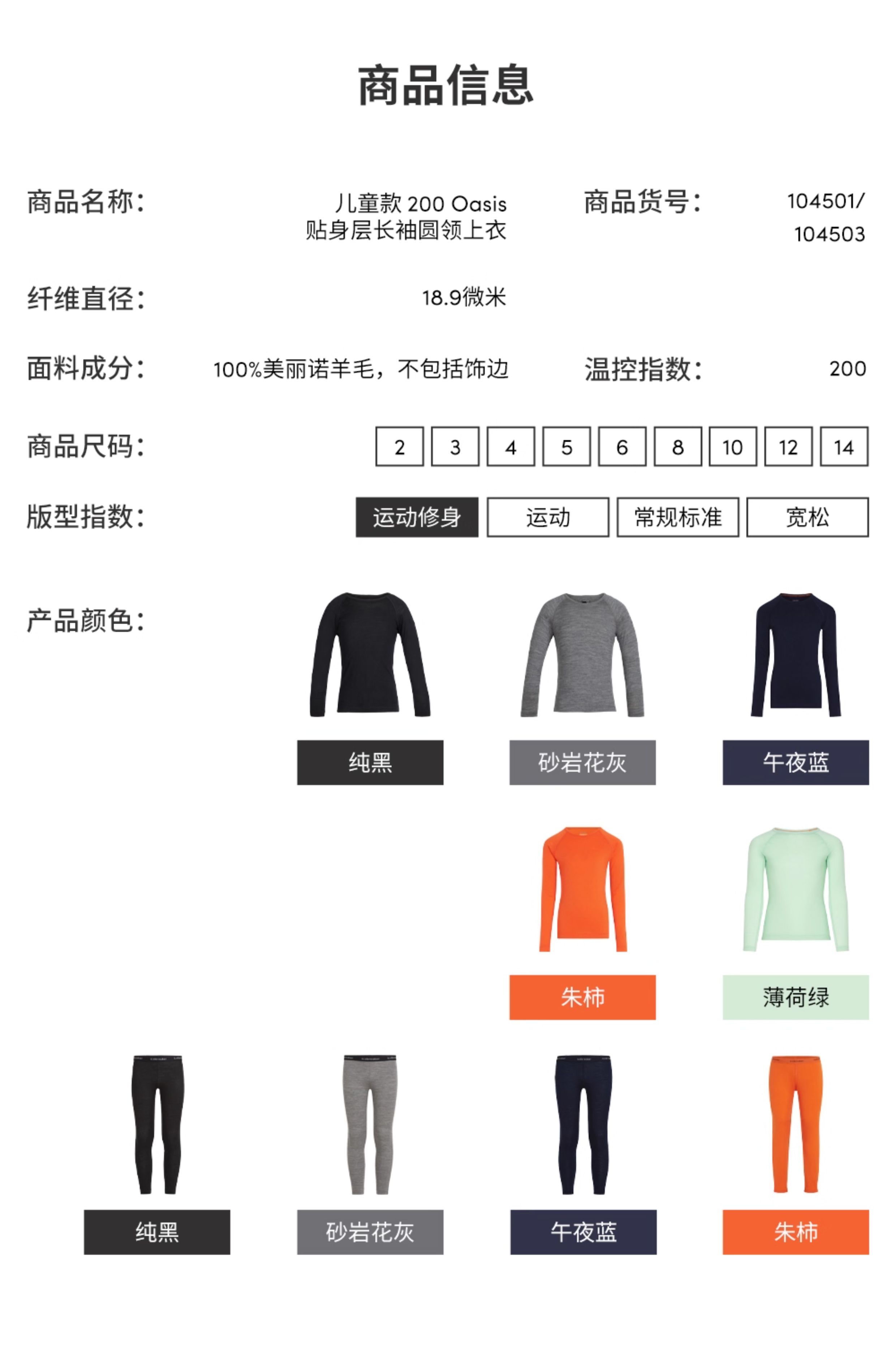 Icebreaker100% pure merino wool children's 200Oasis long-sleeved outdoor sports base layer ski functional underwear black-top (universal for boys and girls)-104501001 14