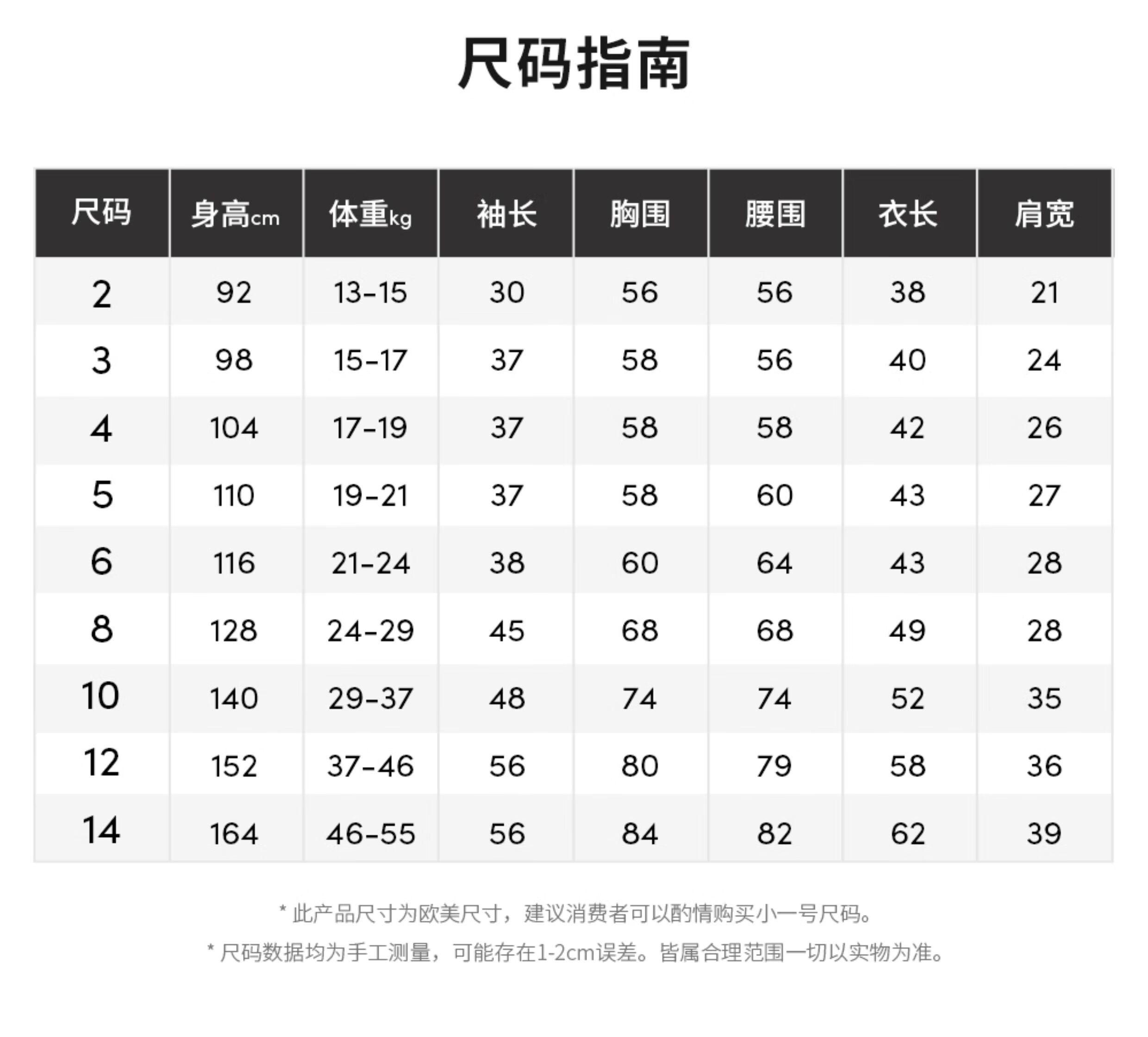 China (cm) 160-165/84-86 165-170 / 88-90 167-172 / 92-96 168-173 / 98-102 170-176 / 106-110
