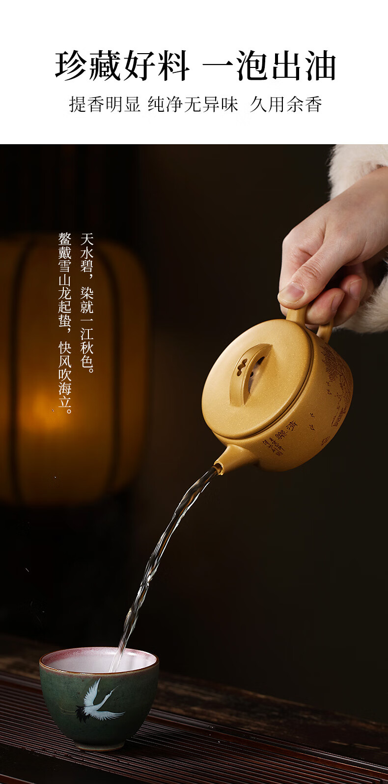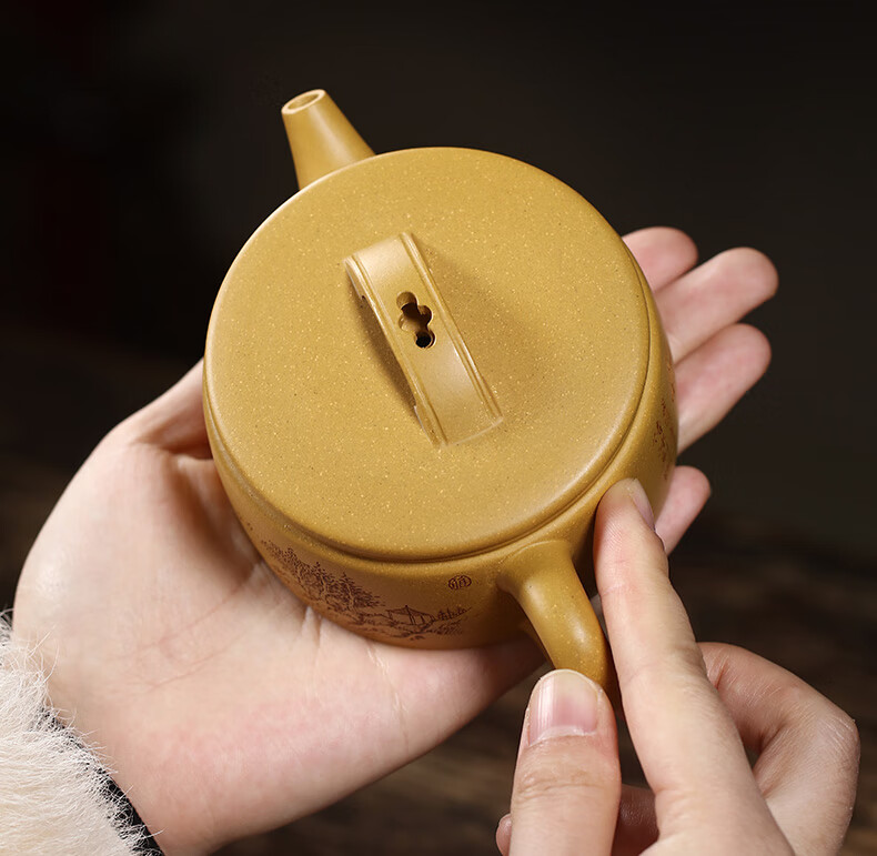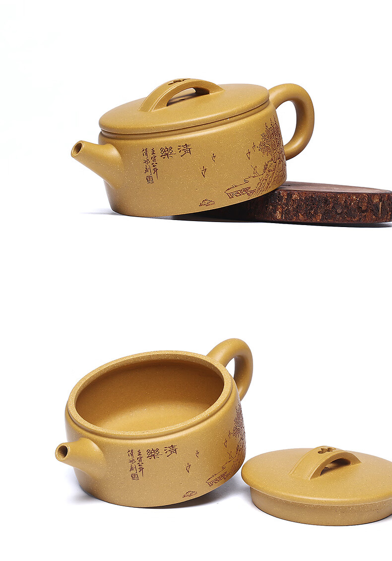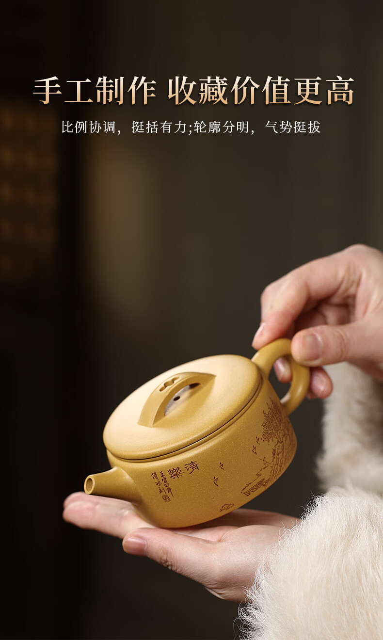 Zanghutianxia small capacity Yixing purple clay teapot pure hand carved Kung Fu tea set raw ore golden section mud teapot large mouth Han tile Han tile