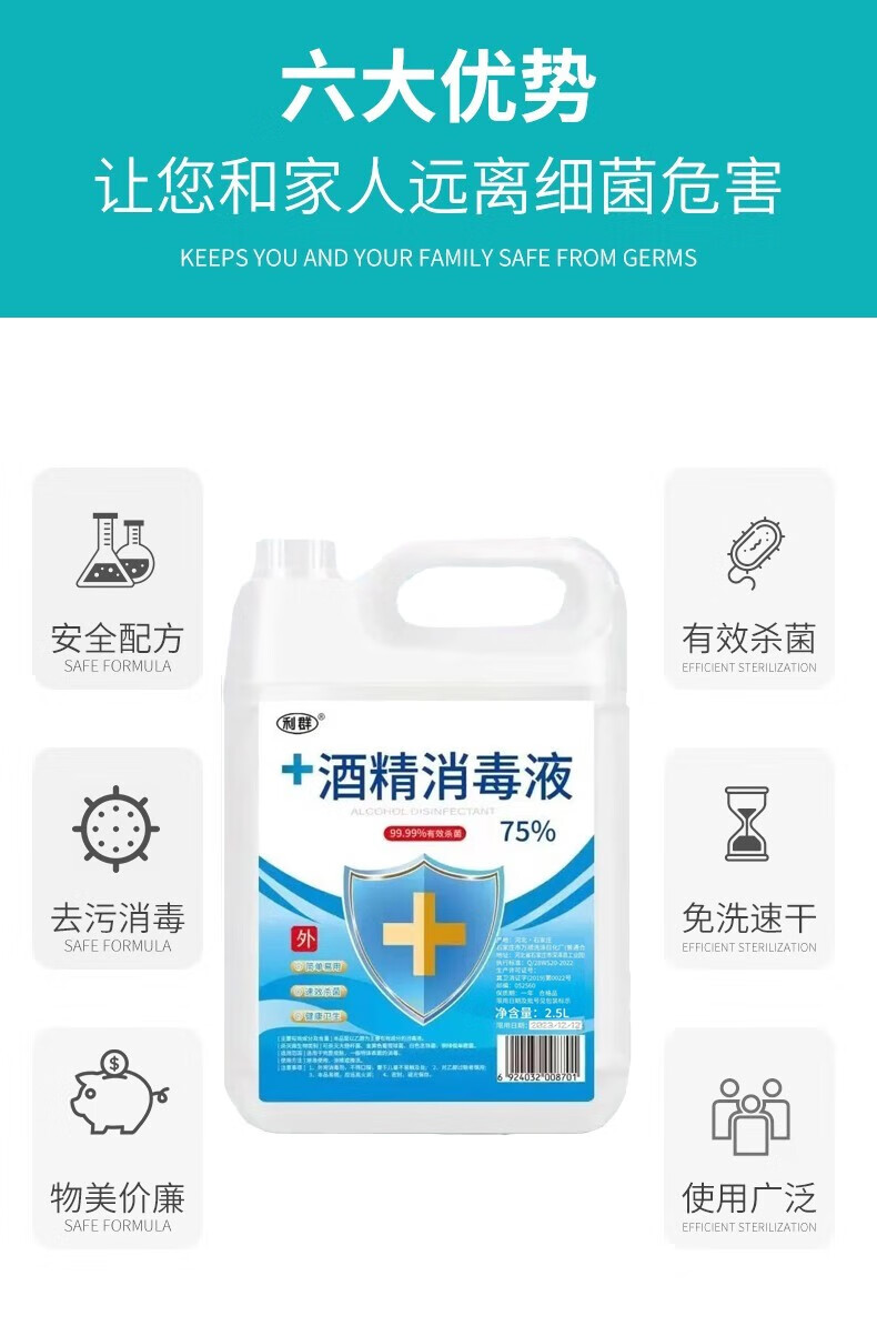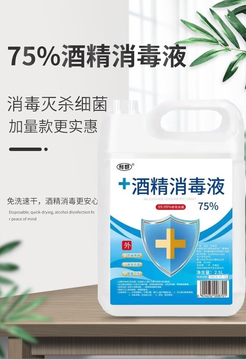 Liqun Alcohol Disinfectant 75 Degree Spray Disinfectant Indoor and Outdoor Sterilizing Spray No-Rinse Spray 75% Alcohol 2500ML