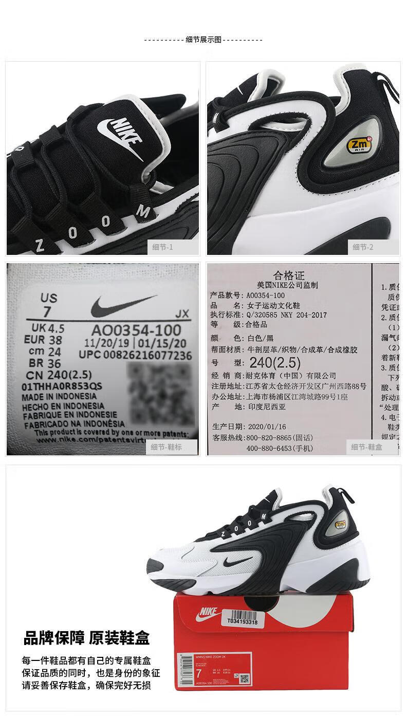Nike (NIKE) official women's shoes M2K TEKNO new winter dad shoes, comfortable, lightweight and breathable casual sports running shoes AO3108-001 38
