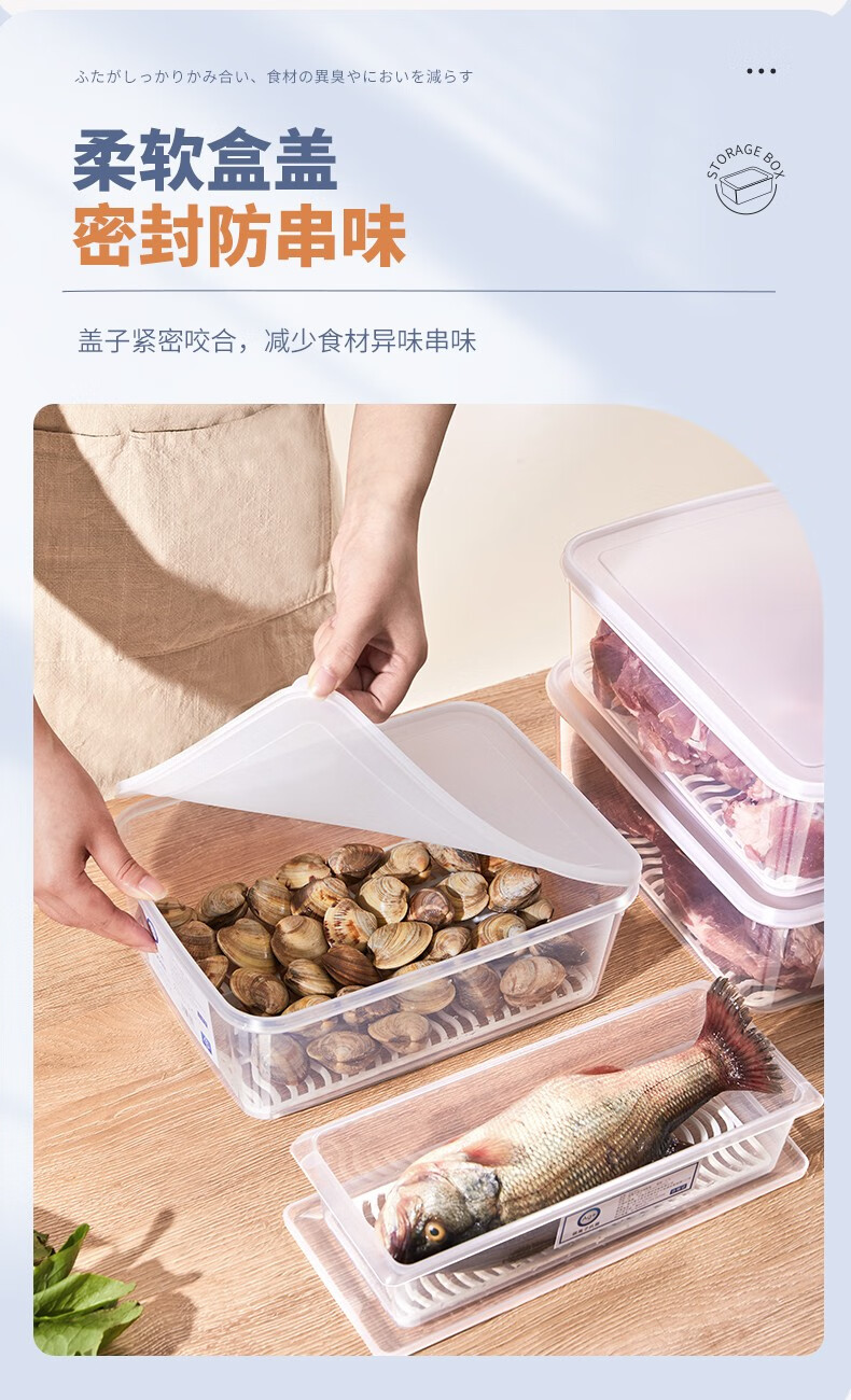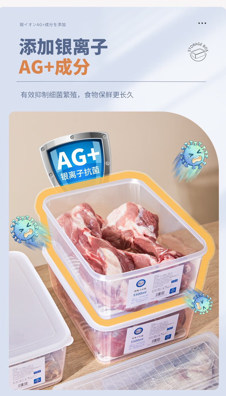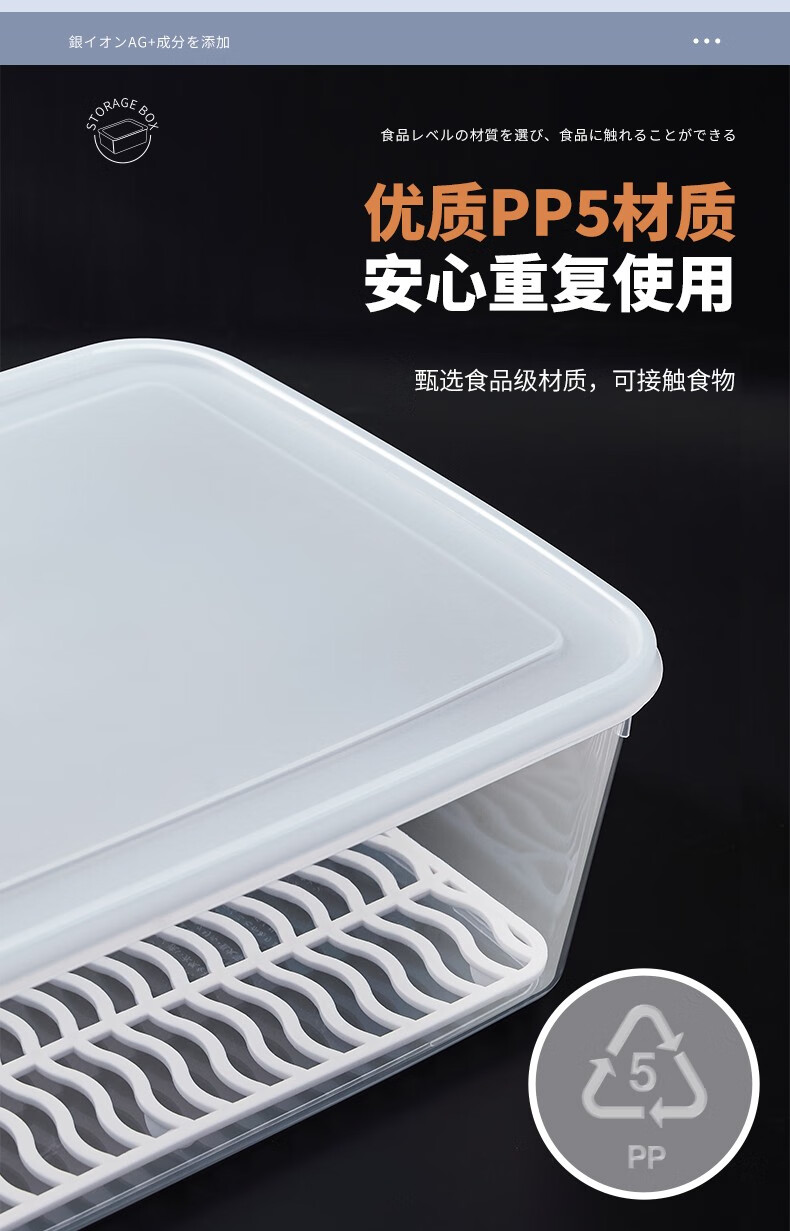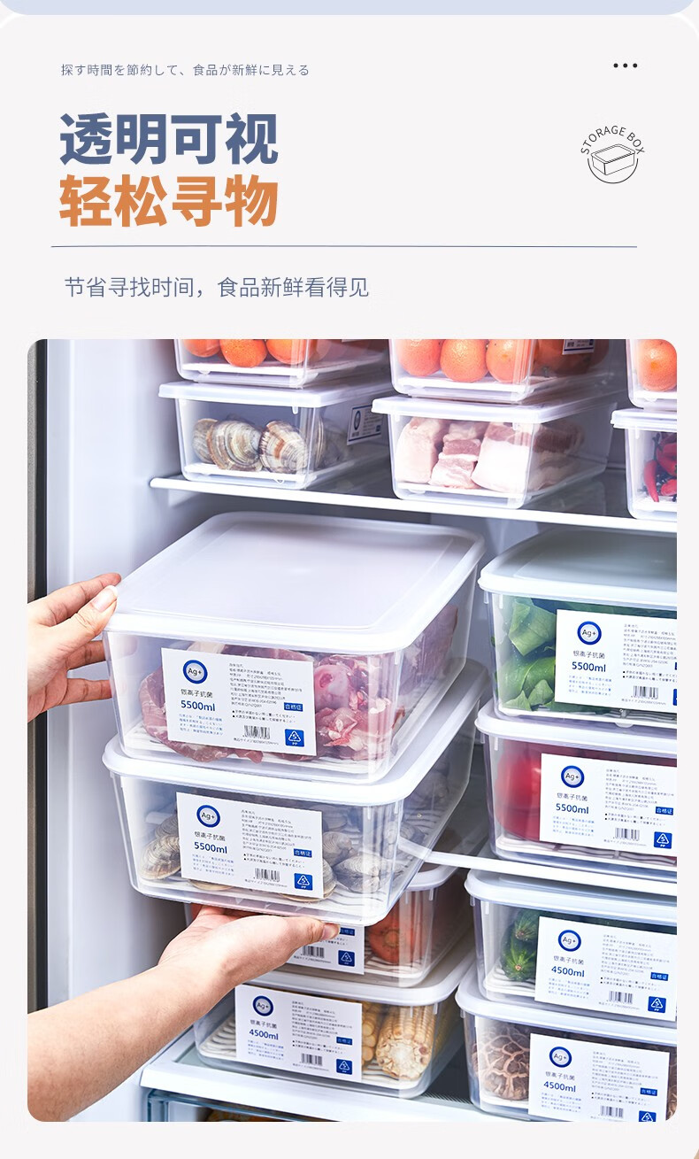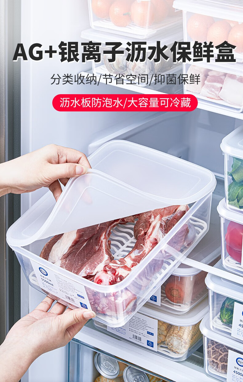 PAKCHOICE refrigerator storage box crisper box antibacterial grade food refrigeration freezer dumpling storage box freezer storage box silver ion antibacterial large size 5.5L*4 pieces