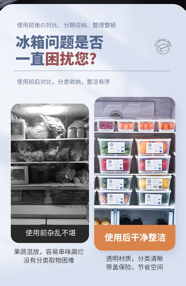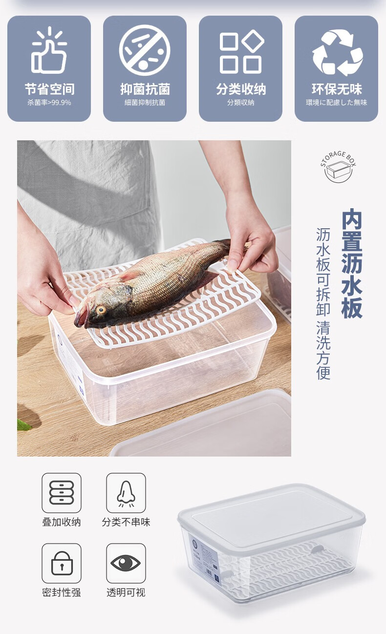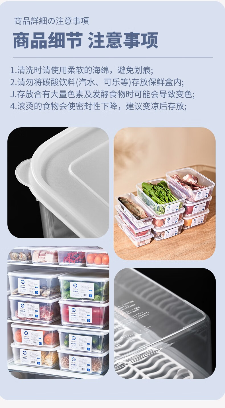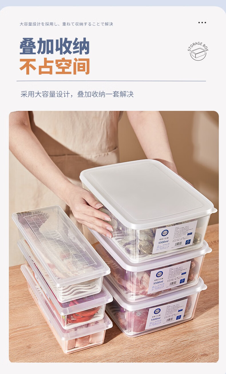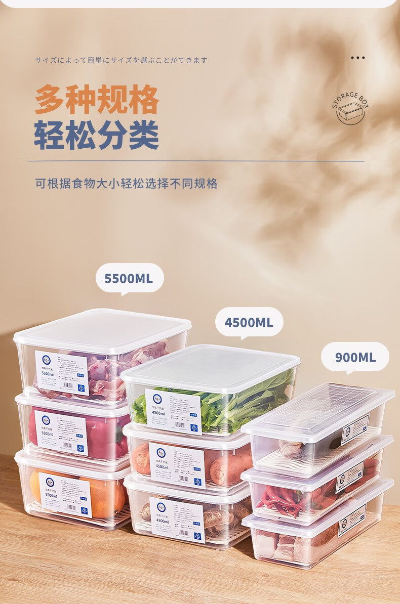 PAKCHOICE refrigerator storage box crisper box antibacterial grade food refrigeration freezer dumpling storage box freezer storage box silver ion antibacterial large size 5.5L*4 pieces
