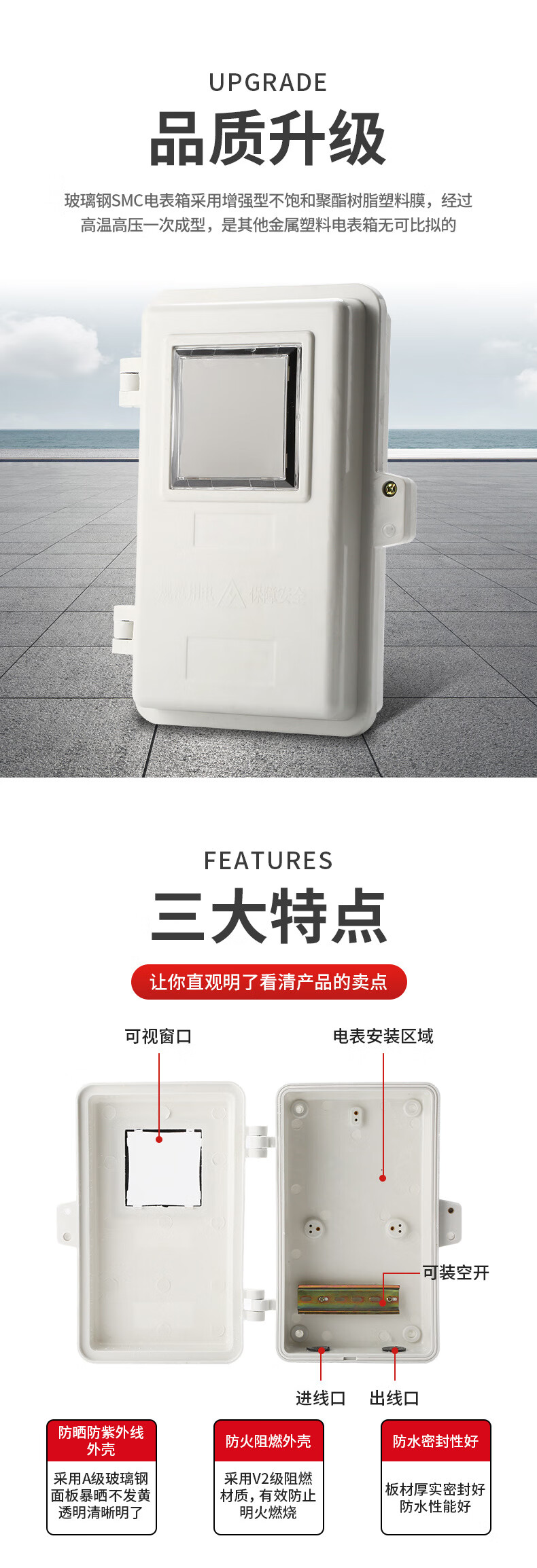 Fiberglass electric meter box single-phase flat door dustproof flame retardant anti-theft electricity distribution box one household with air switch