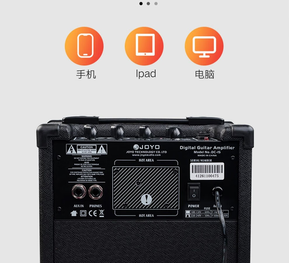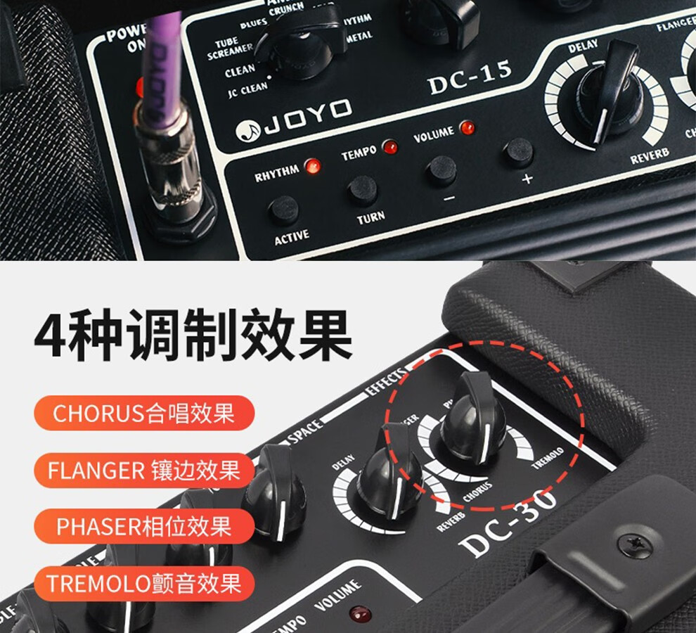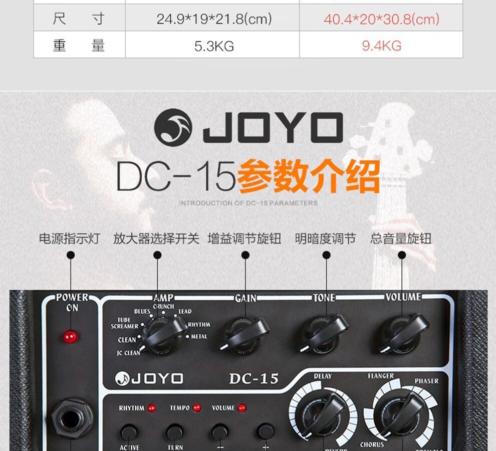 JOYO Electric Guitar Speaker Box Portable Drum Machine Effects Practice Playing Folk Singing Audio DC-15 Fully Digital Speaker + 3 Meters Wire Gift Pack