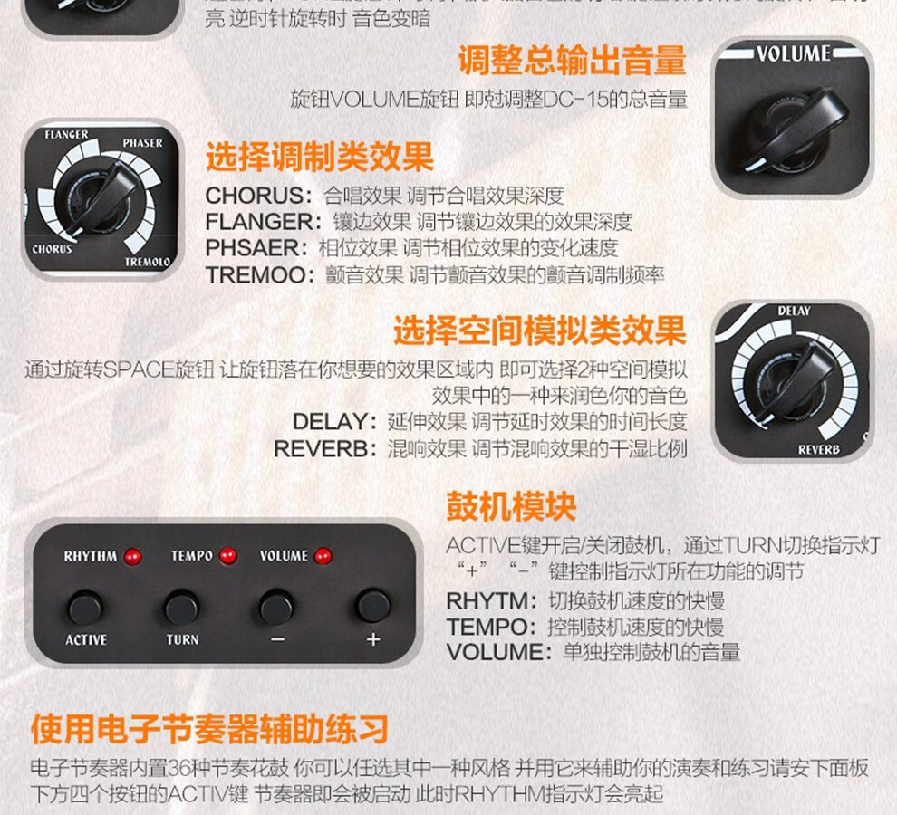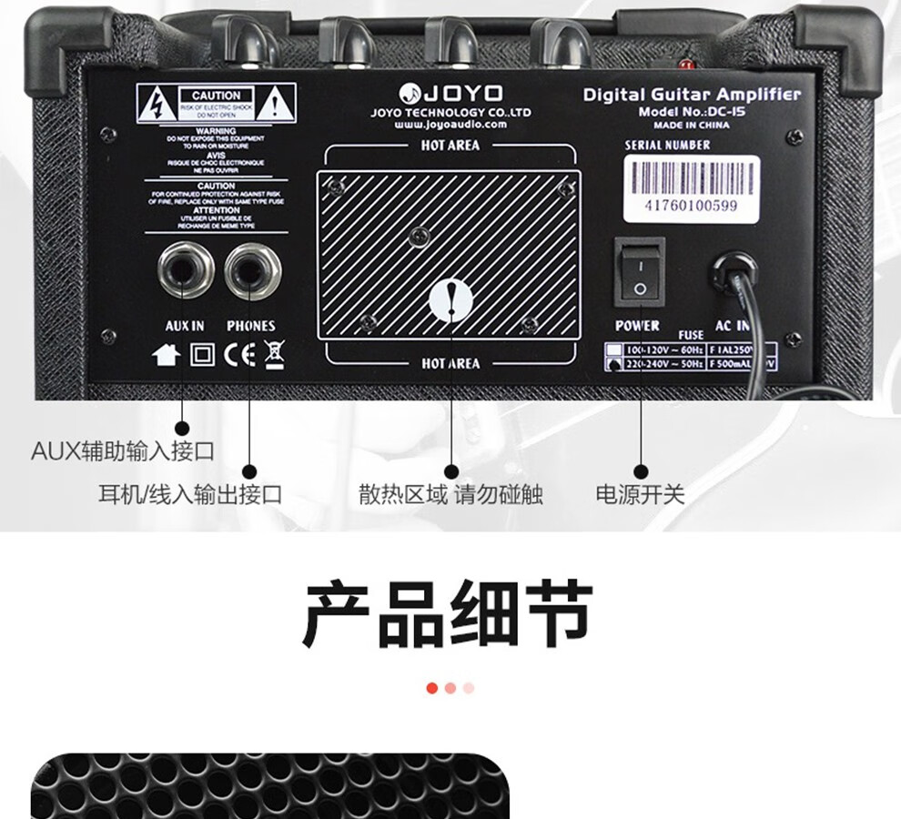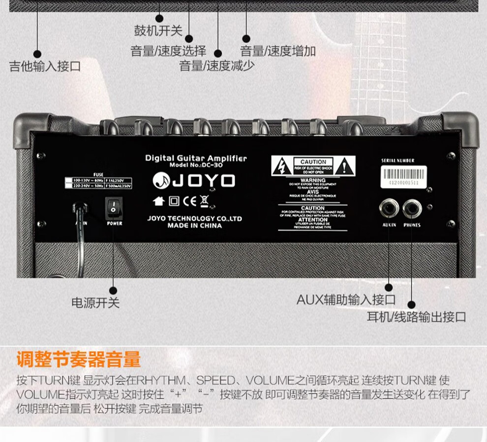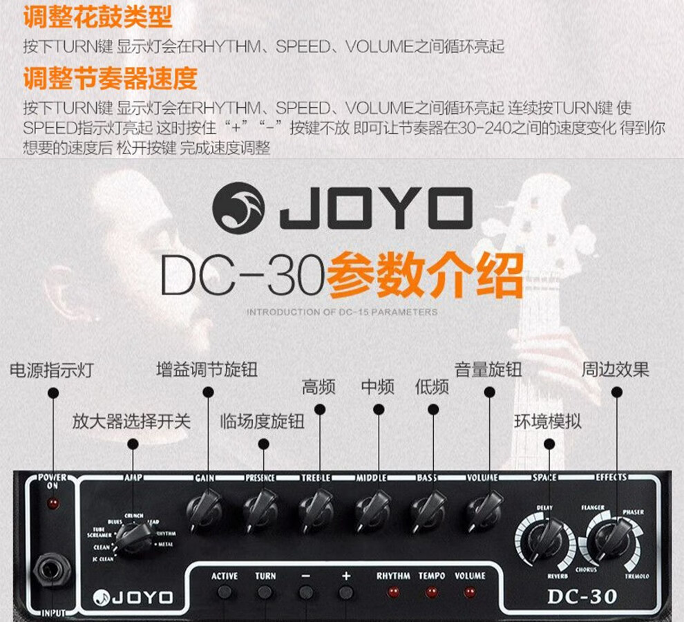 JOYO Electric Guitar Speaker Box Portable Drum Machine Effects Practice Playing Folk Singing Audio DC-15 Fully Digital Speaker + 3 Meters Wire Gift Pack