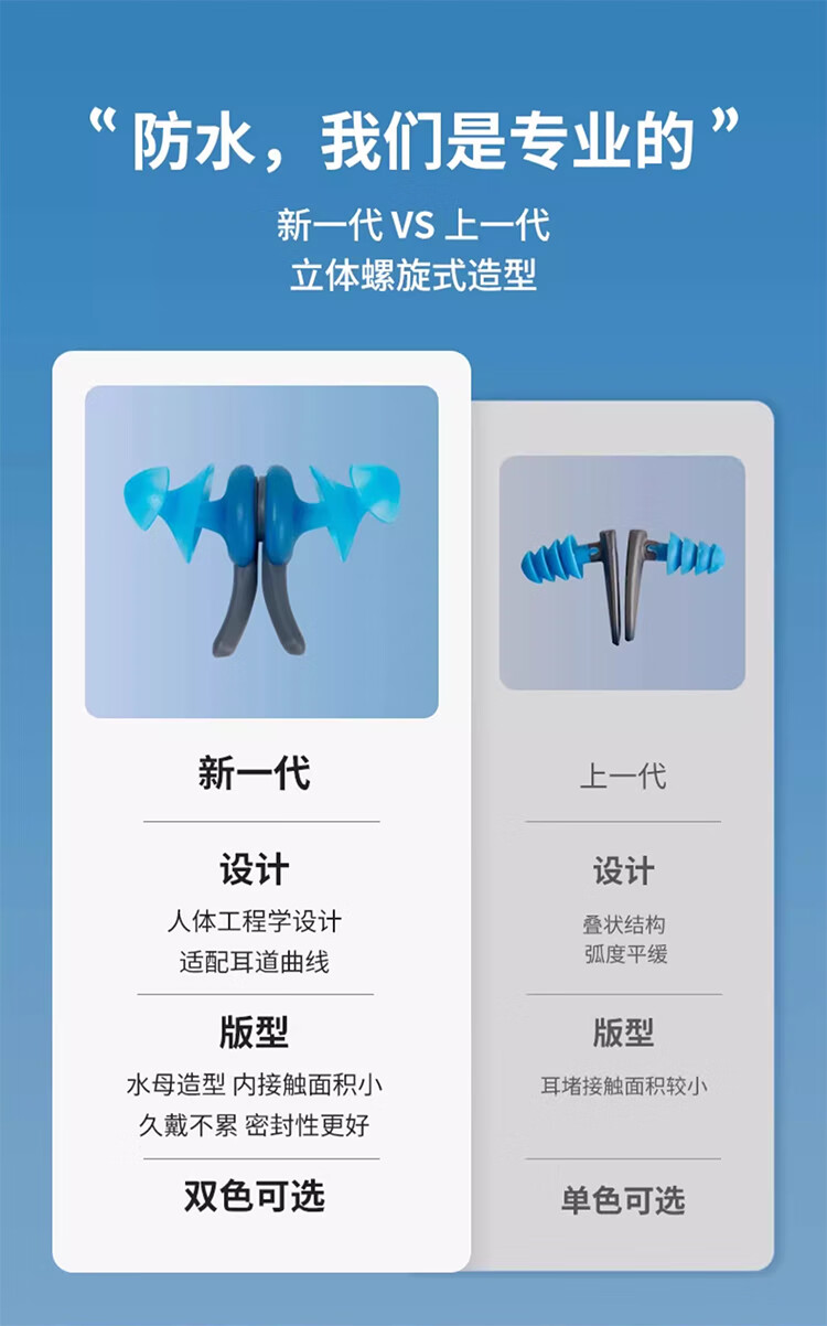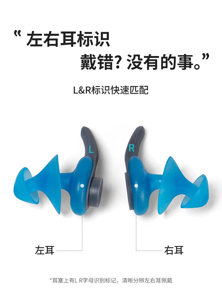 Speedo's new Biofuse earplugs, swimming earplugs, spiral design, sealed, waterproof, comfortable and soft equipment, charcoal gray/pool blue