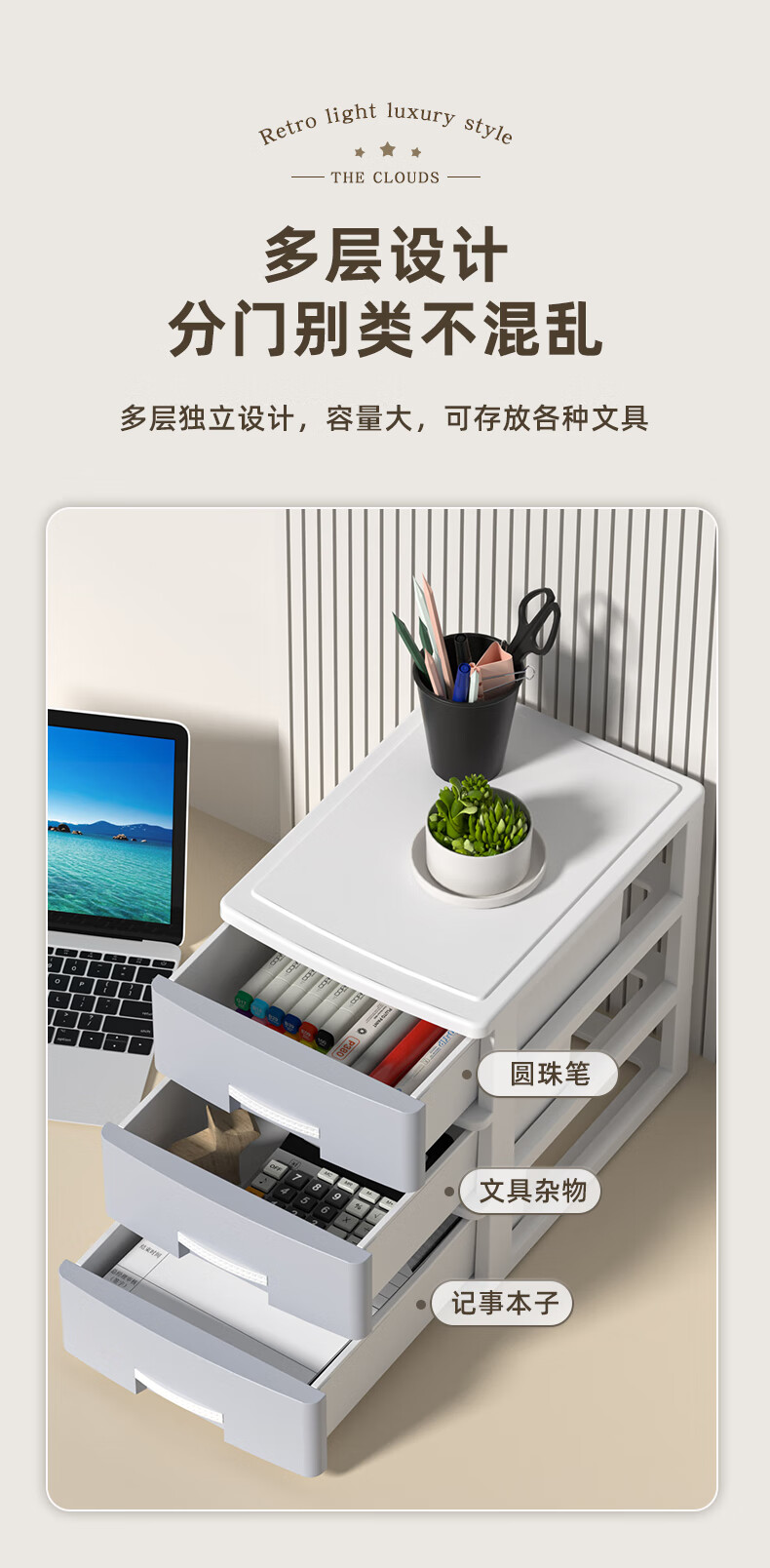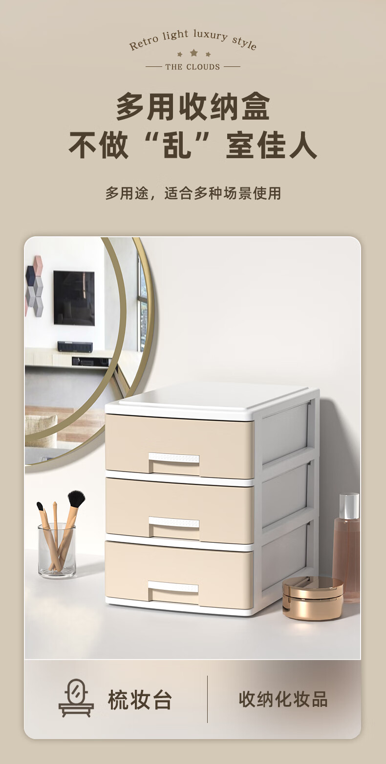Desktop storage box drawer-type student desk office file a4 storage rack sundries bedroom cosmetics storage cabinet large 4-layer/khaki