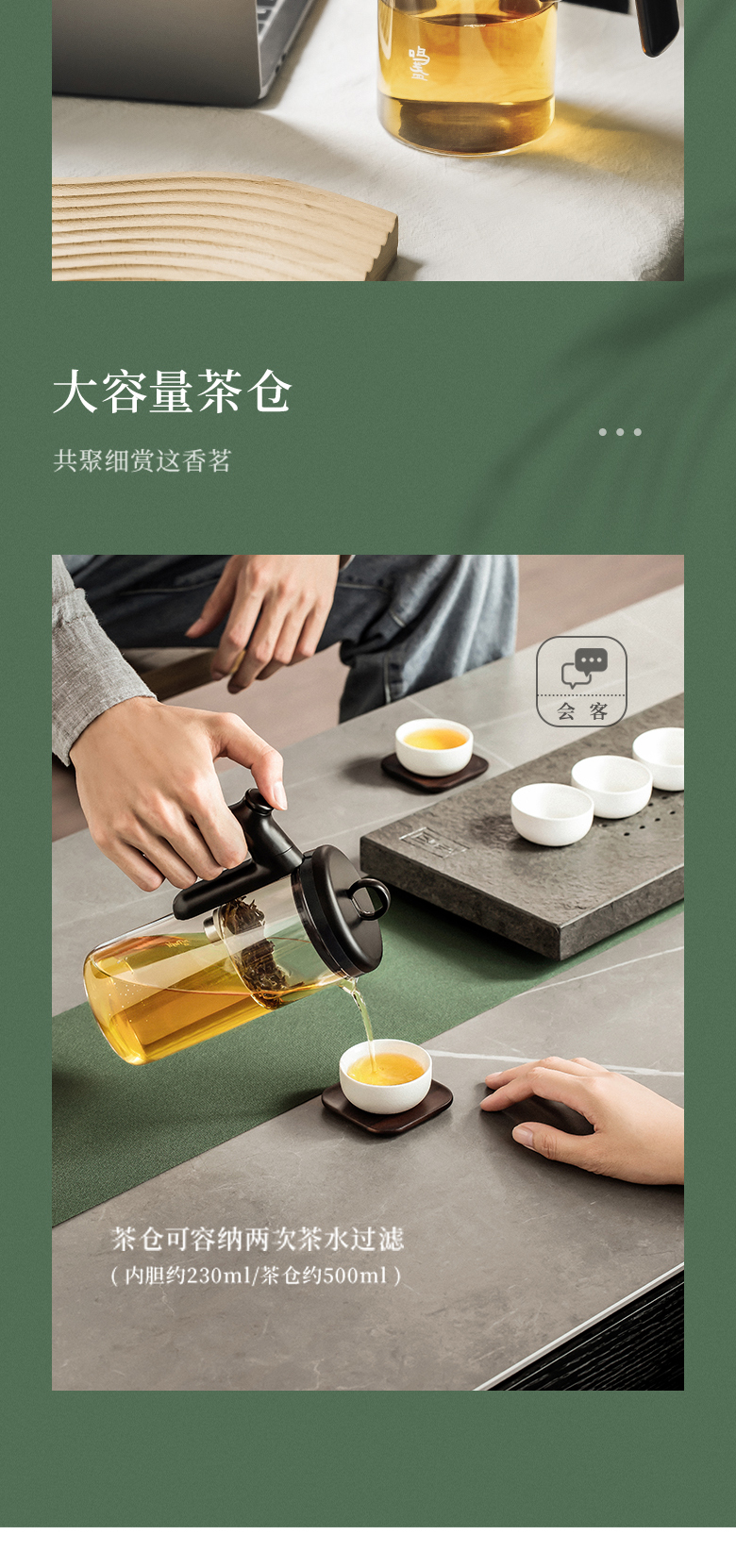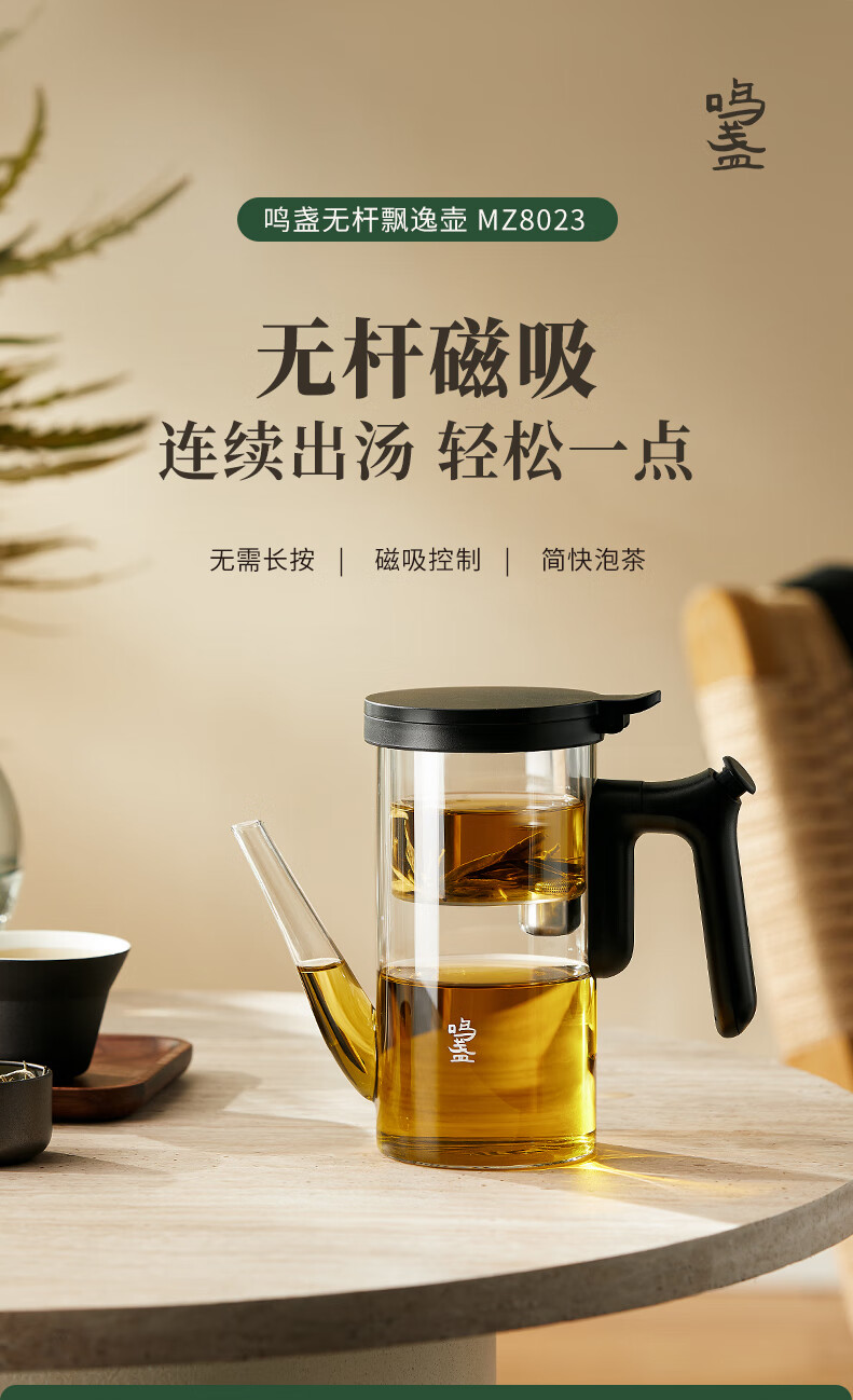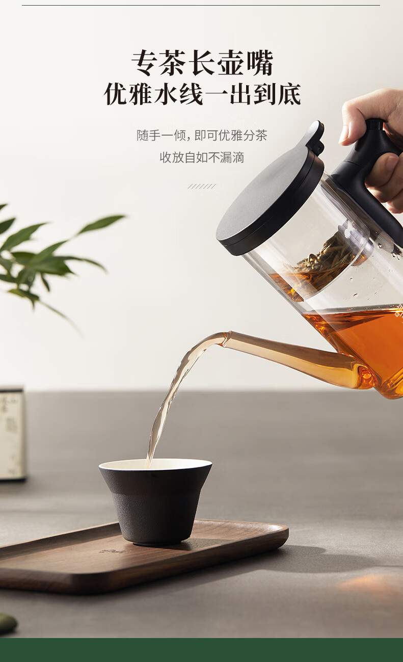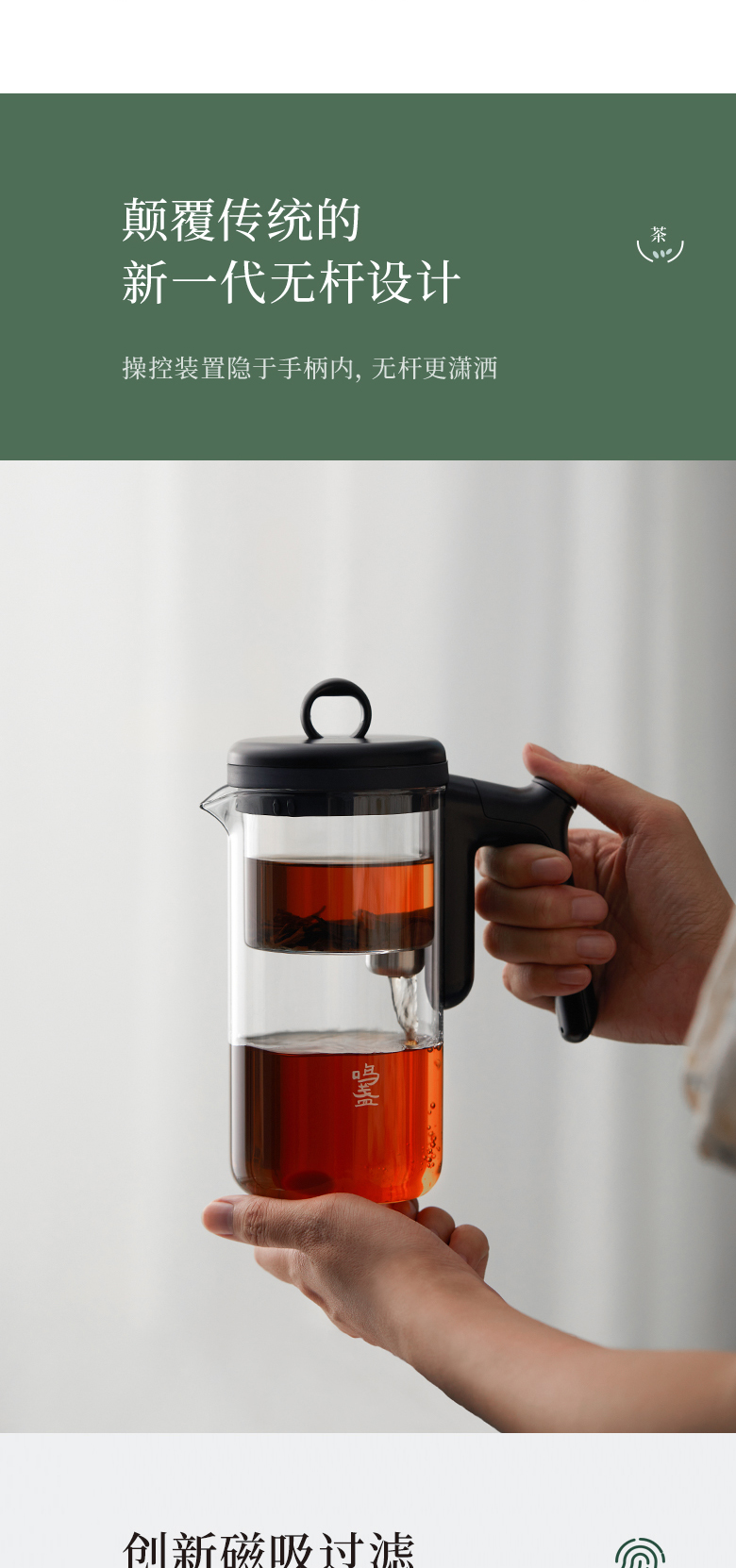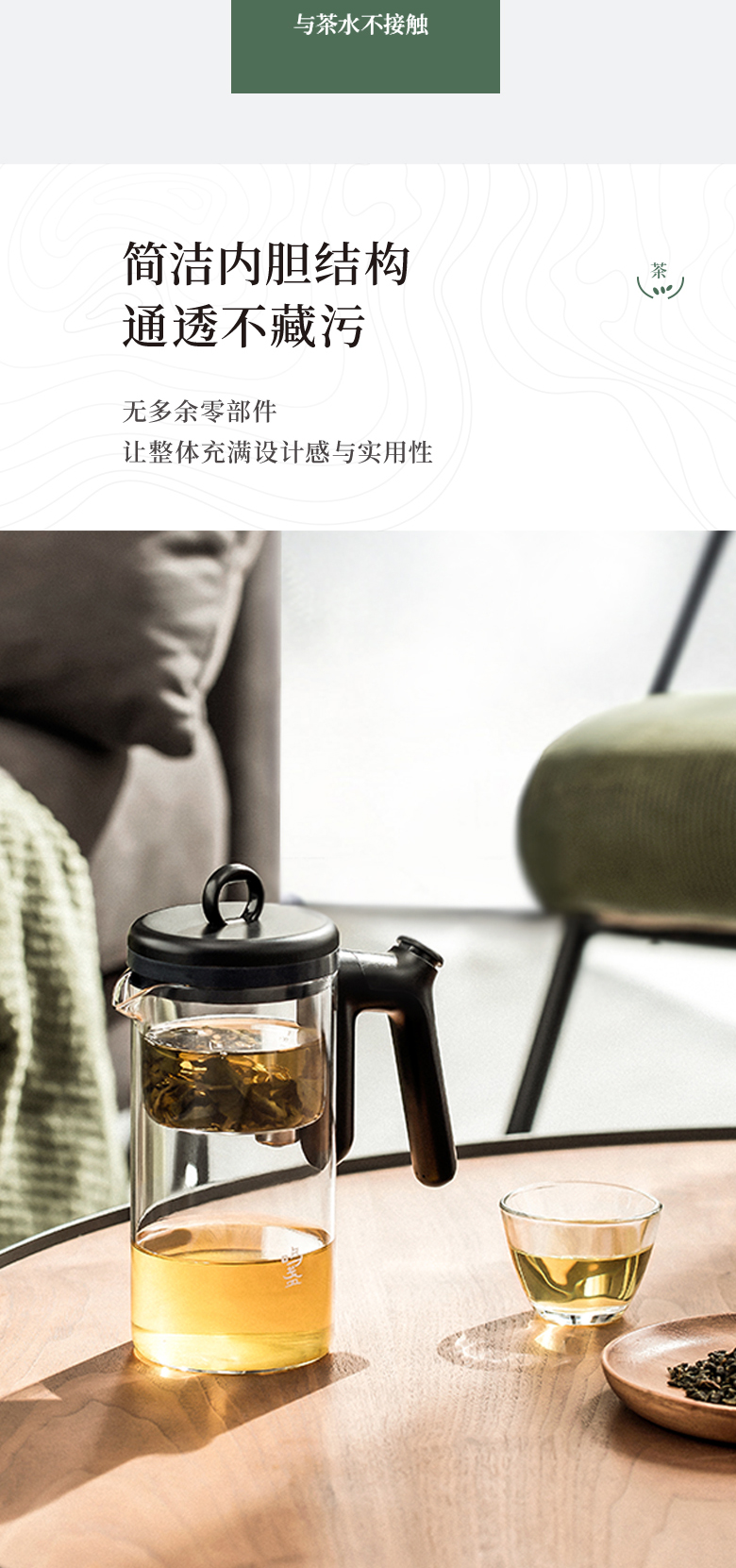 Mingzhan Elegant Pot Glass Teapot Kung Fu Tea Set Glass Liner Press-type Rodless Filter Teapot Elegant Cup MZ8023 (Long Mouth Pot Style) 500ml