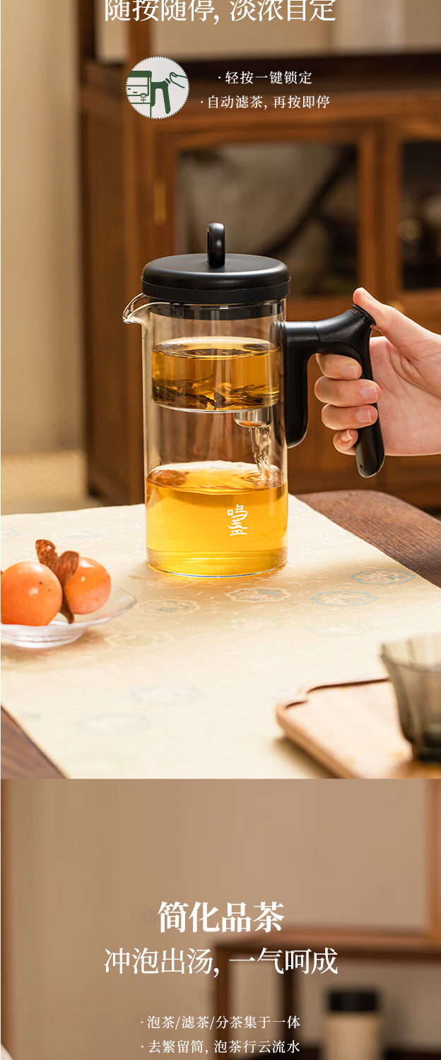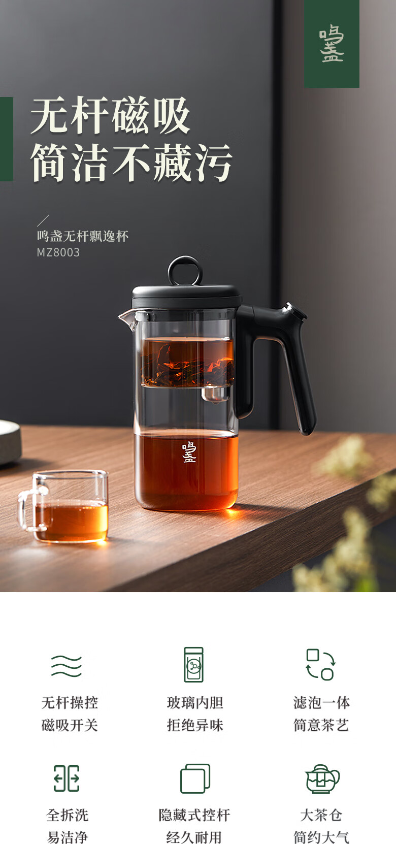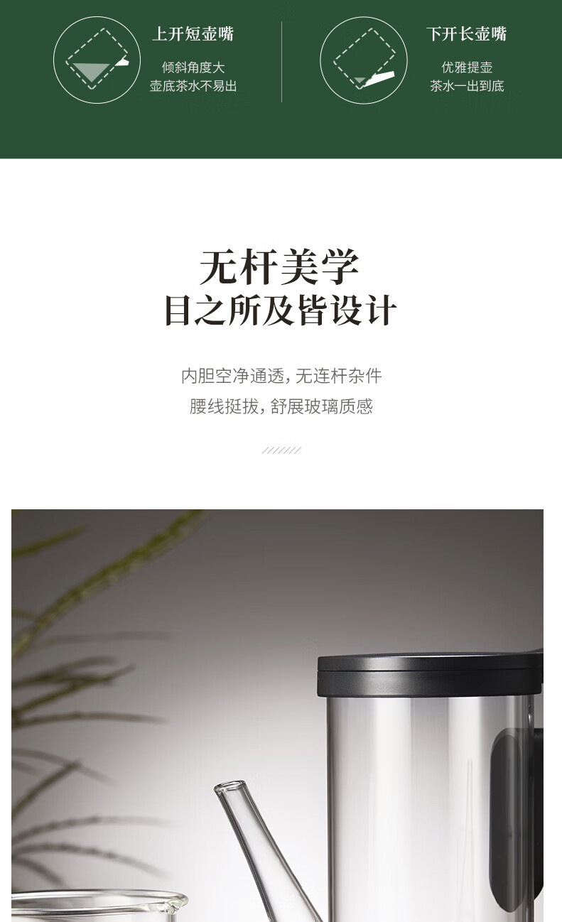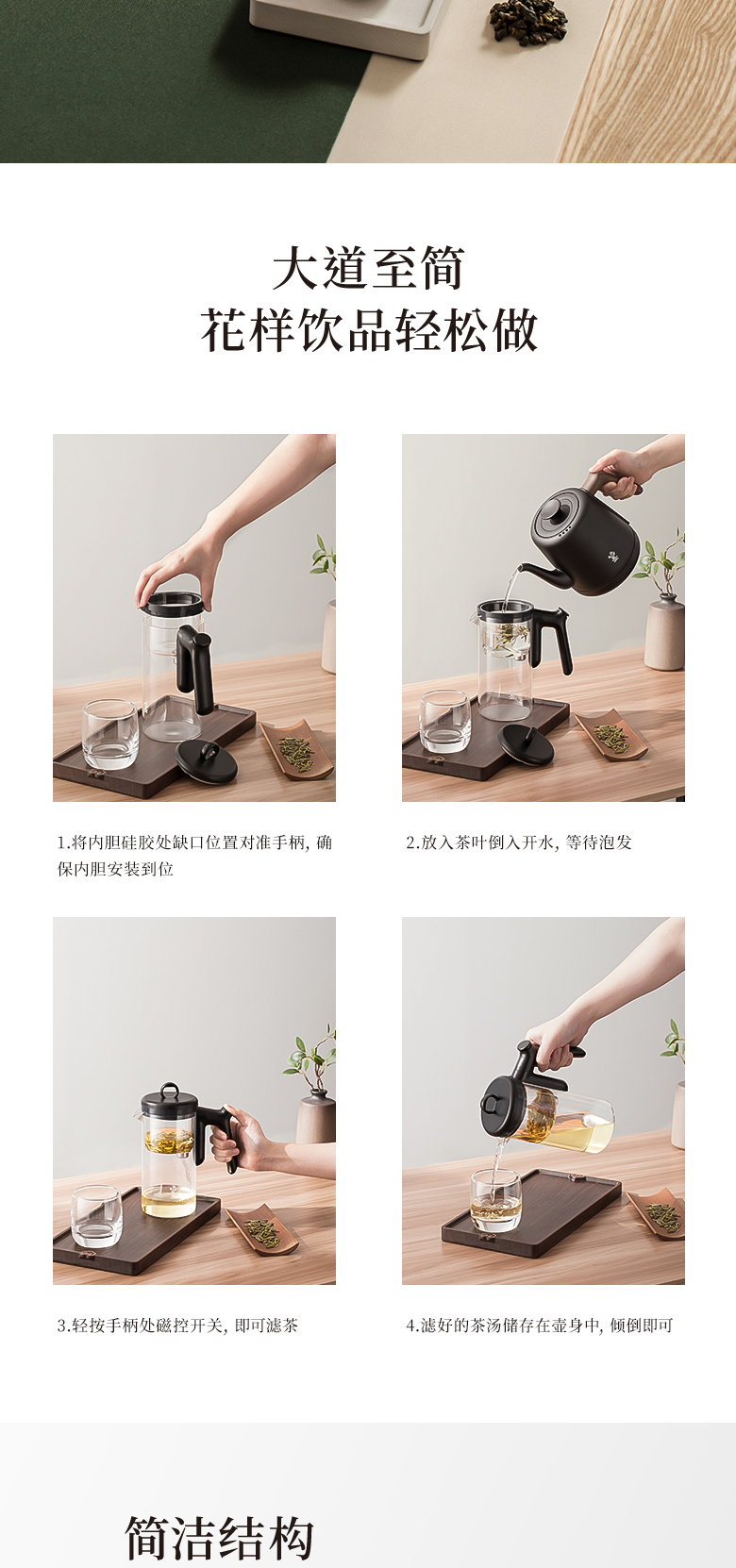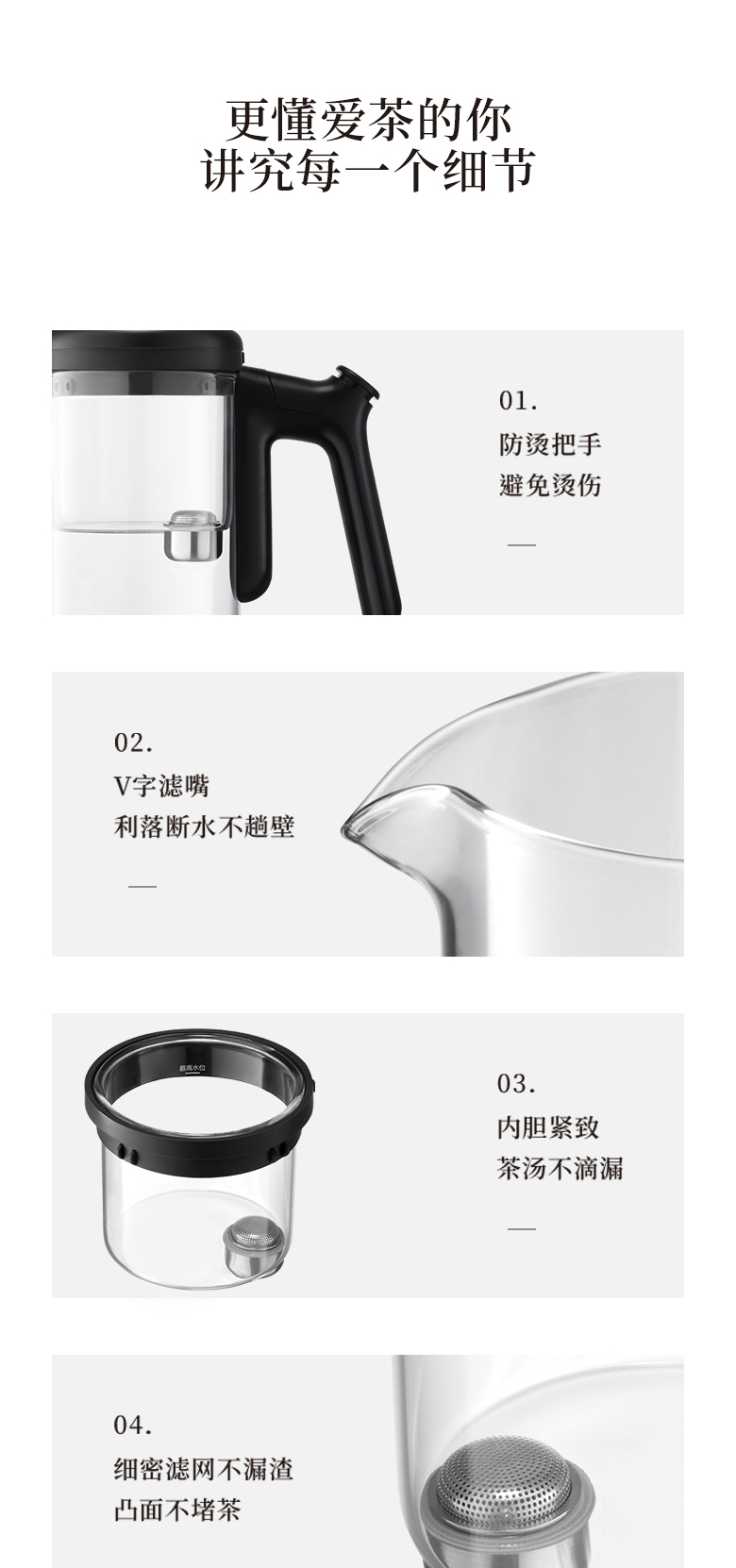 Mingzhan Elegant Pot Glass Teapot Kung Fu Tea Set Glass Liner Press-type Rodless Filter Teapot Elegant Cup MZ8023 (Long Mouth Pot Style) 500ml