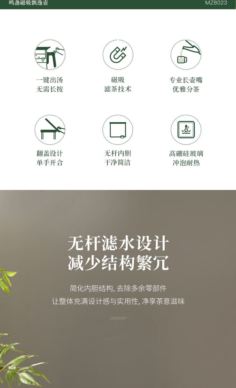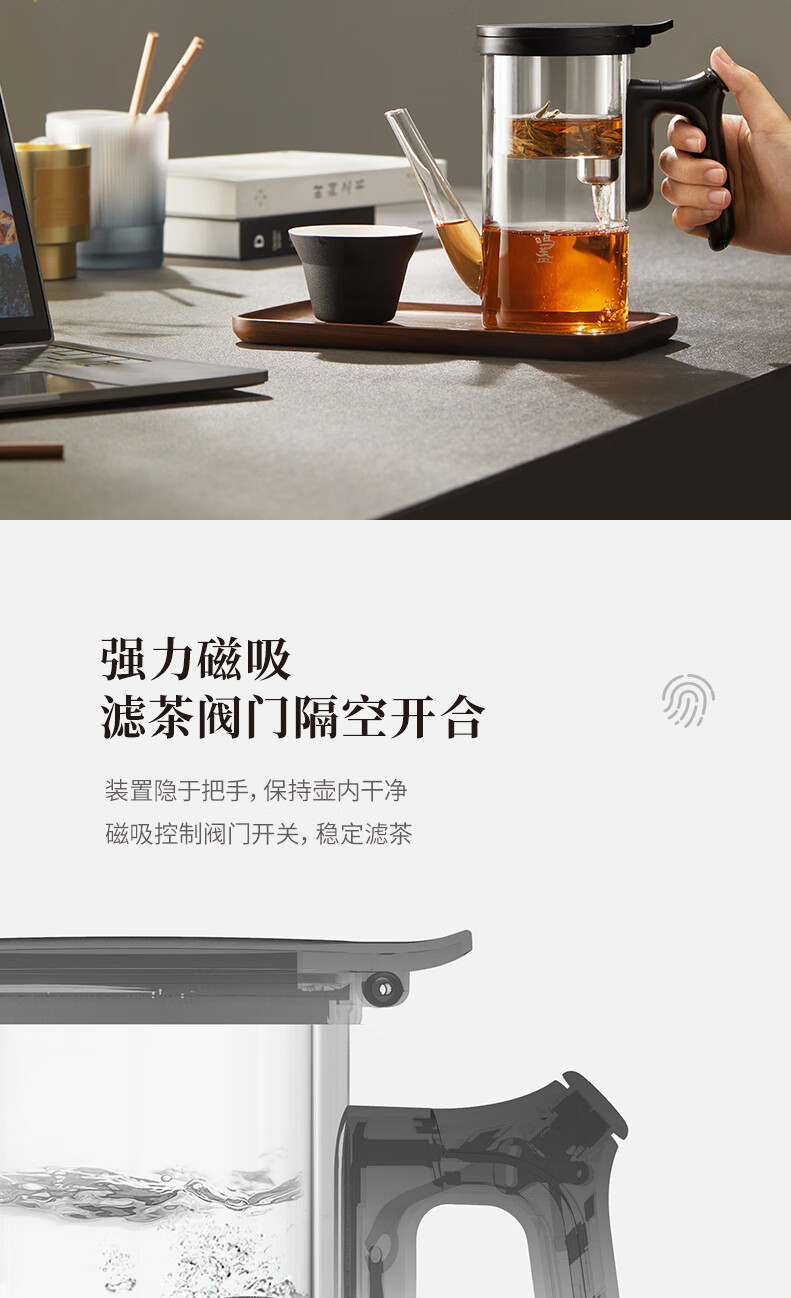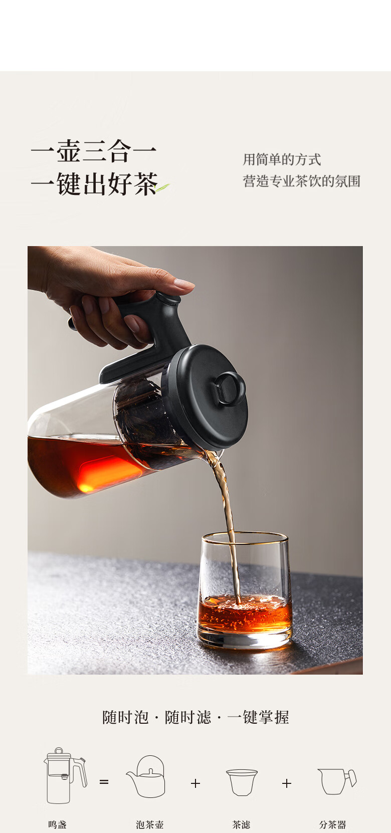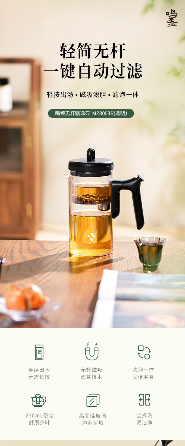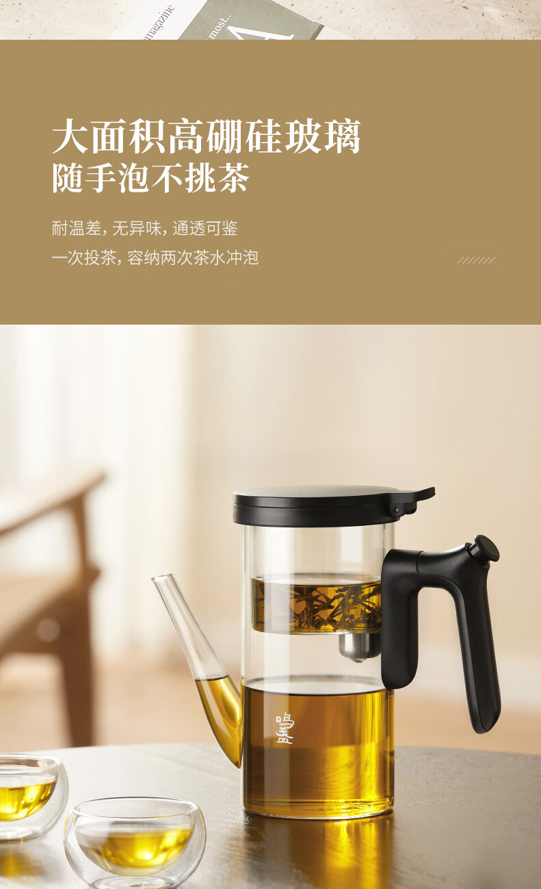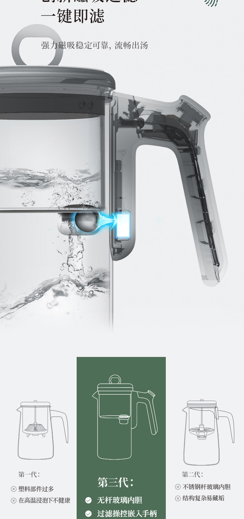 Mingzhan Elegant Pot Glass Teapot Kung Fu Tea Set Glass Liner Press-type Rodless Filter Teapot Elegant Cup MZ8023 (Long Mouth Pot Style) 500ml