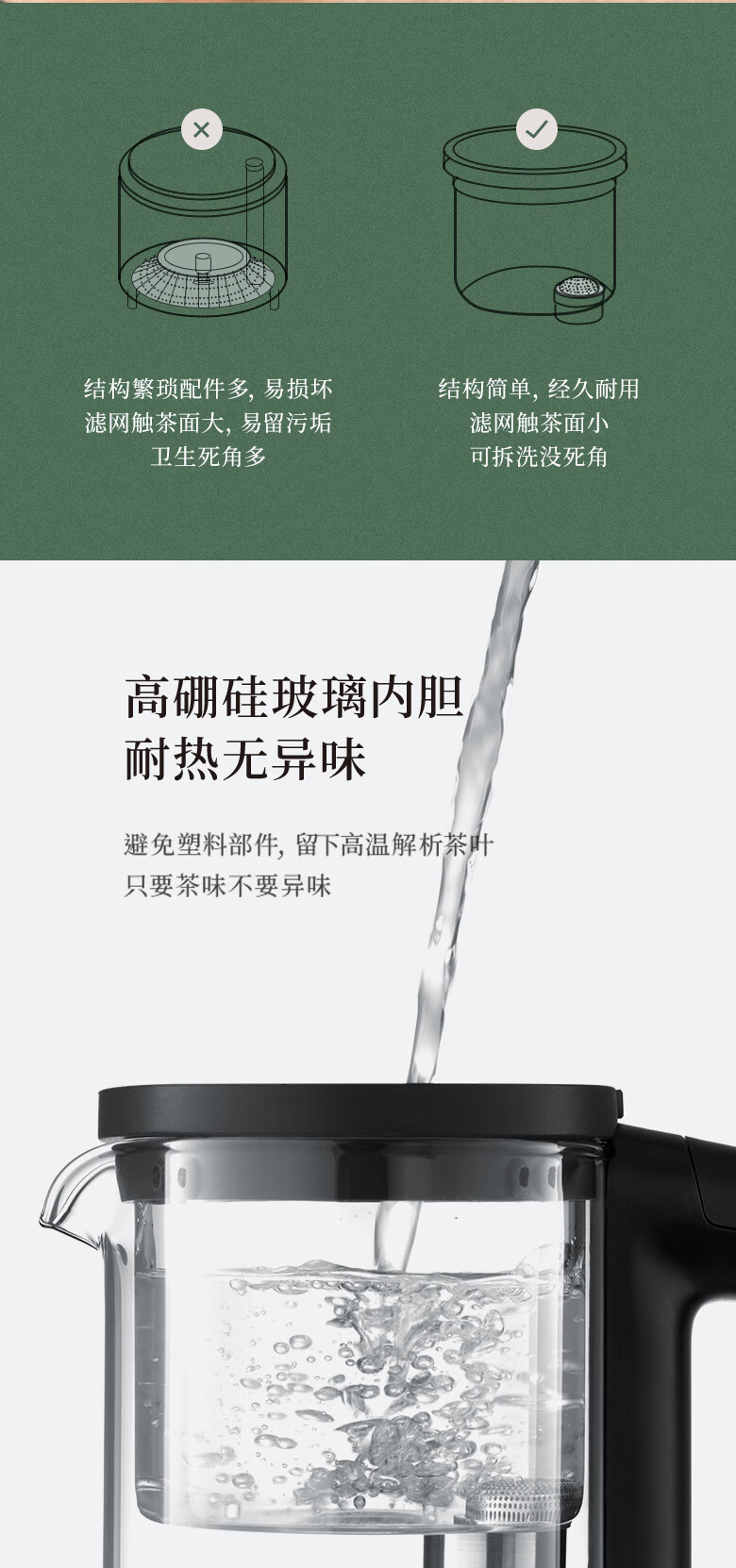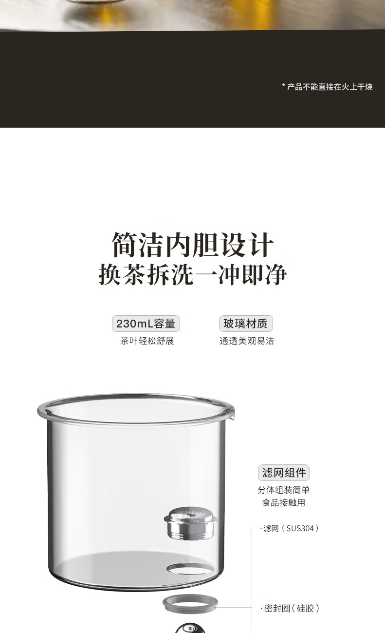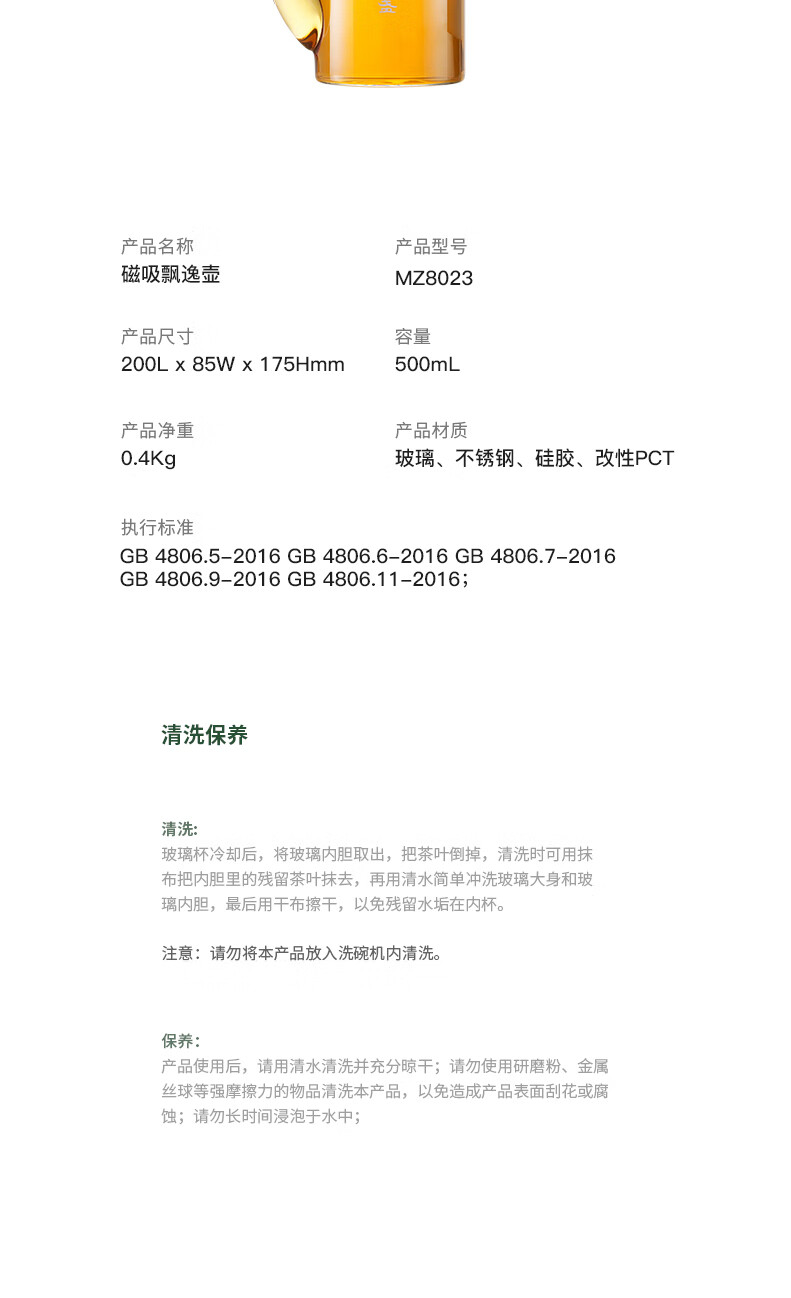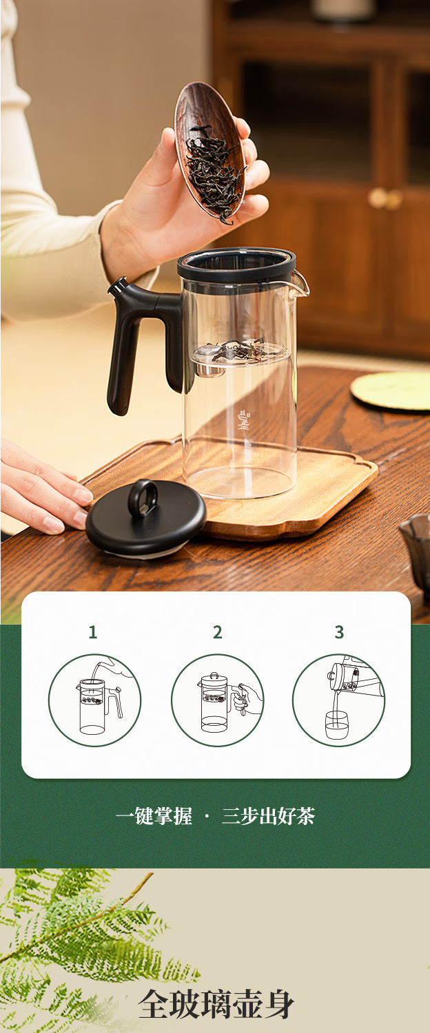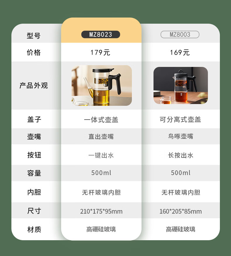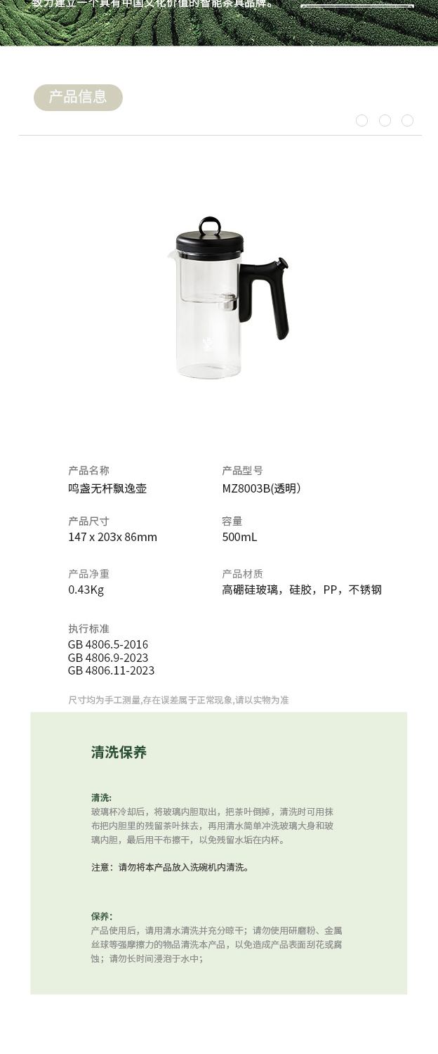 Mingzhan Elegant Pot Glass Teapot Kung Fu Tea Set Glass Liner Press-type Rodless Filter Teapot Elegant Cup MZ8023 (Long Mouth Pot Style) 500ml