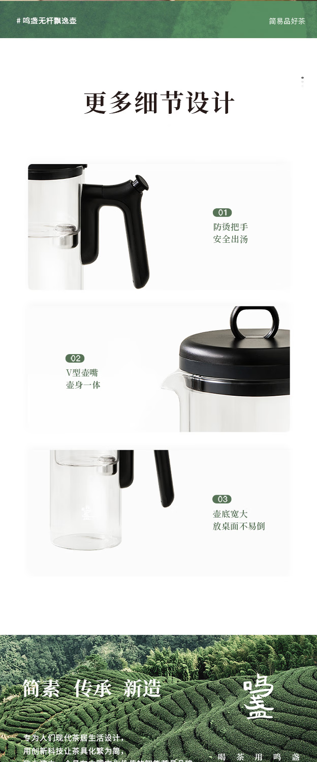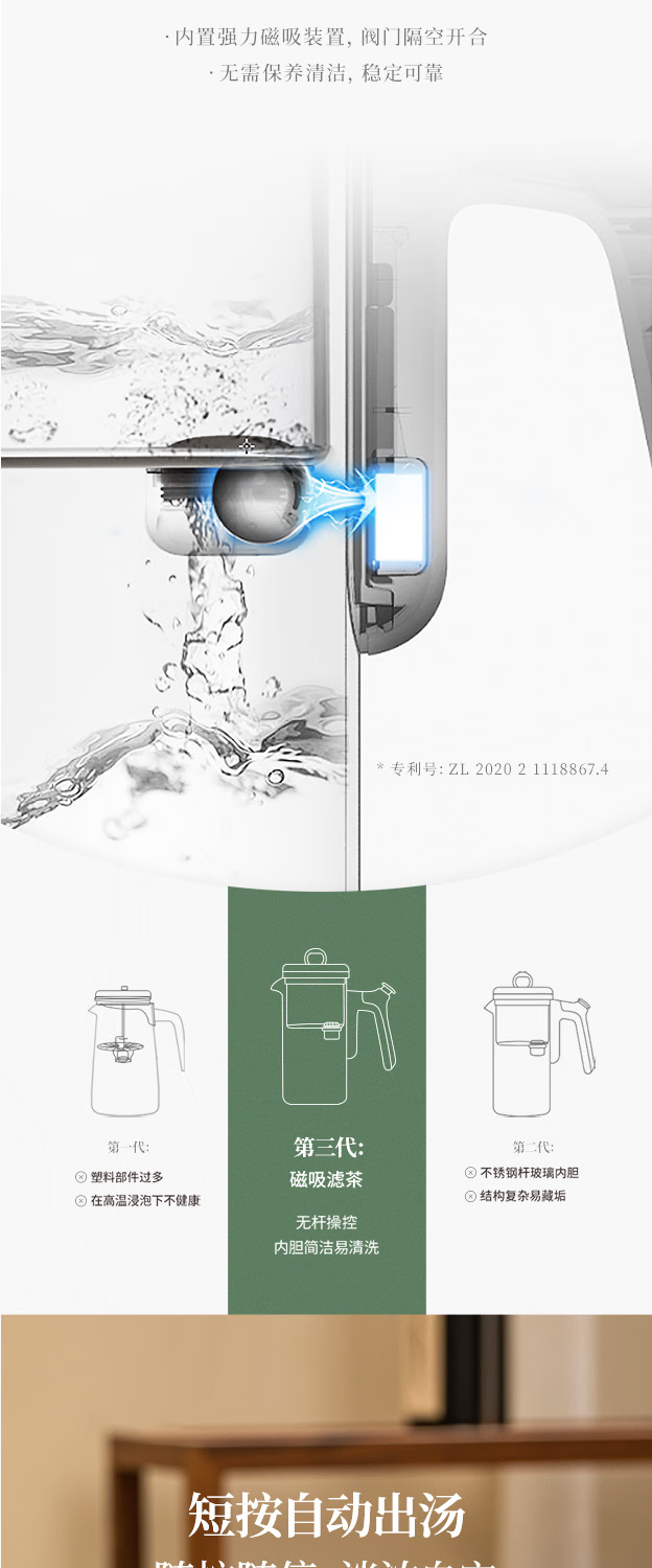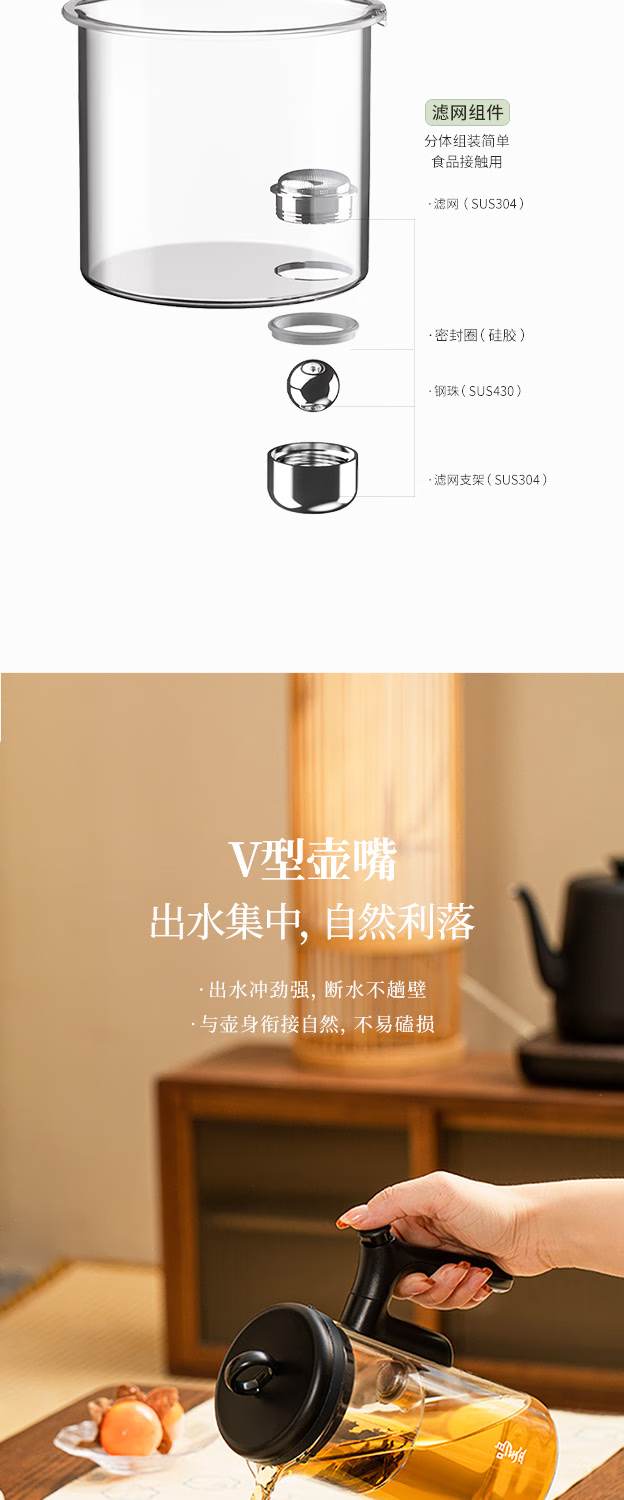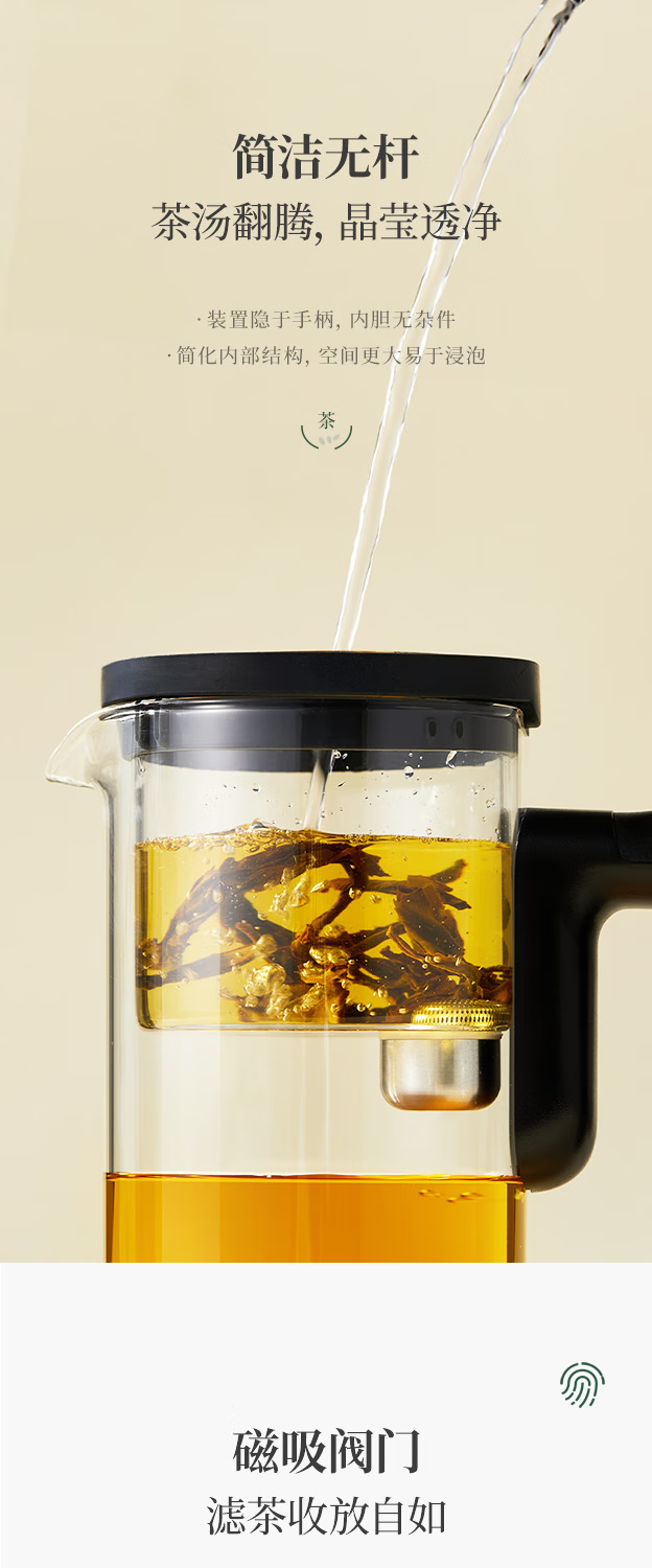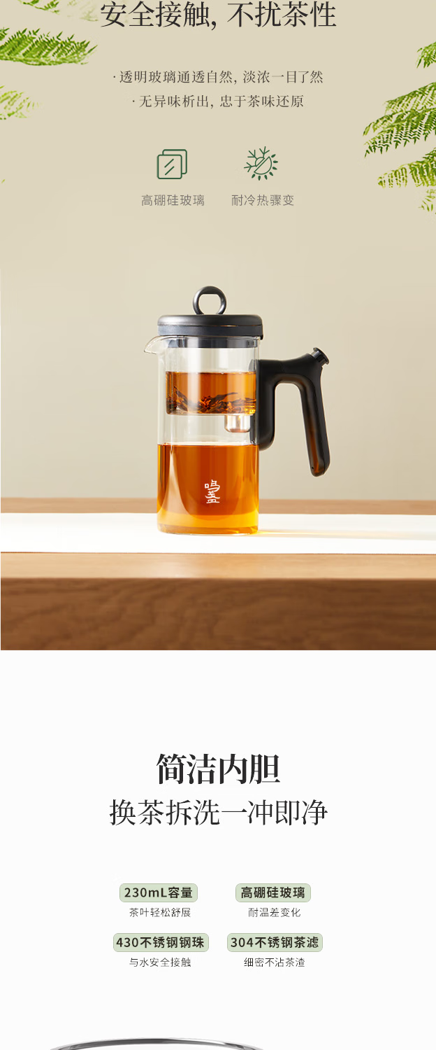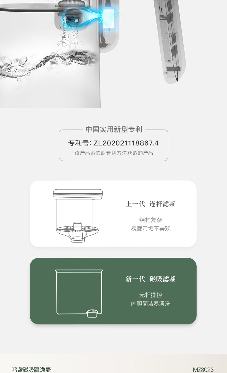 Mingzhan Elegant Pot Glass Teapot Kung Fu Tea Set Glass Liner Press-type Rodless Filter Teapot Elegant Cup MZ8023 (Long Mouth Pot Style) 500ml
