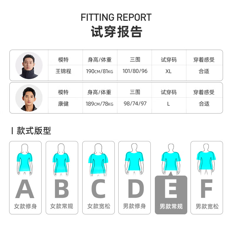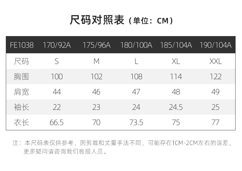 China (cm) 165 / 88-90 170 / 96-98 175 / 108-110 180 / 118-122 185 / 126-130