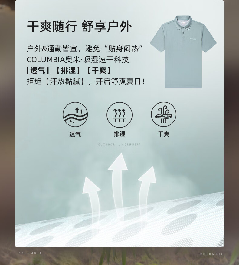 Columbia outdoor spring and summer men's fishing series moisture-absorbent and quick-drying sports short-sleeved POLO shirt FE1038 469 XL (185/104A)