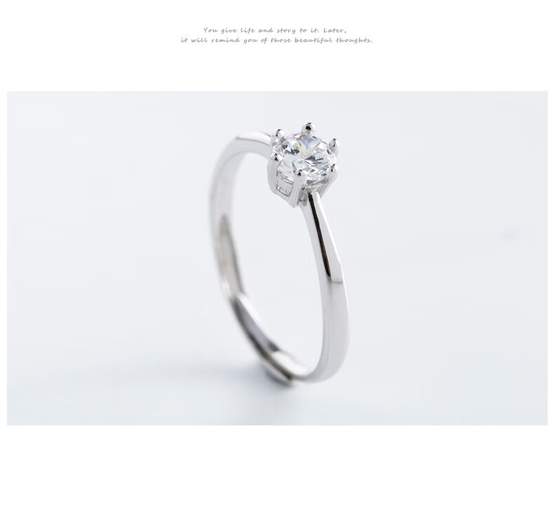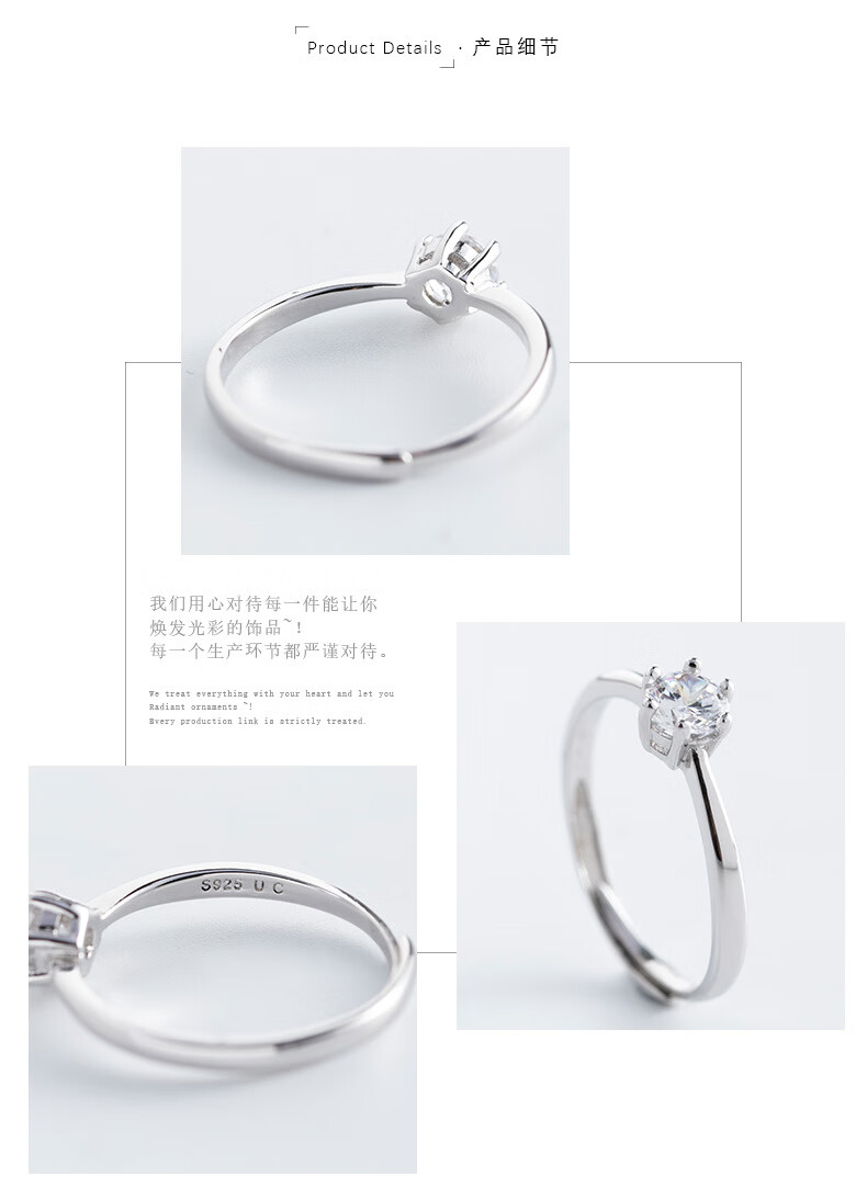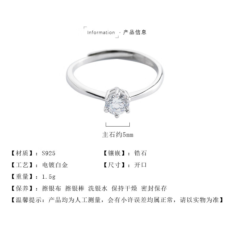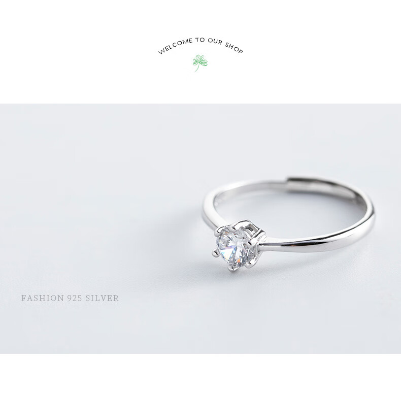 Bucklele Six Claw Diamond Ring Women's S925 Silver Ring Fashion Gift Moissanite Wedding Ring C045 (Zircon) Opening Adjustable