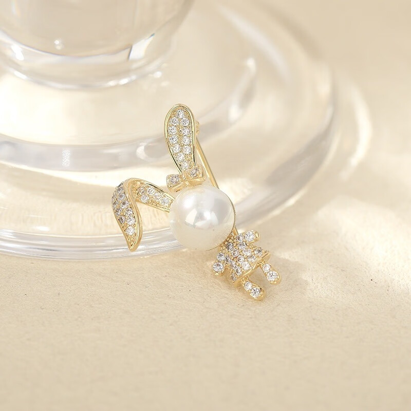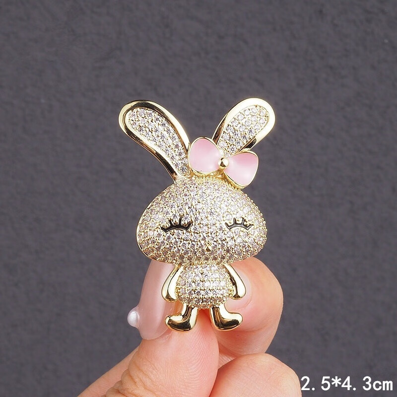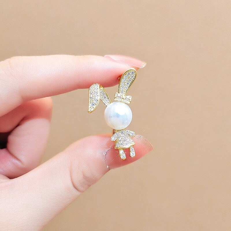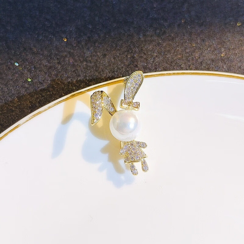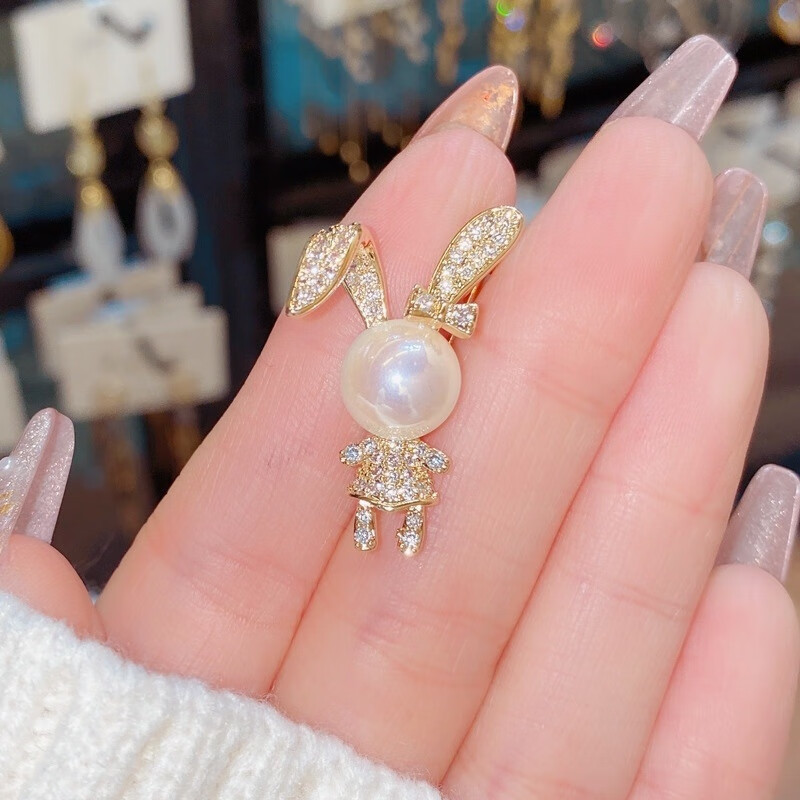 Lan Boli 2022 new trendy and cute rabbit brooch Japanese pearl brooch neckline anti-exposure cardigan brooch brooch full of diamond rabbit