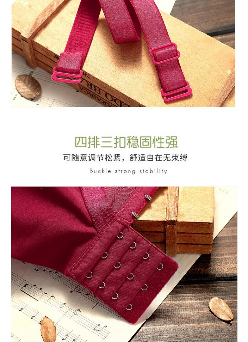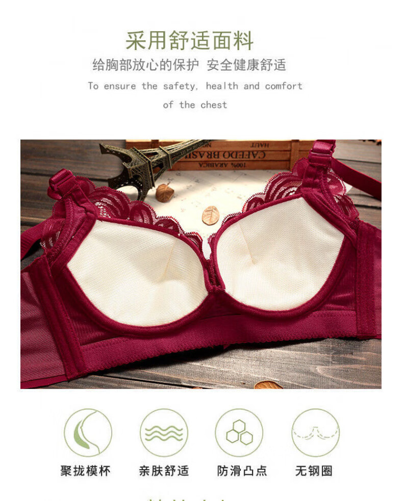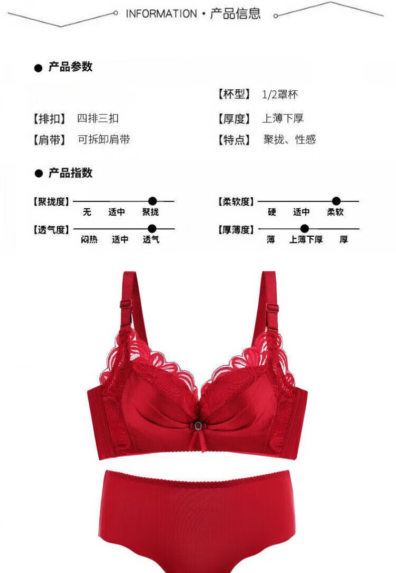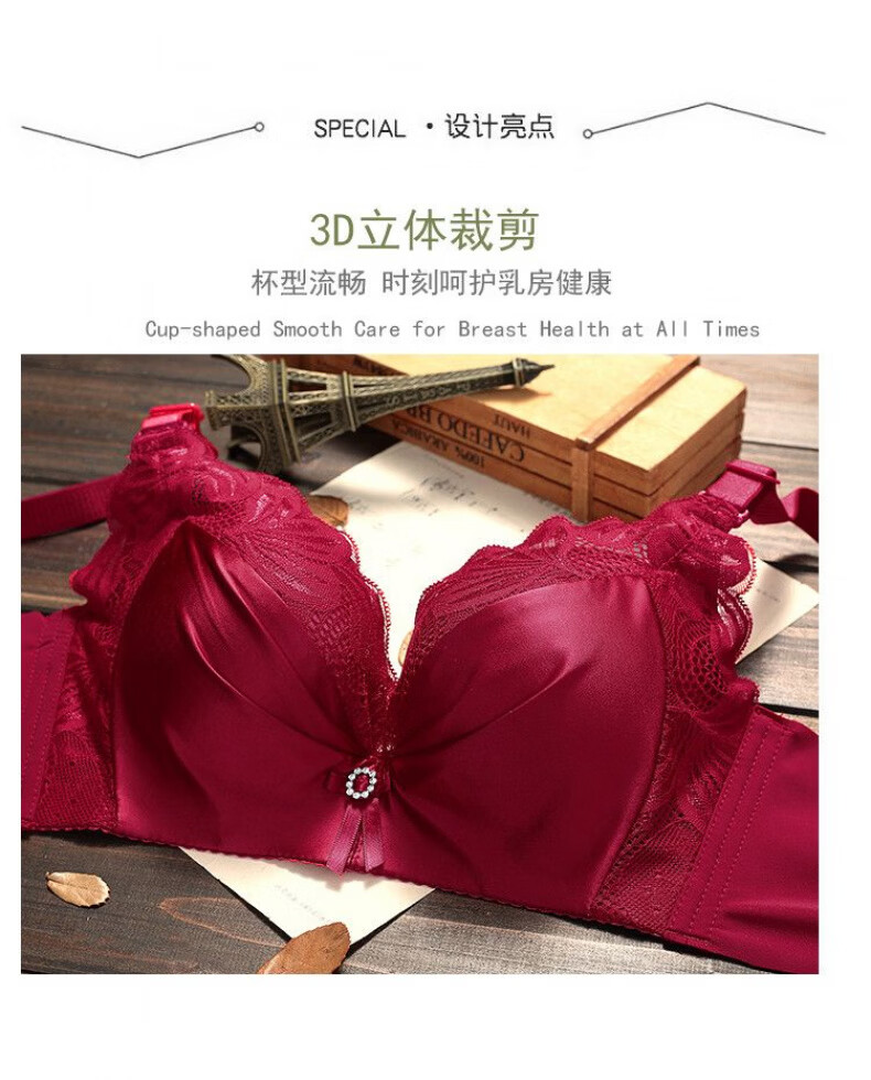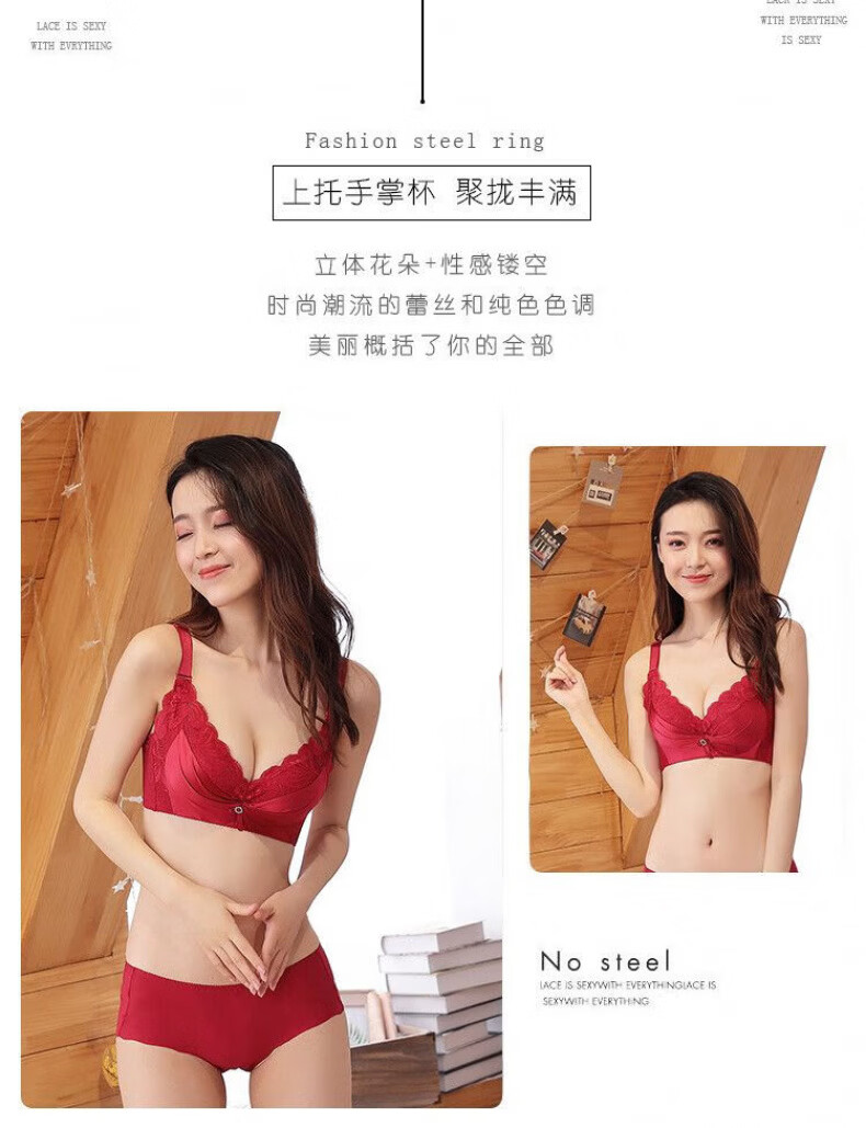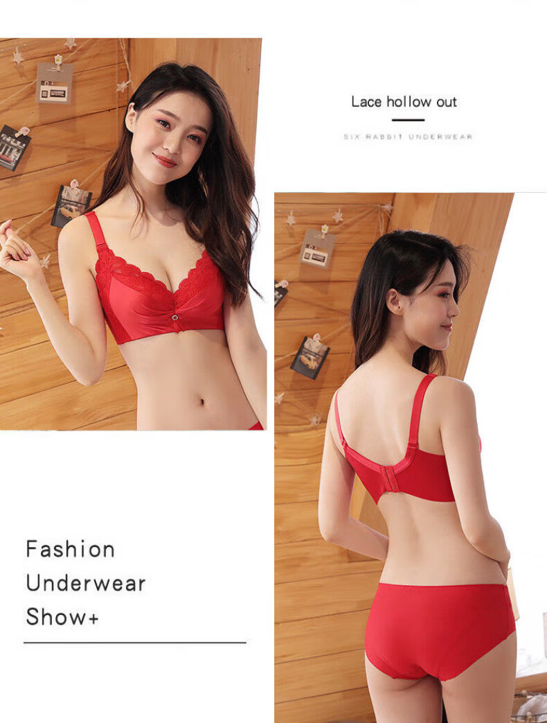 Modal Big Red Underwear Women's Zodiac Year of the Horse Small Breasts Gathered and Thickened to Show Big Upper Support Side Tie Wedding Bra Set Burgundy Set 75B 34/75BC Medium Thin Style
