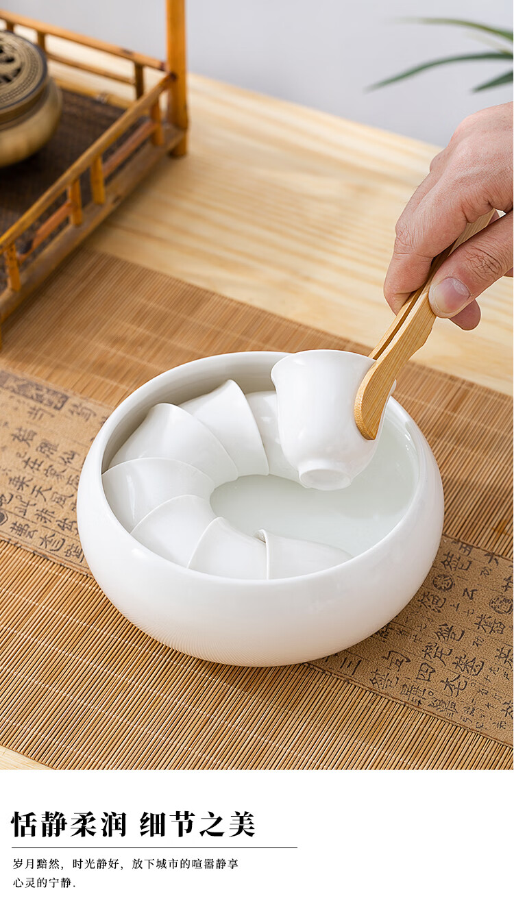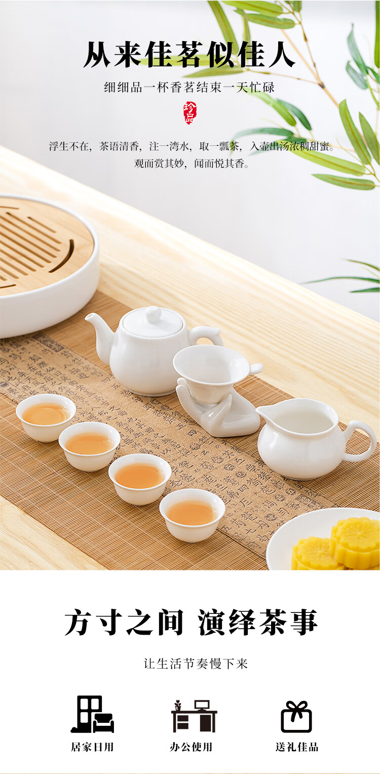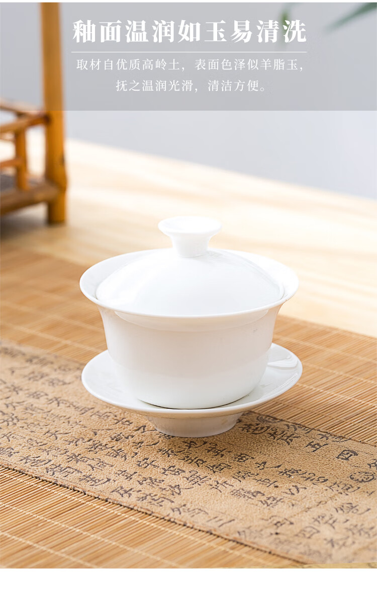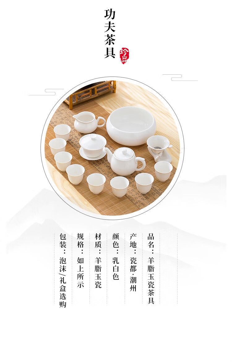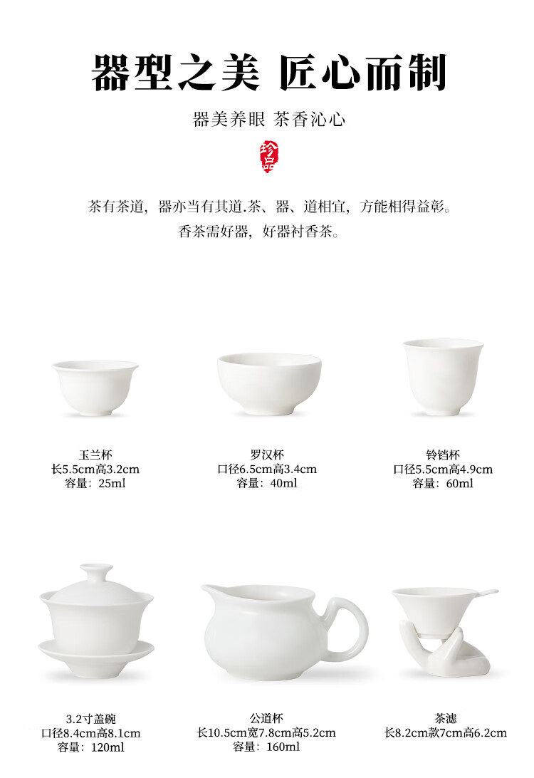 PGY mutton fat jade porcelain Kung Fu tea set complete set Chaoshan Kung Fu tea set simple household tea ceremony tea cup covered bowl teapot Magnolia cup * 6 (thin embryo small cup capacity 25ml)
