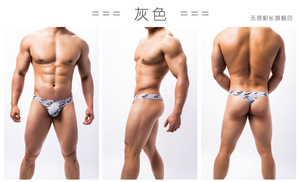 Fearless Captain (BRAVEPERSON) Trendy Men's Low Waist Sexy Stretch Tight Thin T Underwear Sports Youth Large Size U Protruding Bag Thong Gray M