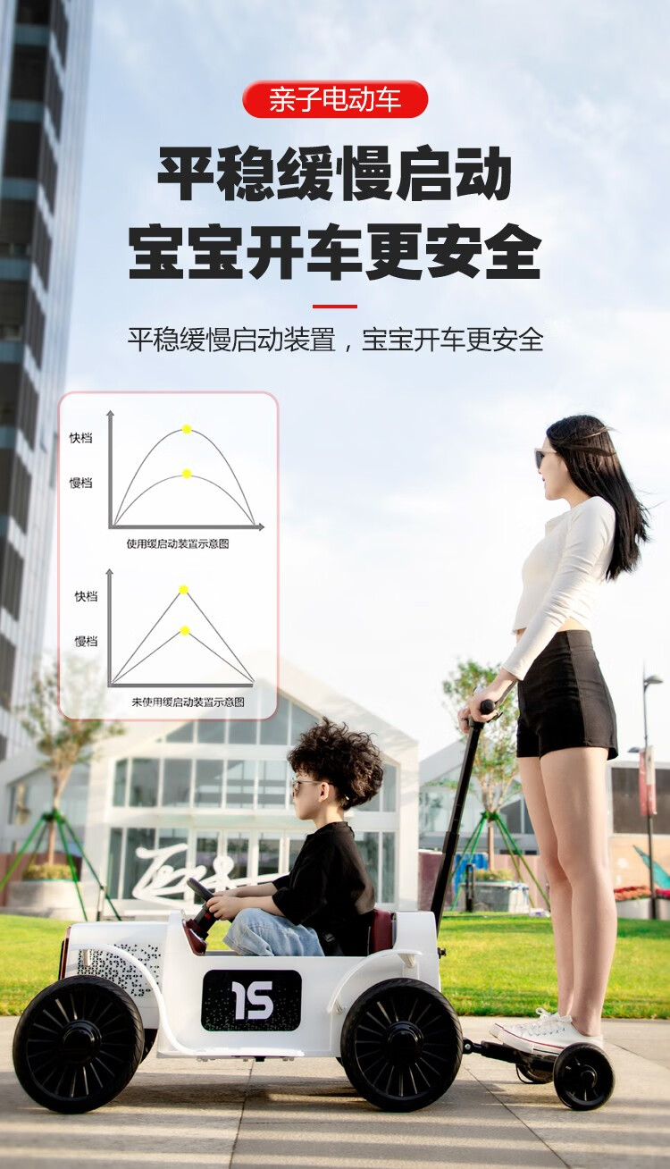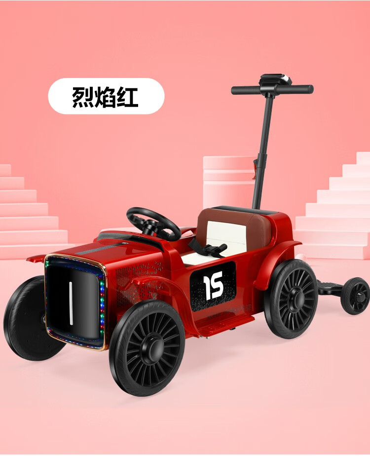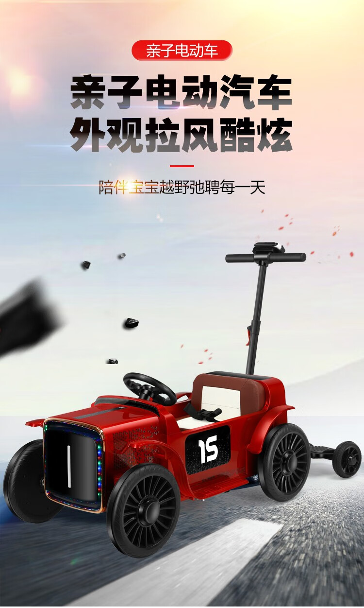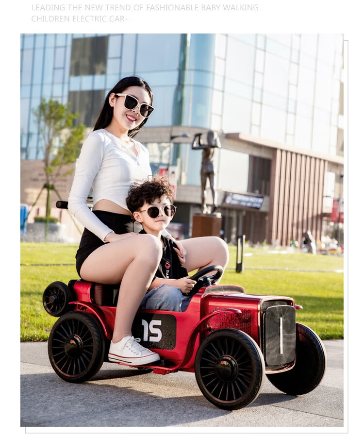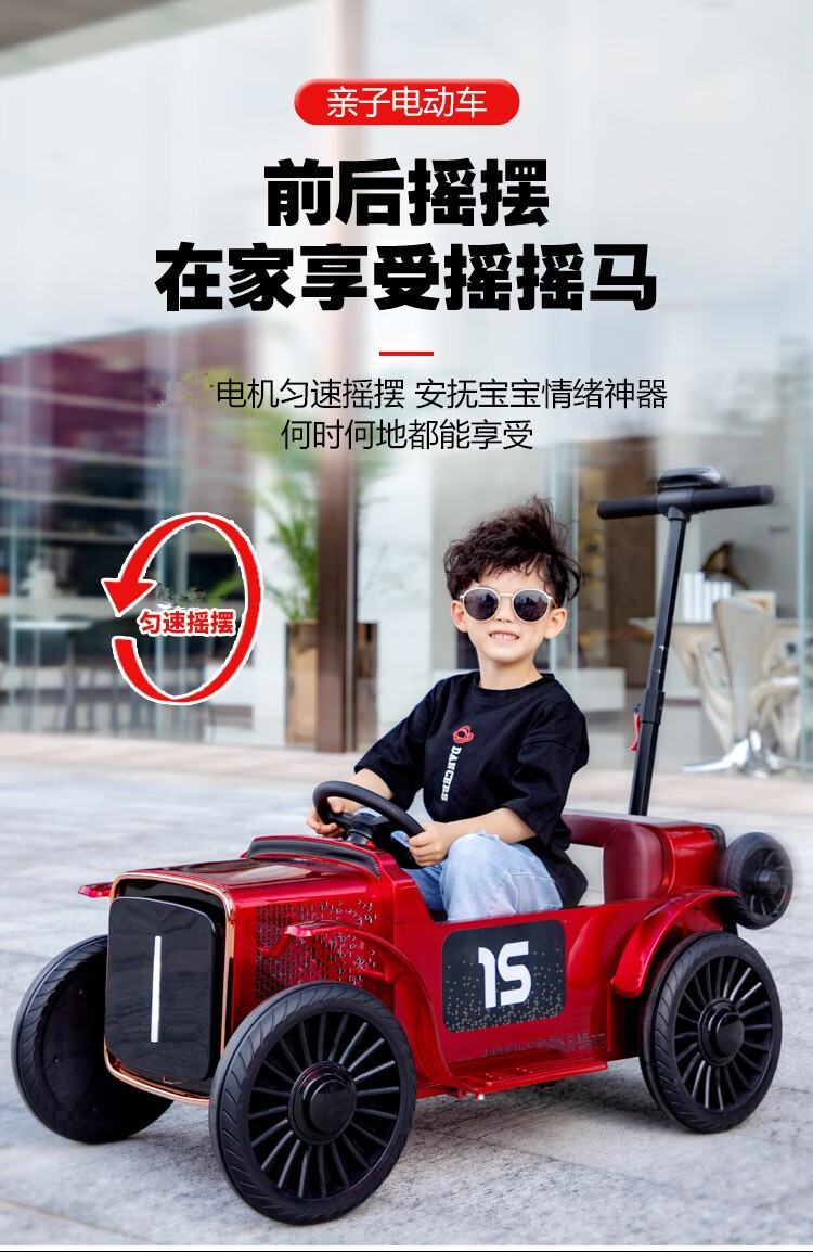 Bei Duoqi parent-child car children's electric car four-wheel car can sit in adults' remote control swing male and female children's baby toy stroller flagship red + large battery + remote control leather seat