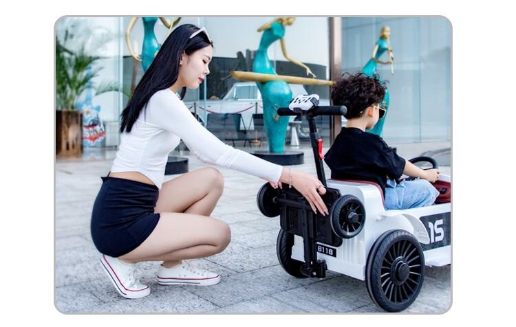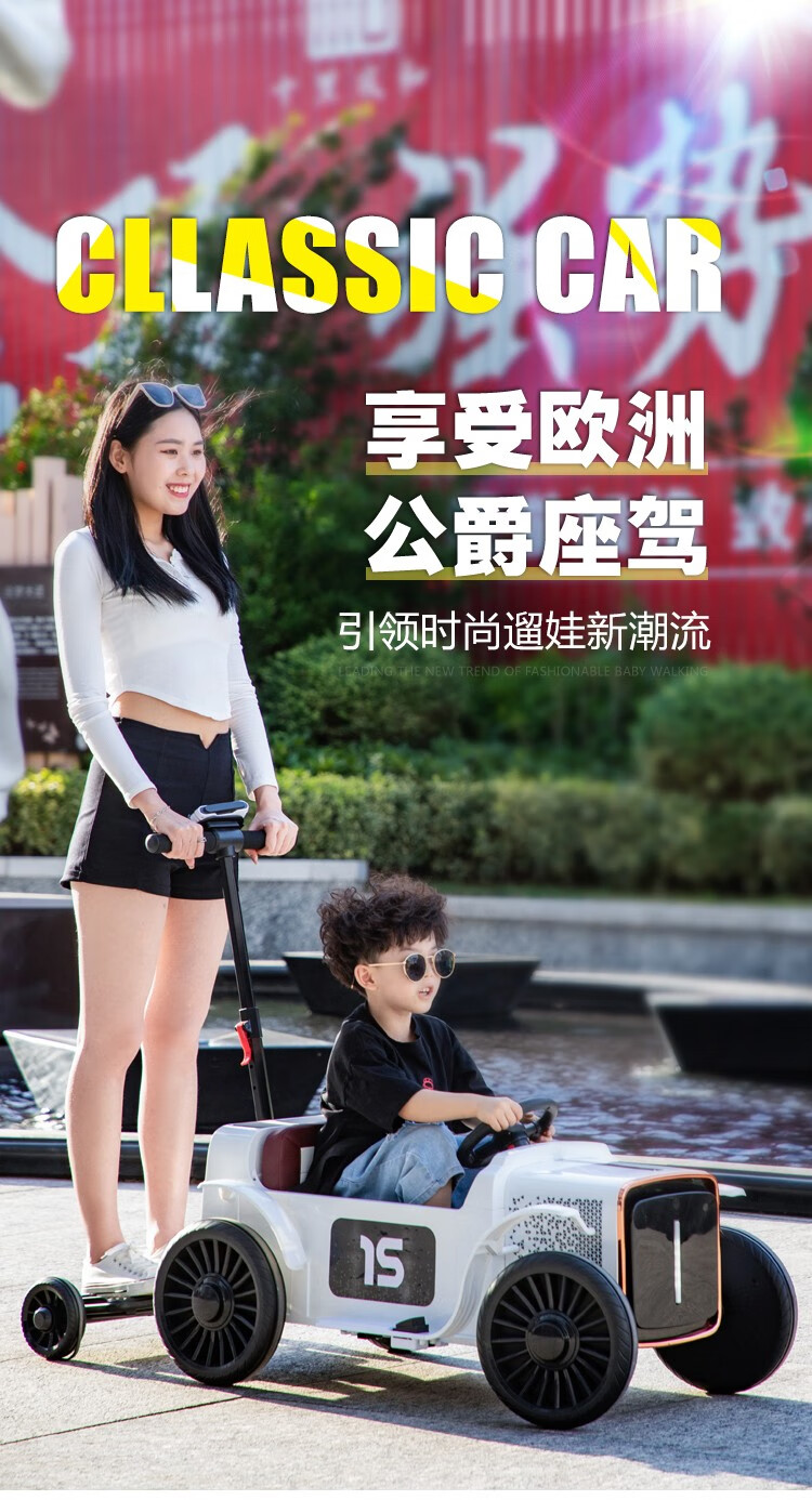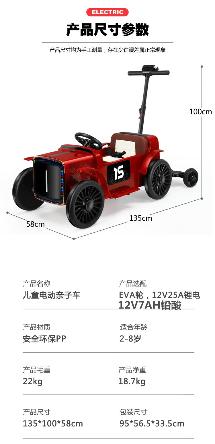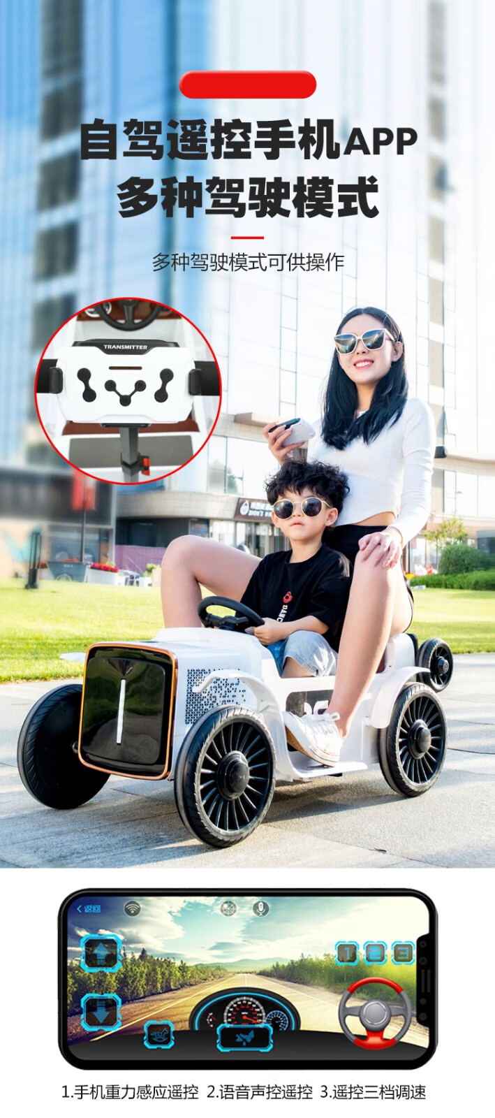 Bei Duoqi parent-child car children's electric car four-wheel car can sit in adults' remote control swing male and female children's baby toy stroller flagship red + large battery + remote control leather seat