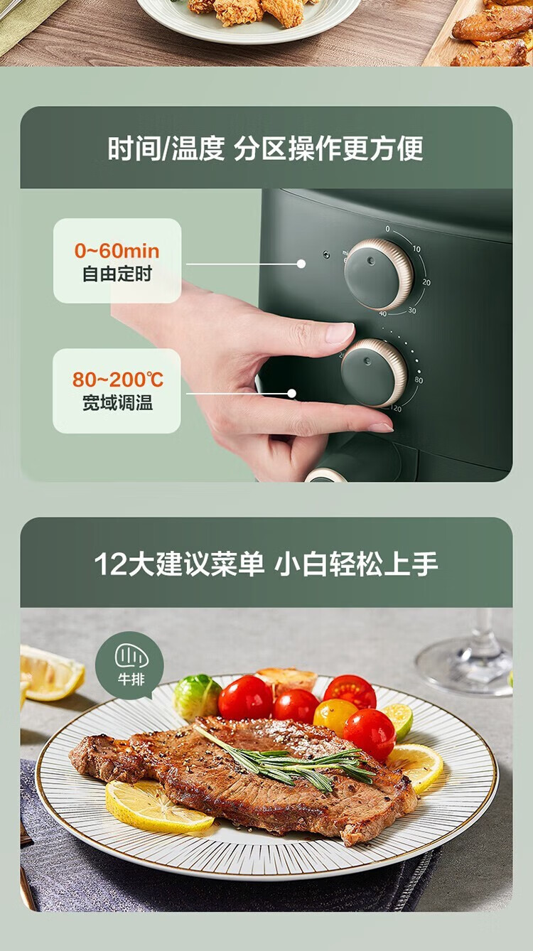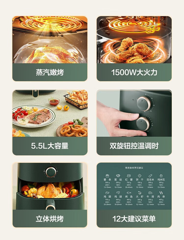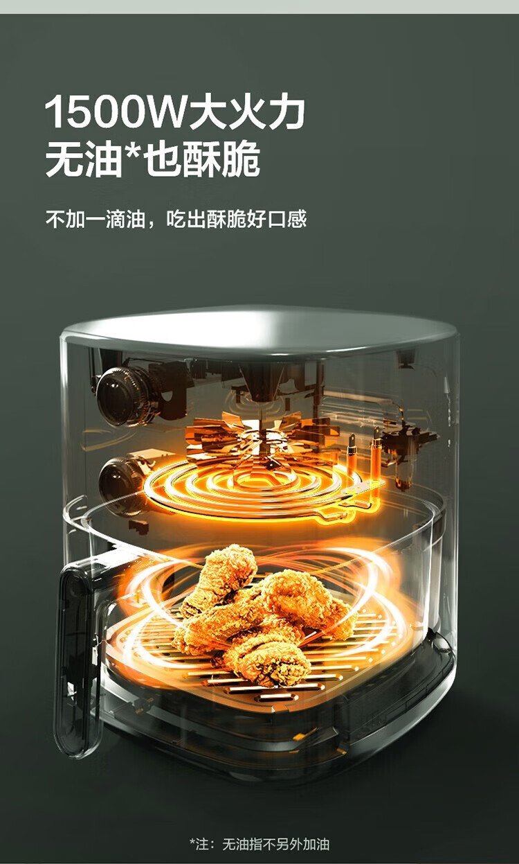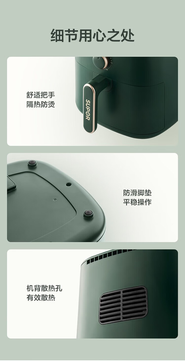 SUPOR household air fryer 5.5L large capacity multi-functional low-fat electric fryer non-stick high-power French fries machine KJ55D122 5.5L