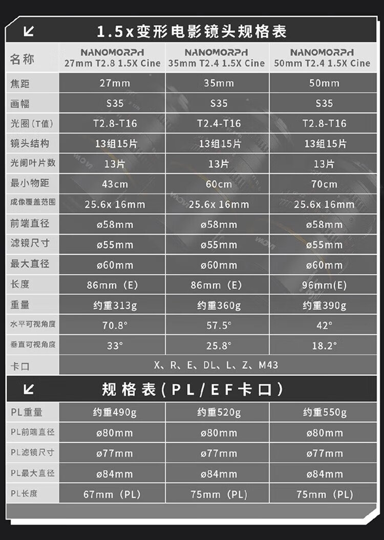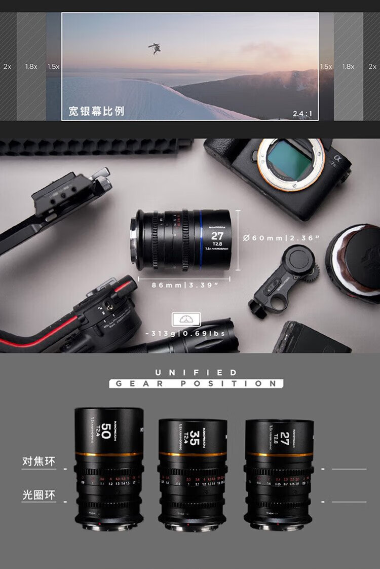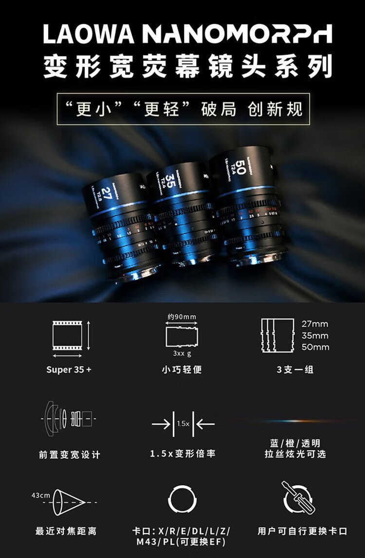 Laowa 1.5X anamorphic wide screen lens 27/35/50mm wide screen suitable for S35 format SLR mirrorless anamorphic lens independent mount accessories L mount mirrorless anamorphic lens independent mount Contact customer service to note the model