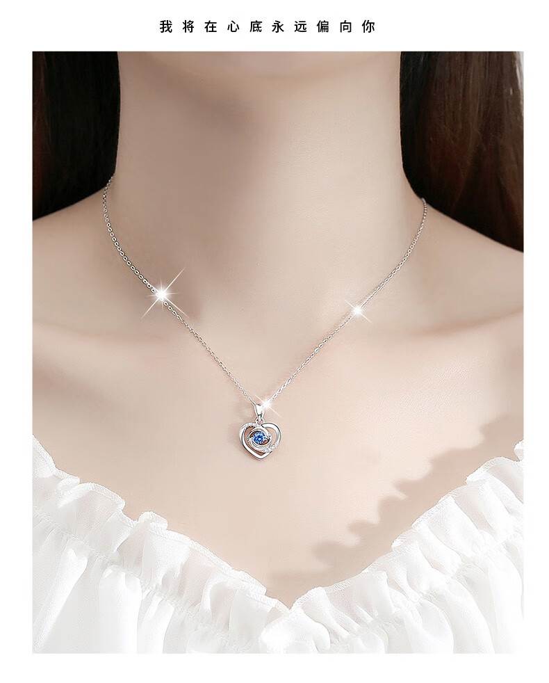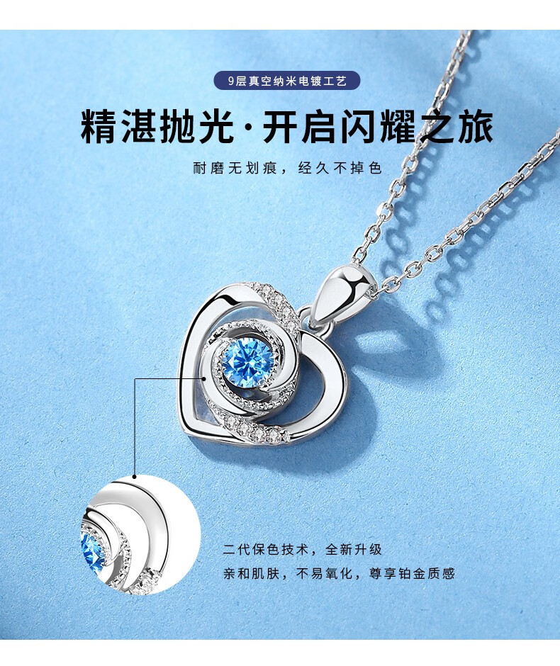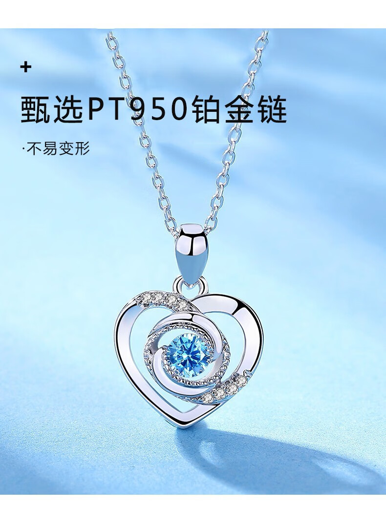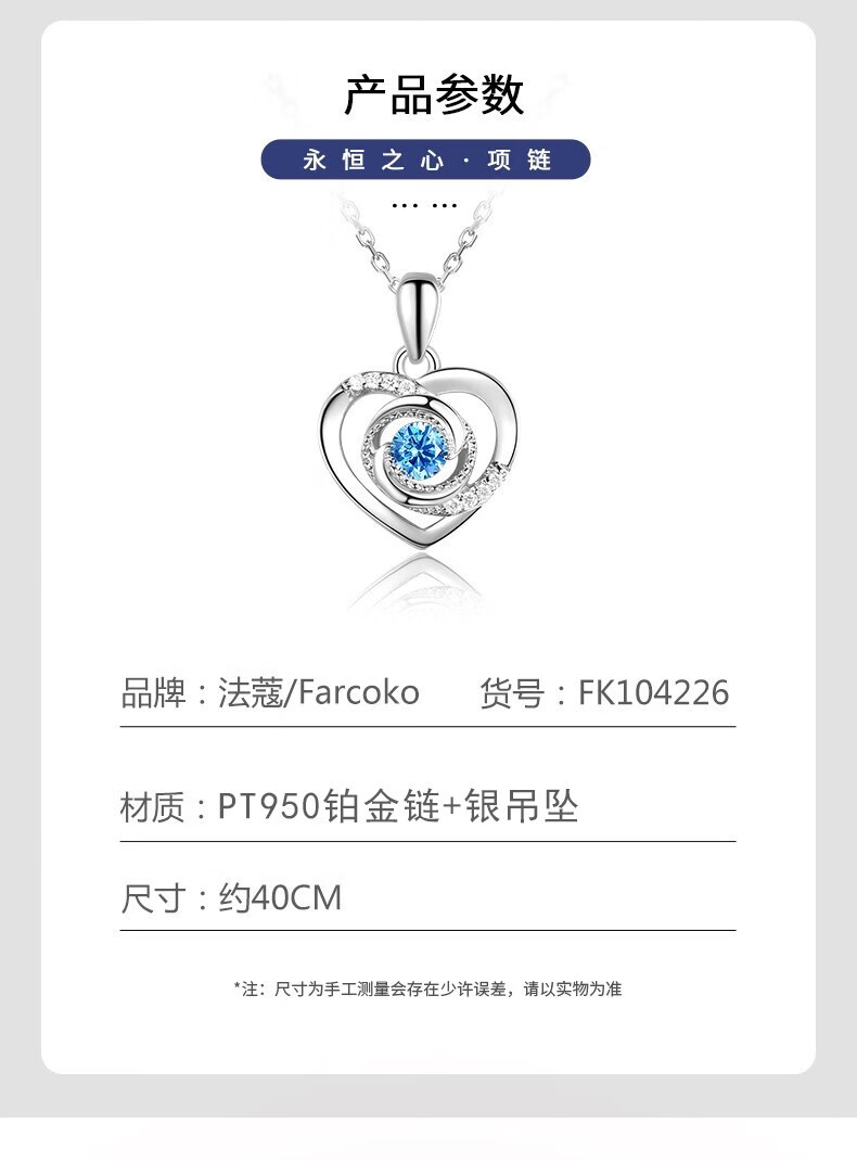 Farcoko brand pt950 platinum necklace women's platinum clavicle chain jewelry fashion accessories birthday gift women's confession gift platinum chain + eternal heart pendant (blue zirconium) - brand gift box