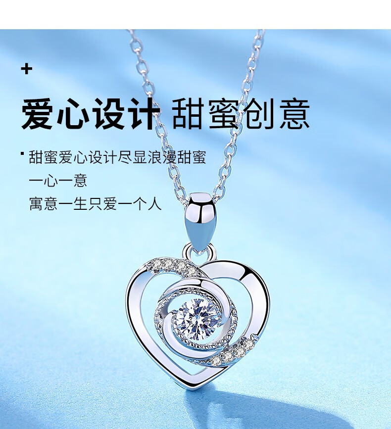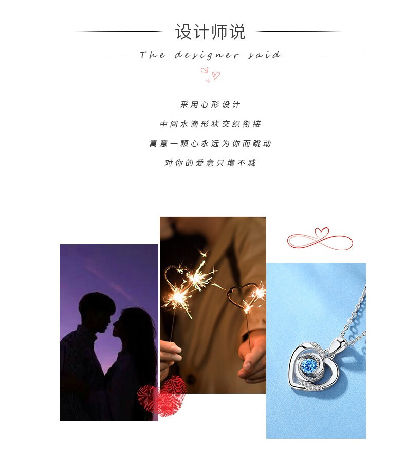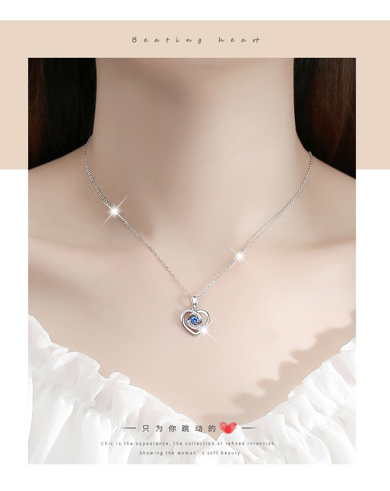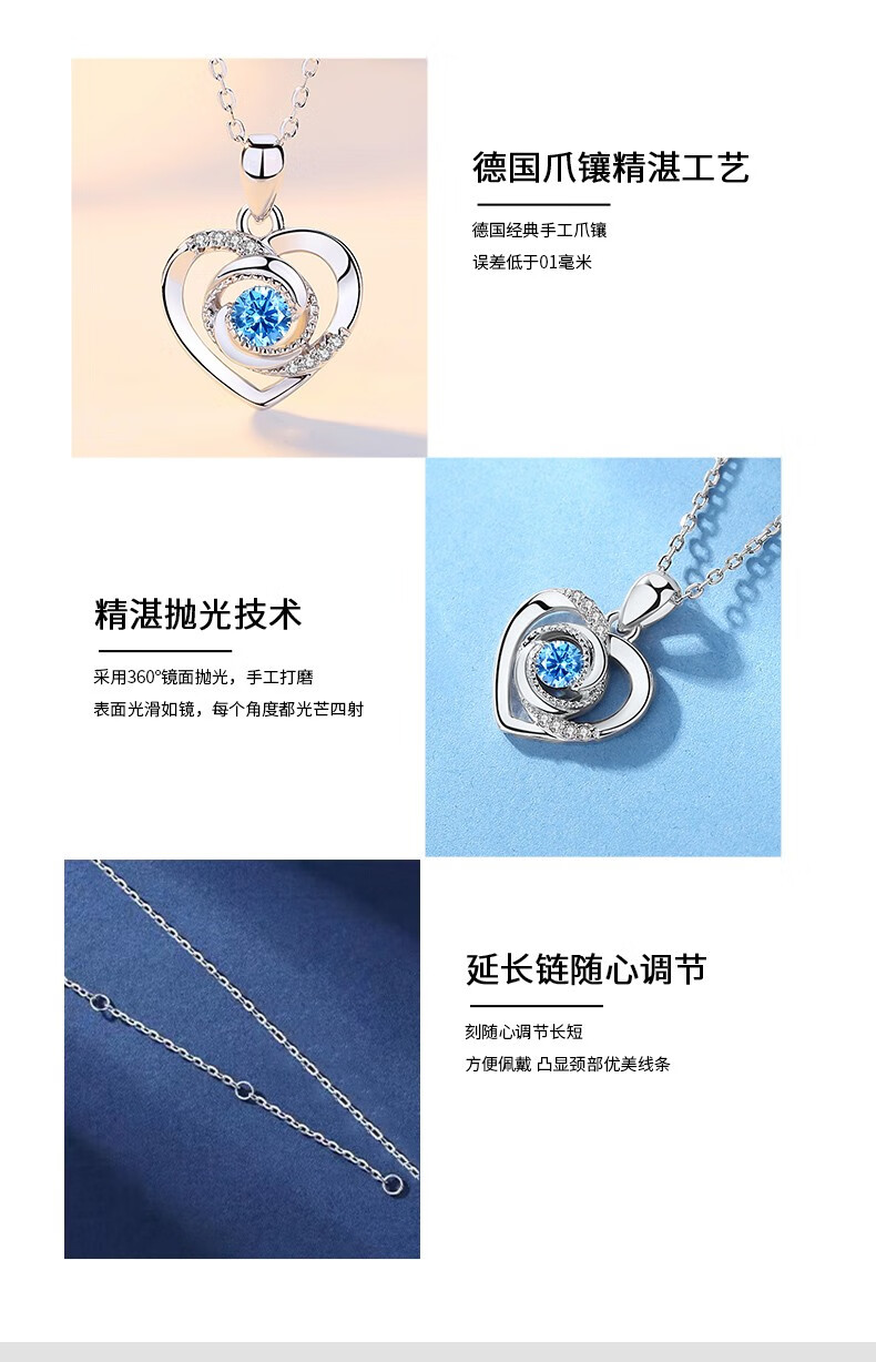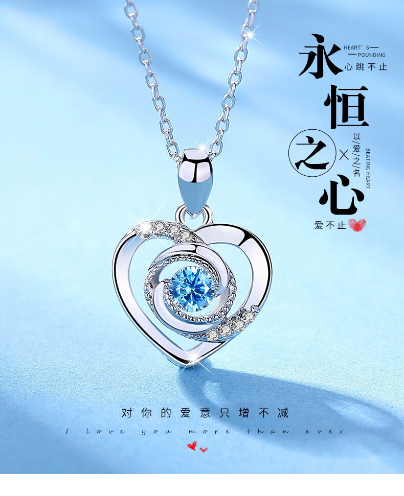 Farcoko brand pt950 platinum necklace women's platinum clavicle chain jewelry fashion accessories birthday gift women's confession gift platinum chain + eternal heart pendant (blue zirconium) - brand gift box
