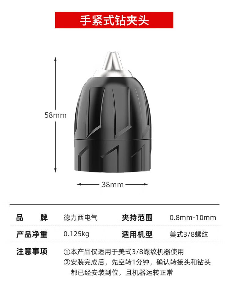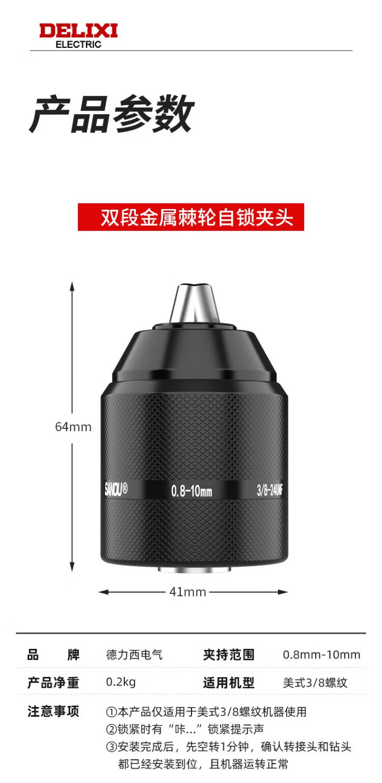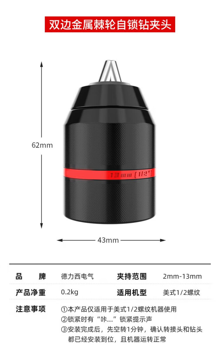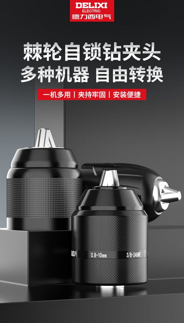 Delixi Electric metal ratchet self-locking drill chuck 10/13mm hand electric drill universal high-precision lithium electric drill iron chuck conversion head 10mm bilateral metal ratchet self-locking drill chuck