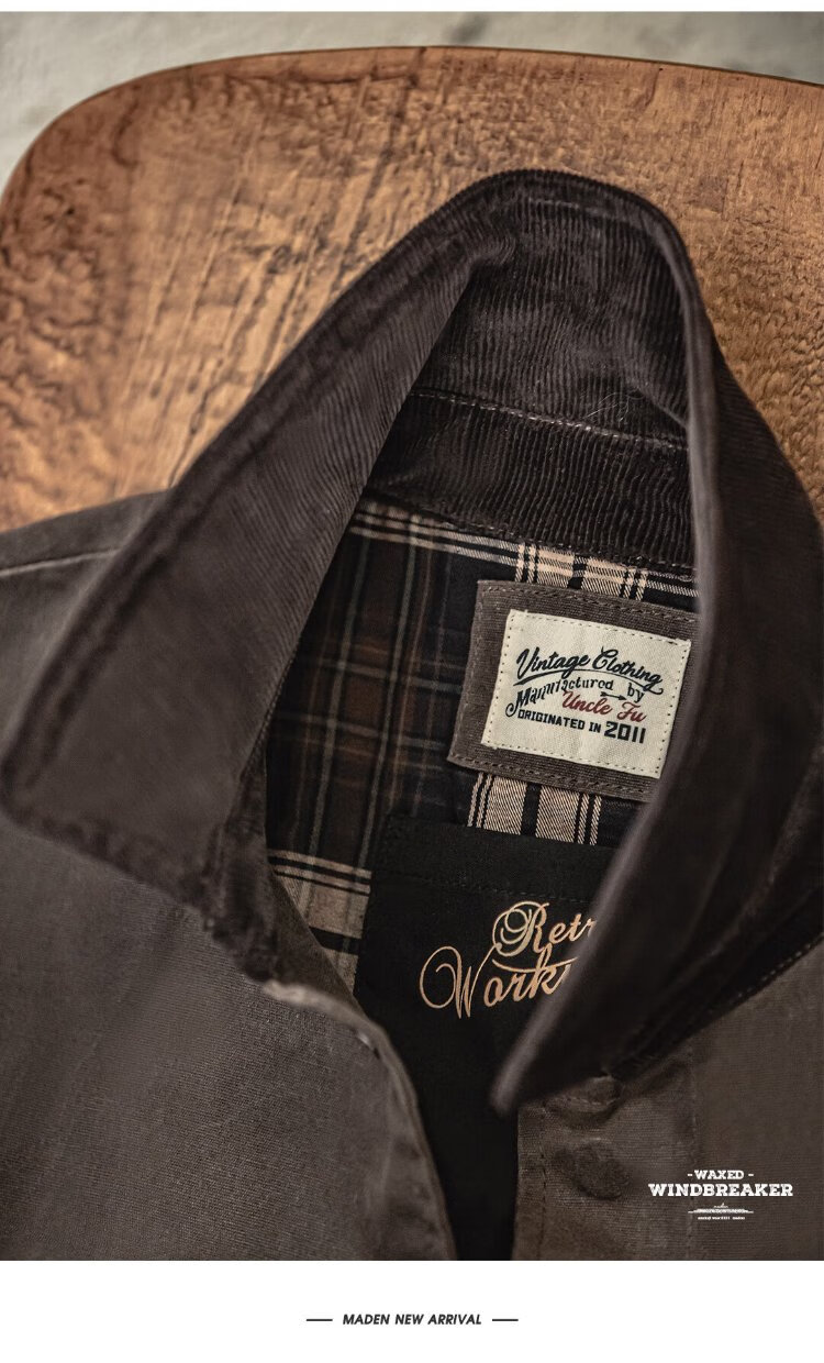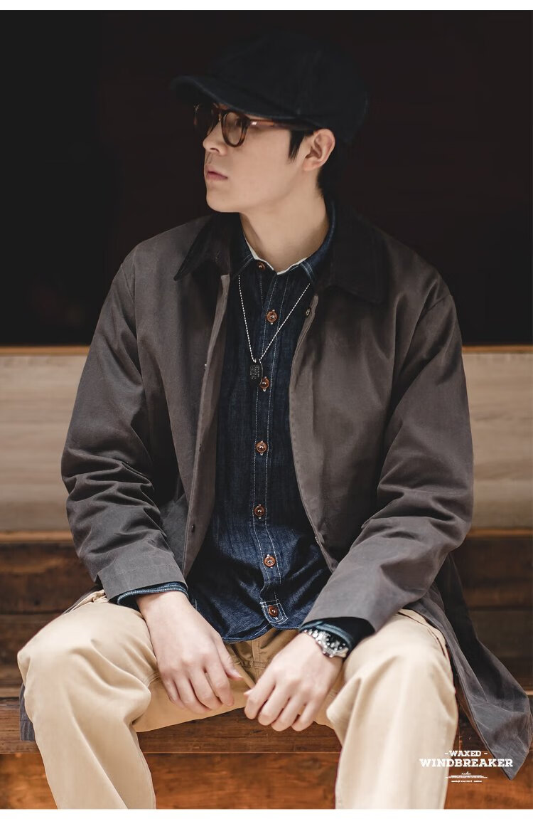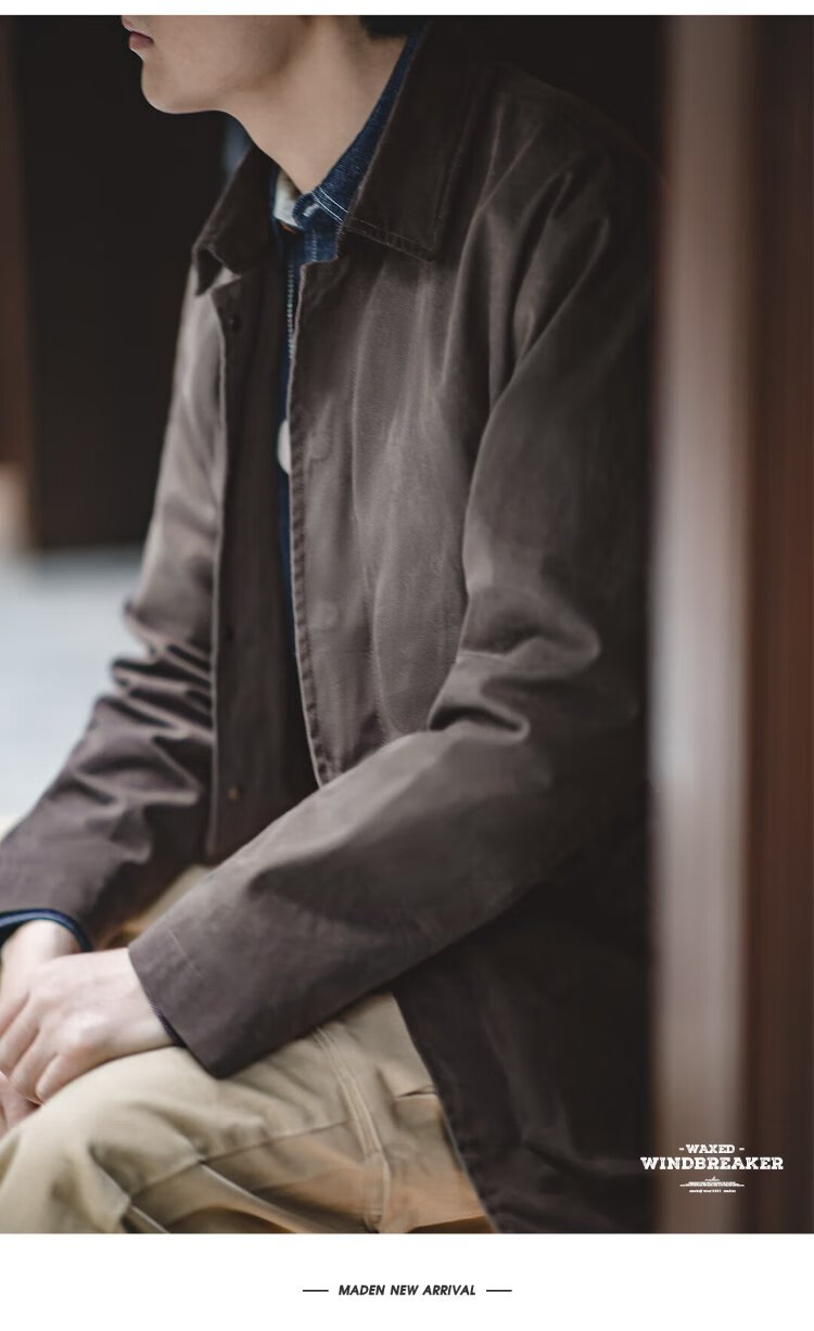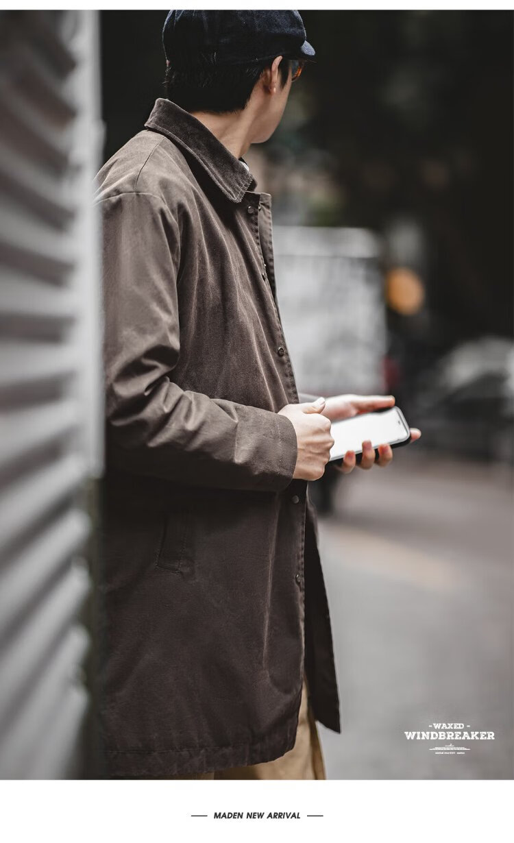 Madden Workwear British Style Oil Wax Windbreaker Jacket Men's Autumn and Winter Gentleman's Feel Mid-Length Retro Coat Waterproof Outer Dark Brown M
