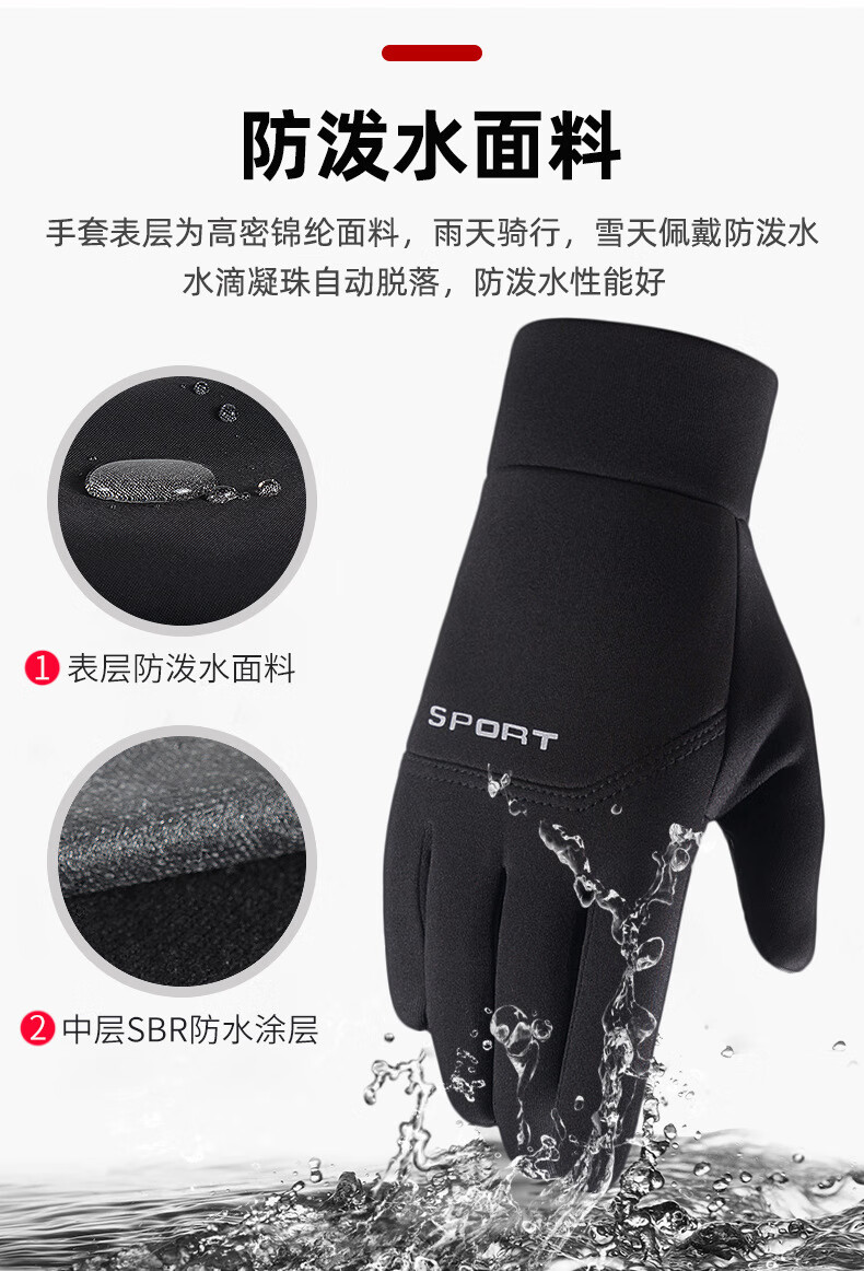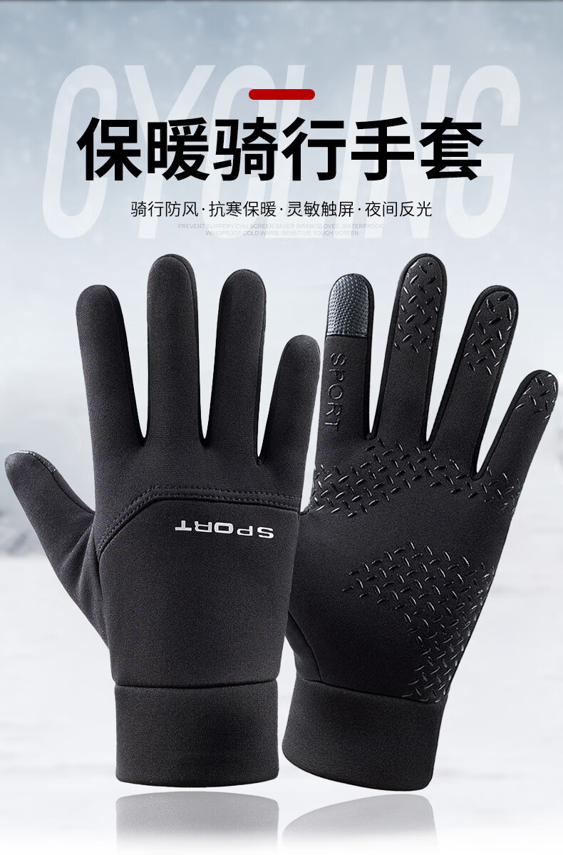 MANQIMEIYA gloves men's winter warm touch screen driving, cycling, motorcycle riding, windproof winter skiing cotton gloves for men and women, black, one size fits all